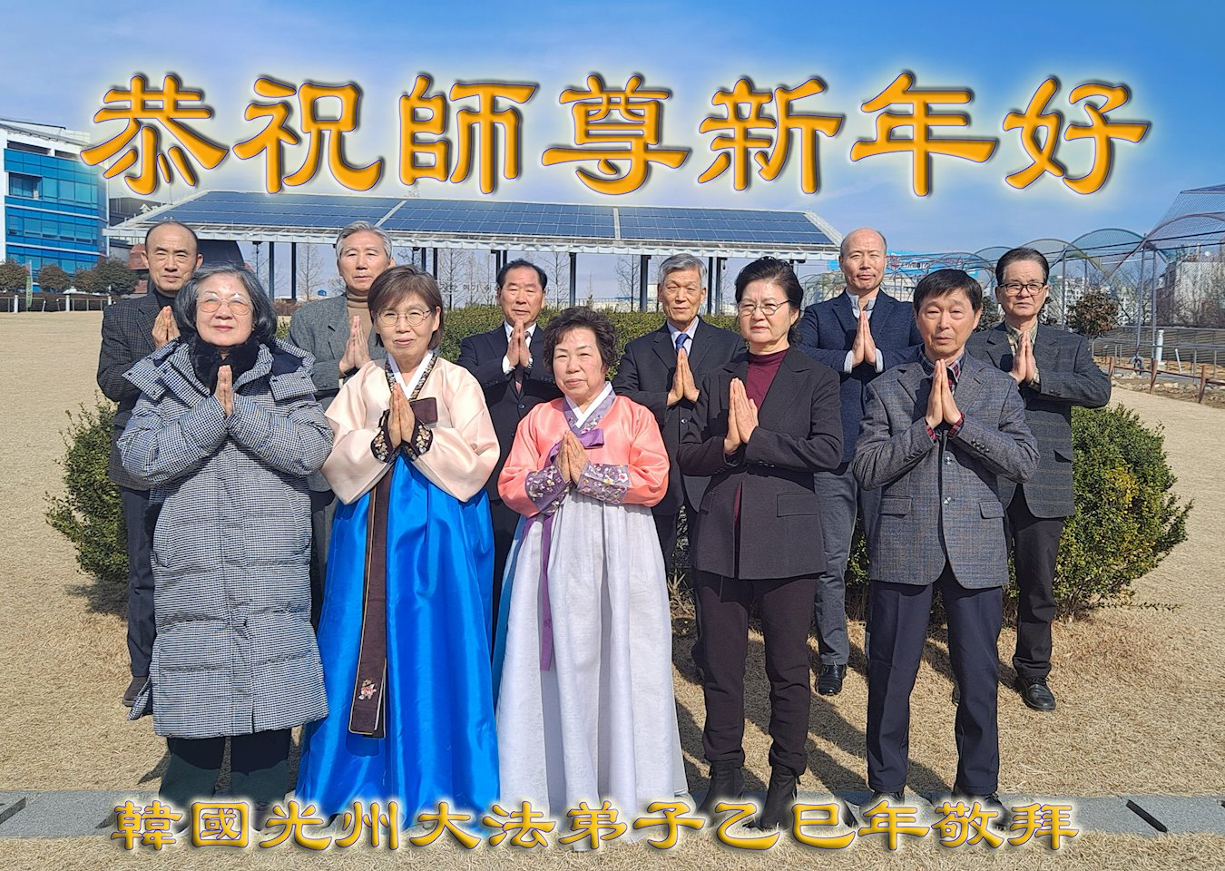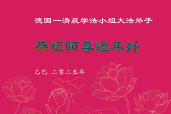尊敬的师父您好!在师尊救度苍宇、法正洪穹的伟大正法中,乙巳年到来了。值此天地归正,辞旧迎新之际,法国大法弟子在无限感恩中向慈悲伟大的师父拜年,恭祝师尊新年快乐!
