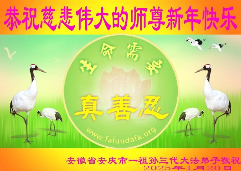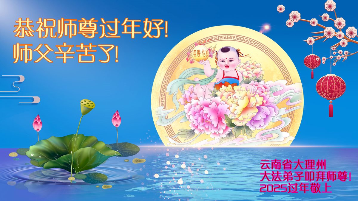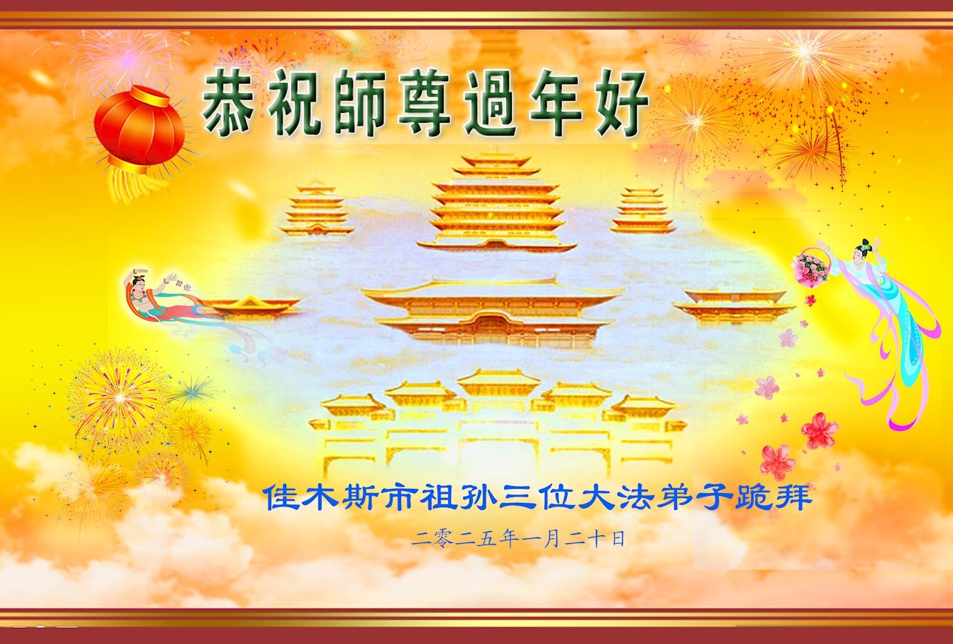 尊敬的师父好!师父辛苦了!恭祝师父二零二五年新年快乐!我是一老年大法弟子,感恩师尊传给我们这么好的宇宙大法,为救度我们您承受的太多太多,人间的语言有限,在新年到来之际,无法表达我们生命深处的感恩,饱含热泪跪拜师尊,遥祝师尊新年快乐!我们会履行好大法弟子的责任、兑现使命。牢记师尊教导多救人、快救人、做好三件事,跟师尊回家。