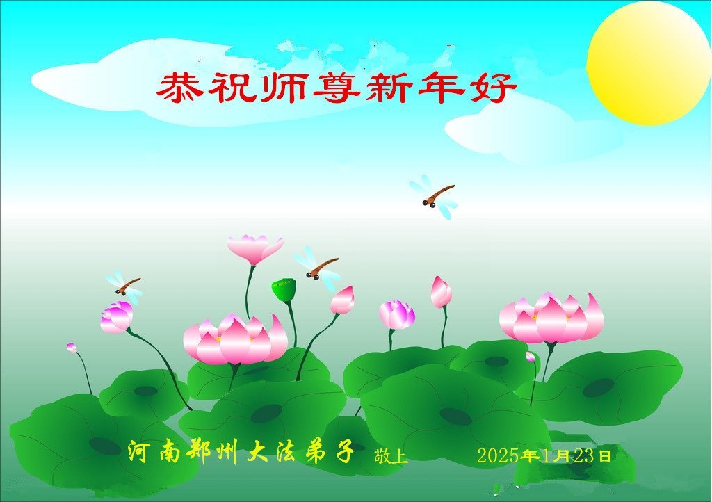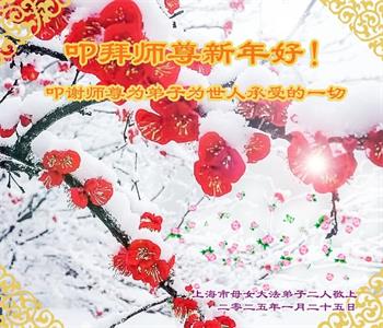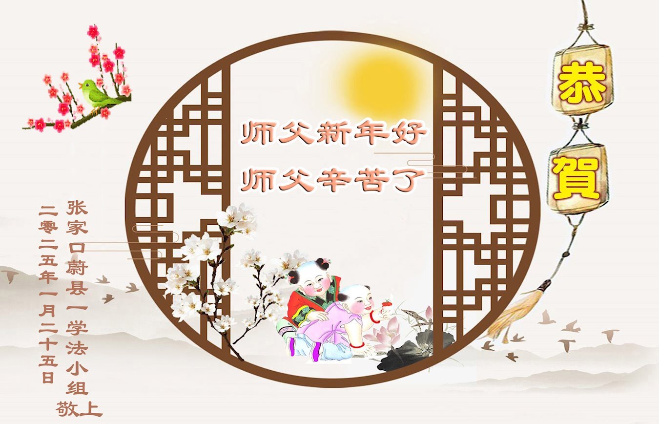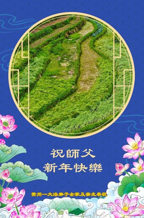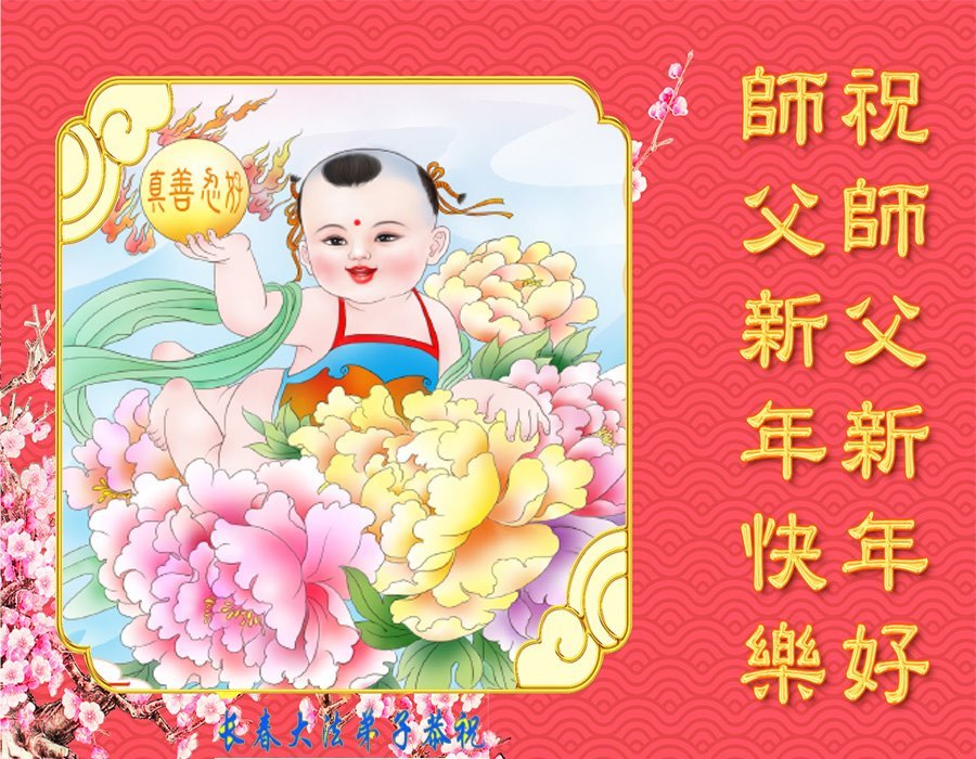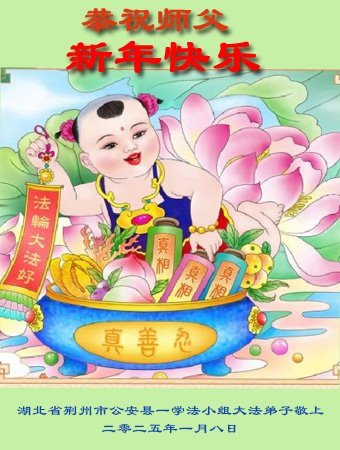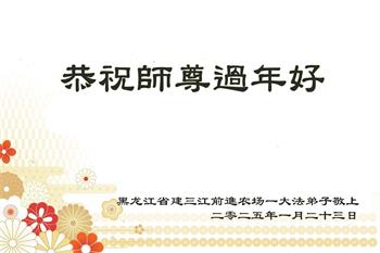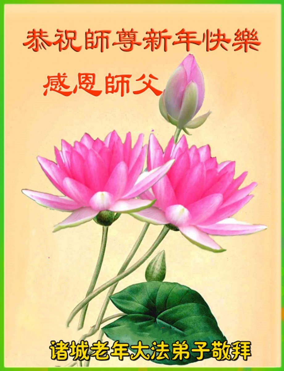 以下是部份中国老年大法弟子的贺词贺卡:恭祝慈悲伟大的师父新年好!