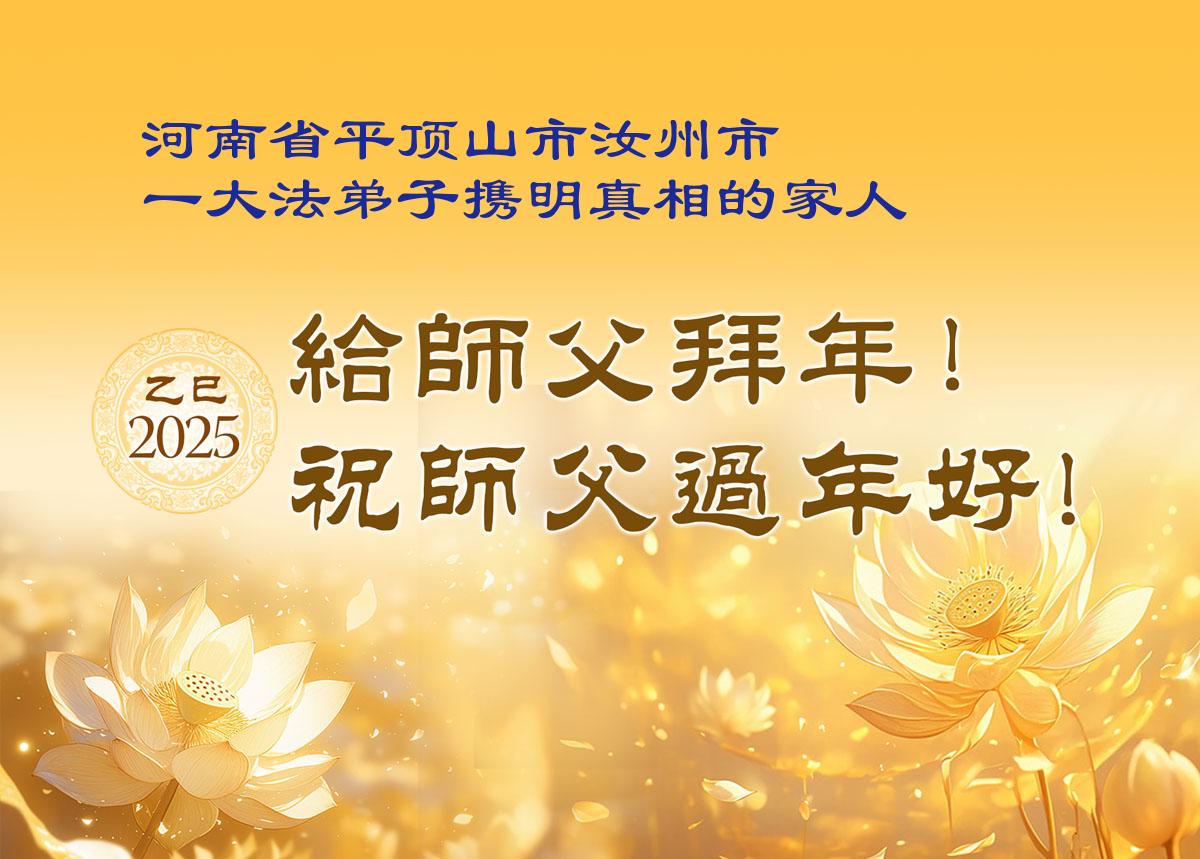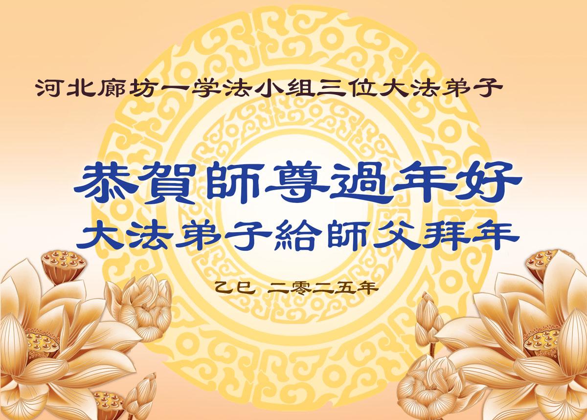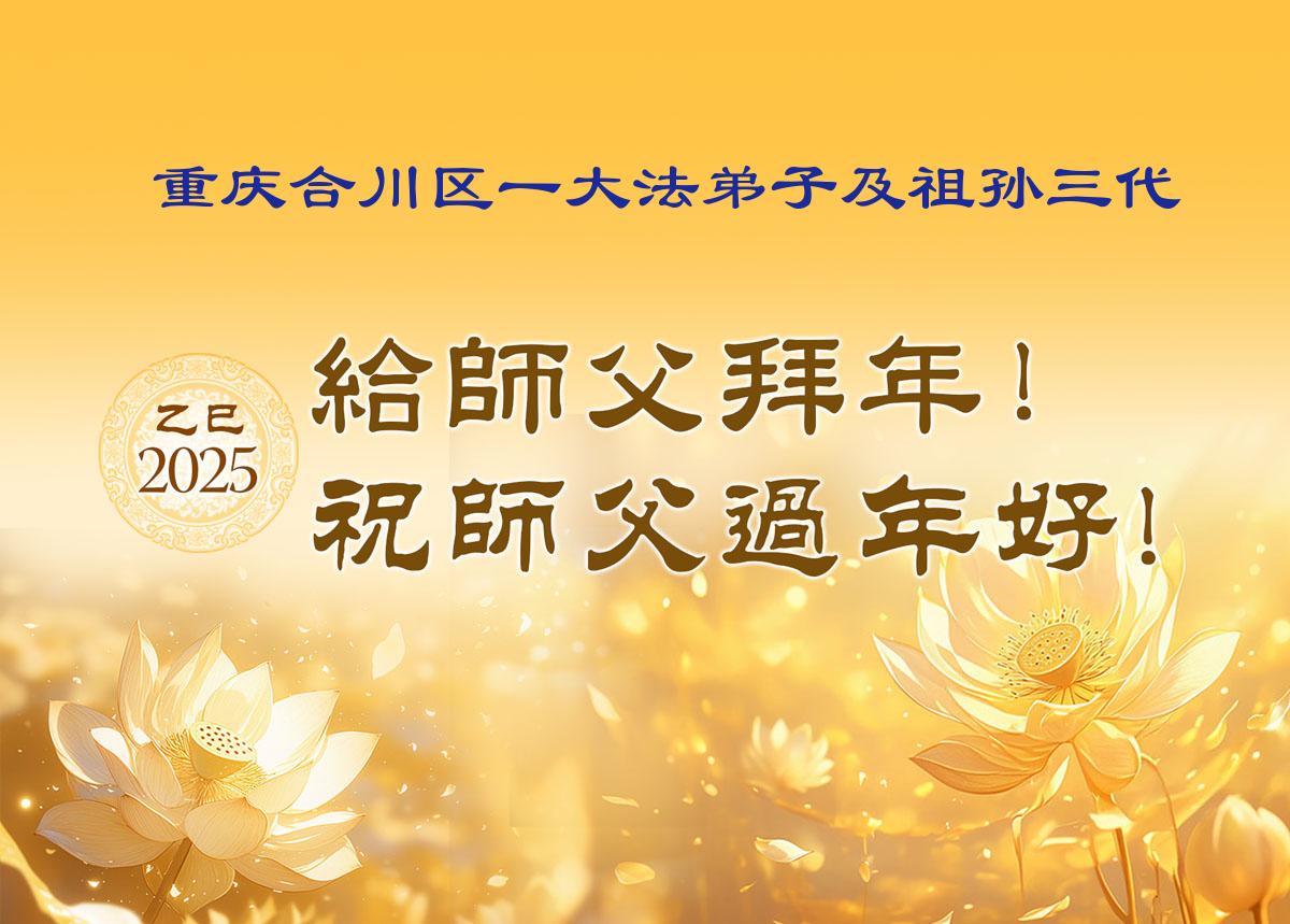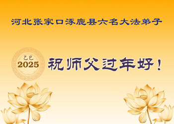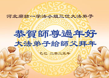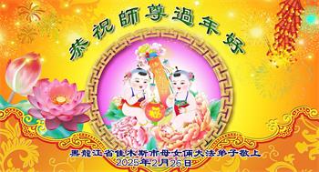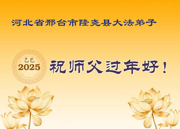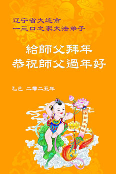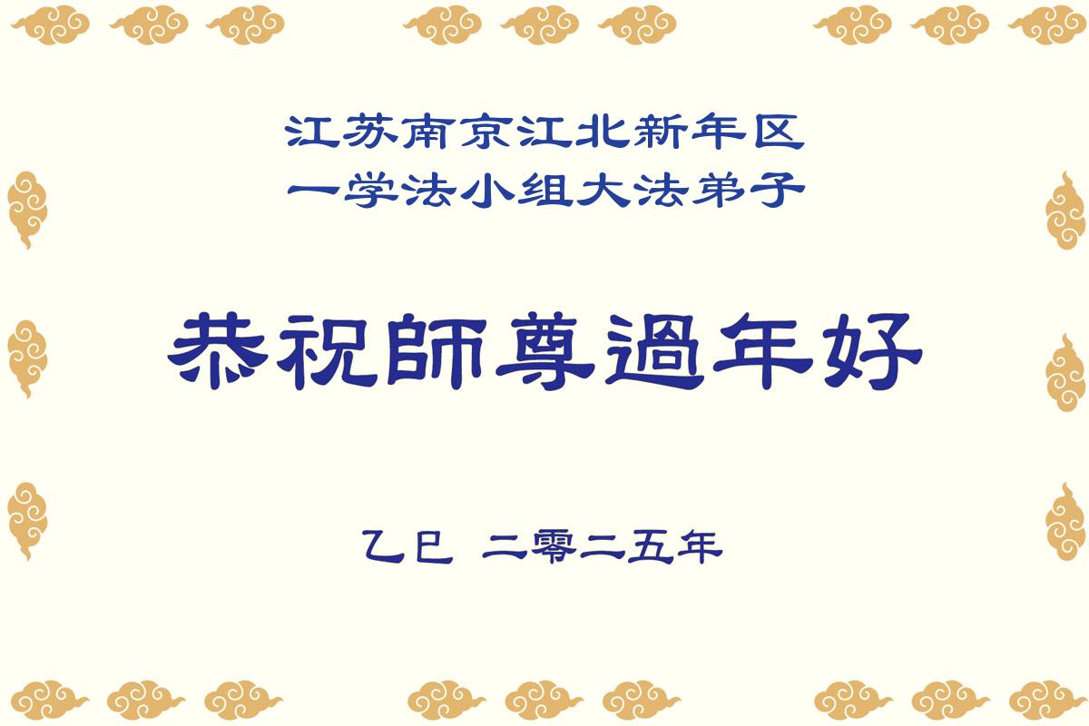 师父,我们是南通崇川一老年学法小组,在此叩首恭祝伟大的师父过年好!我们信师信法的心永远不会变,我们就是要护师护法,学好法,做好三件事,跟师父回真正的家。再次恭祝师父过年好!