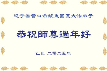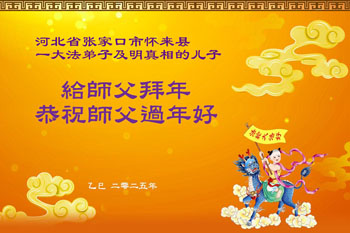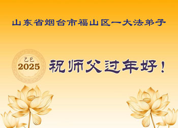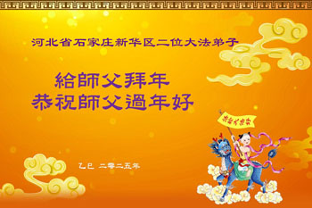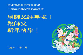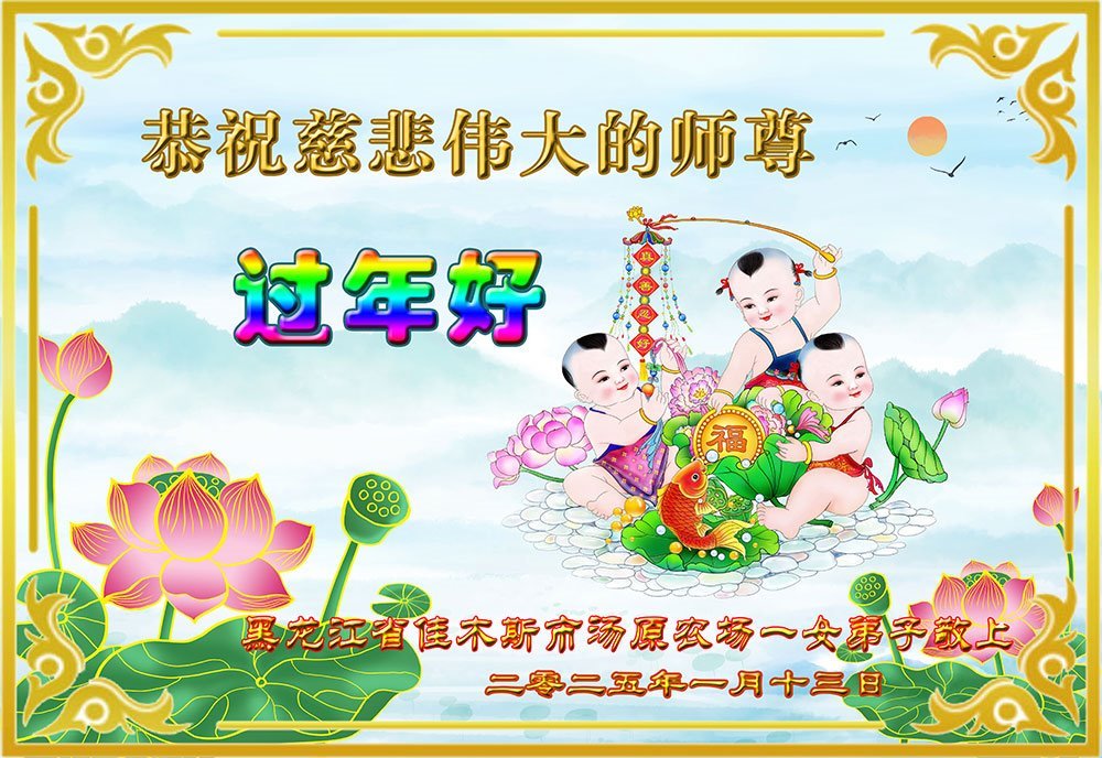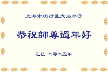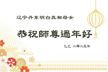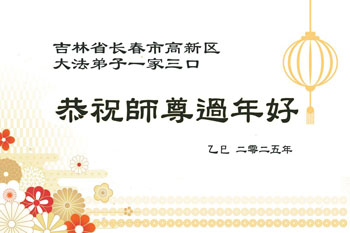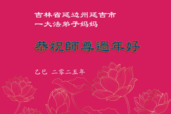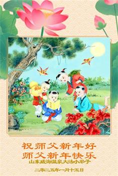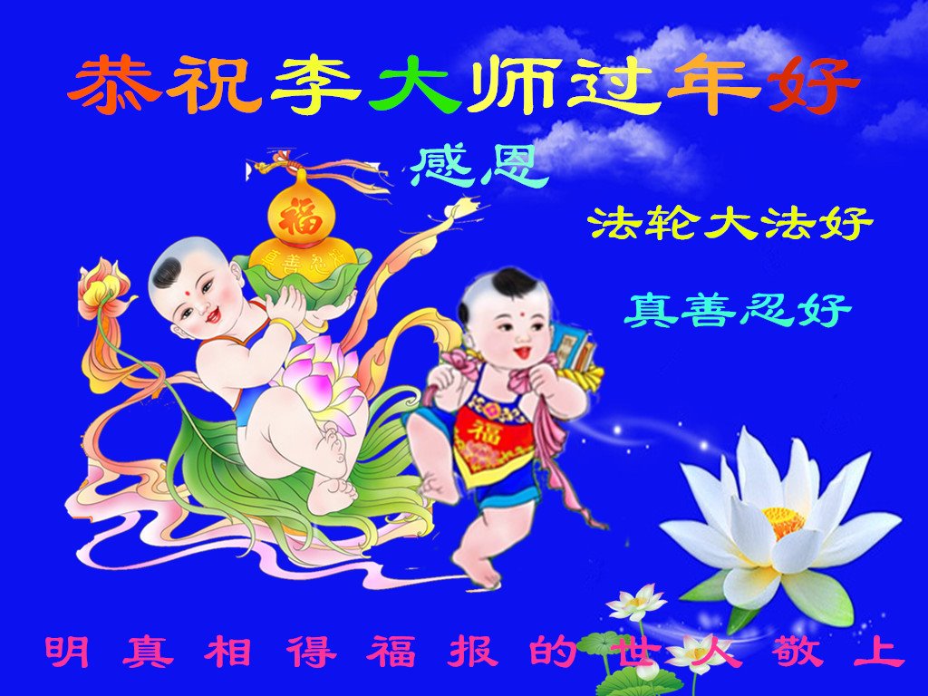 尊敬的师父您好!我是大法弟子的家属,很相信法轮大法好!真善忍好!过年了,我让姥姥帮我给师父发个贺卡。祝愿师父年年好!天天快乐!