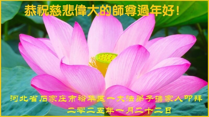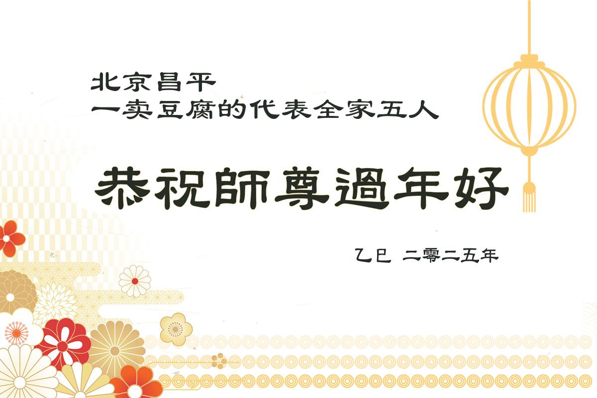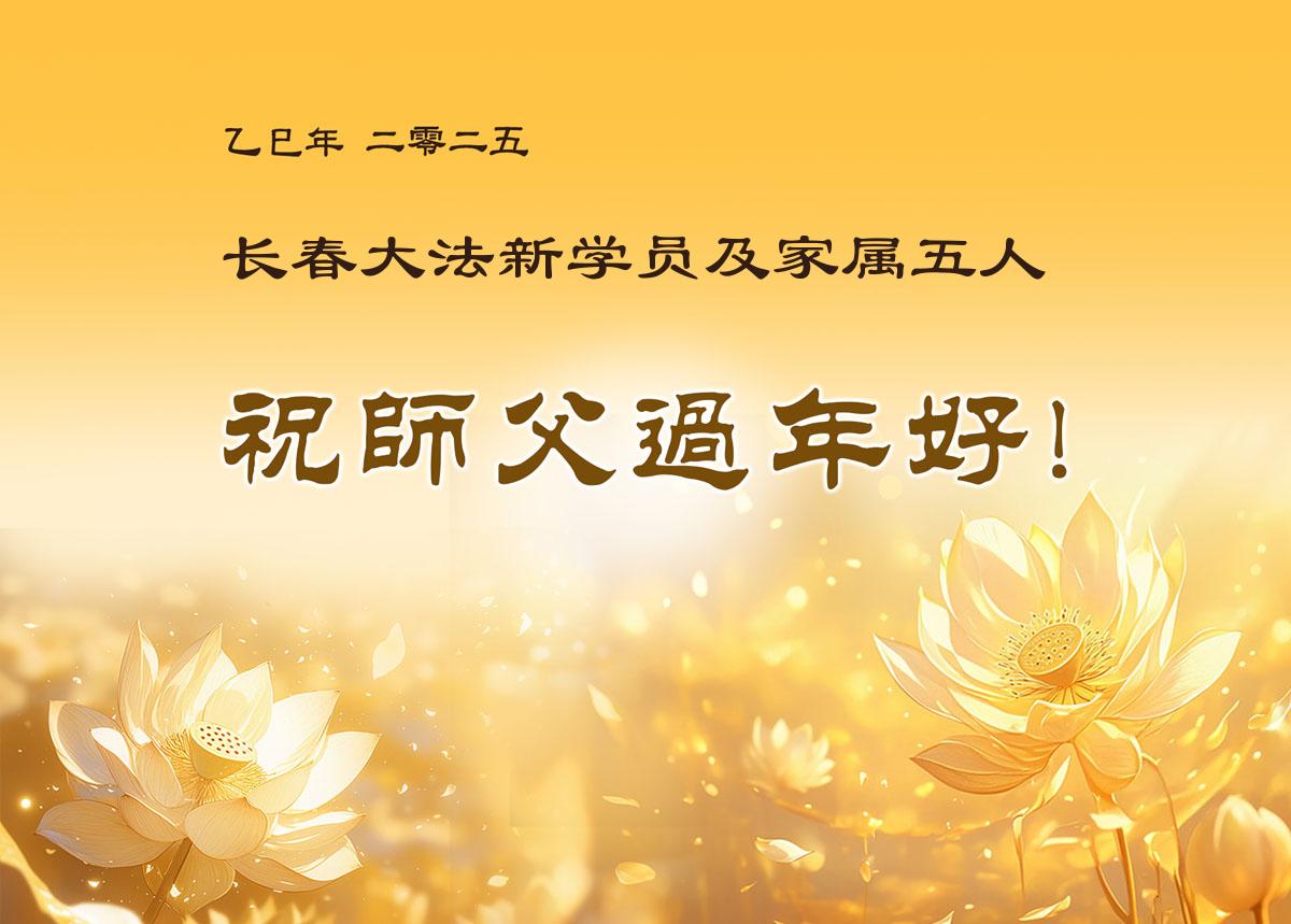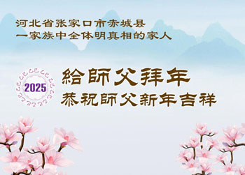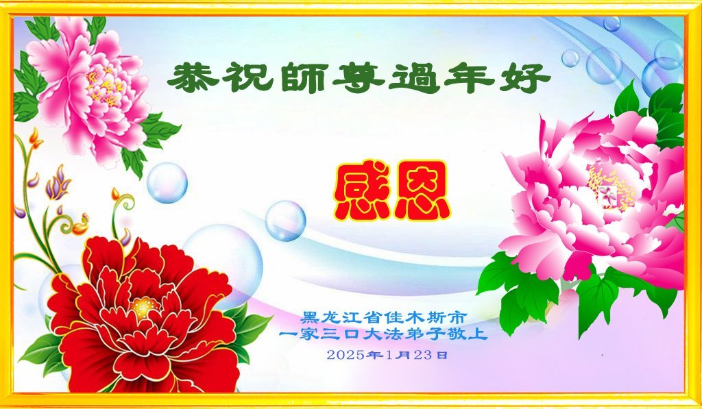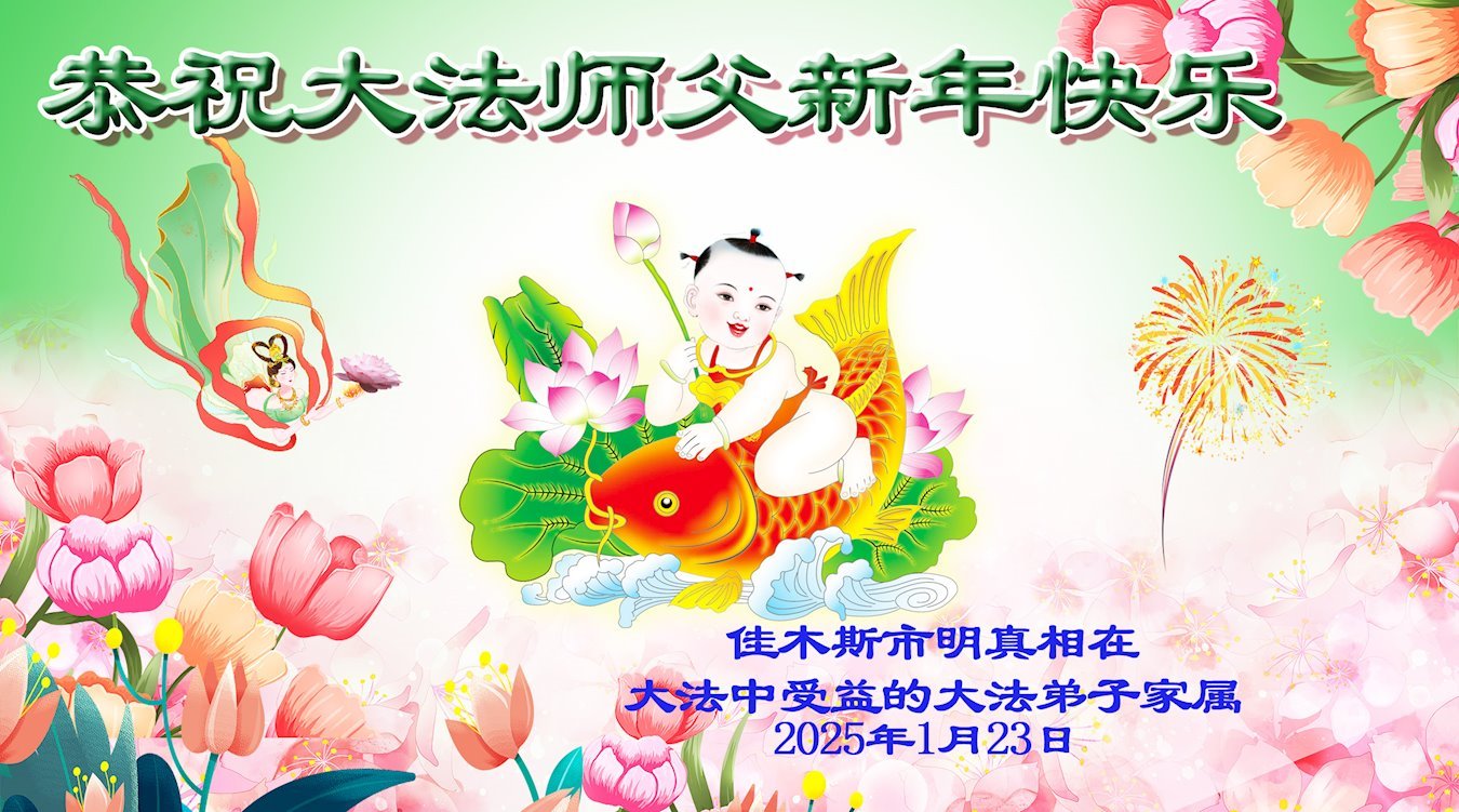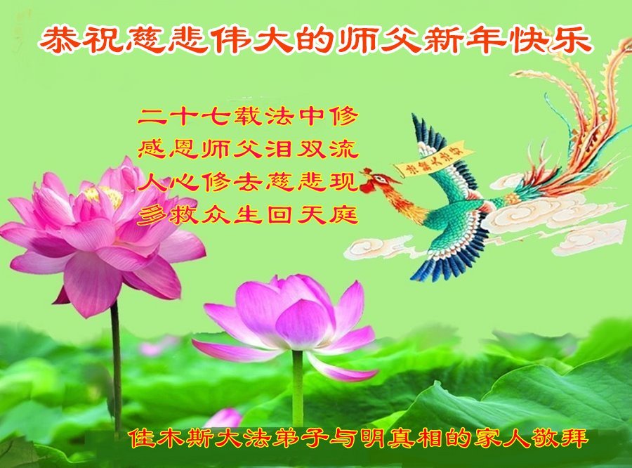 我们都是明白大法真相的大法弟子亲属,我们心里常念诵“法轮大法好!真善忍好!”我们都是亲身受益者。感恩法轮大法拯救全人类!我们抱着感恩的心给李洪志大师拜年!