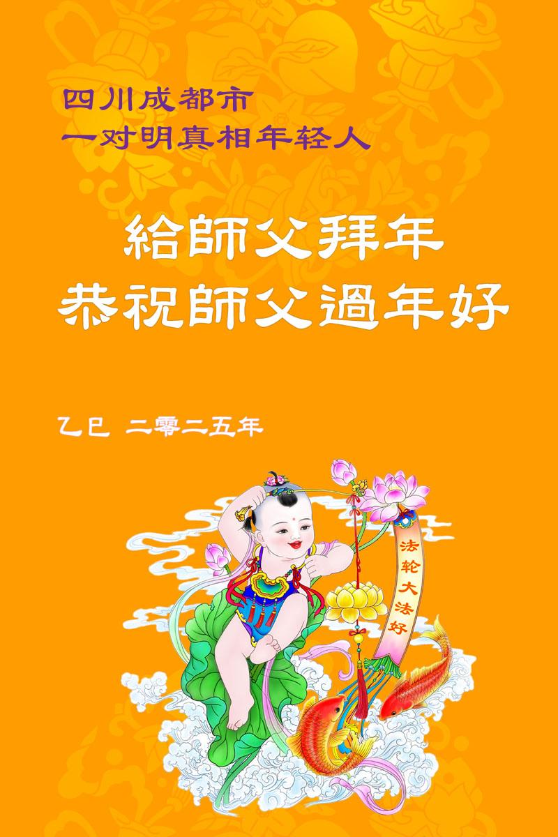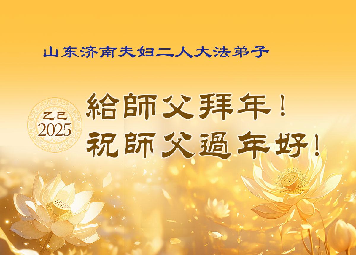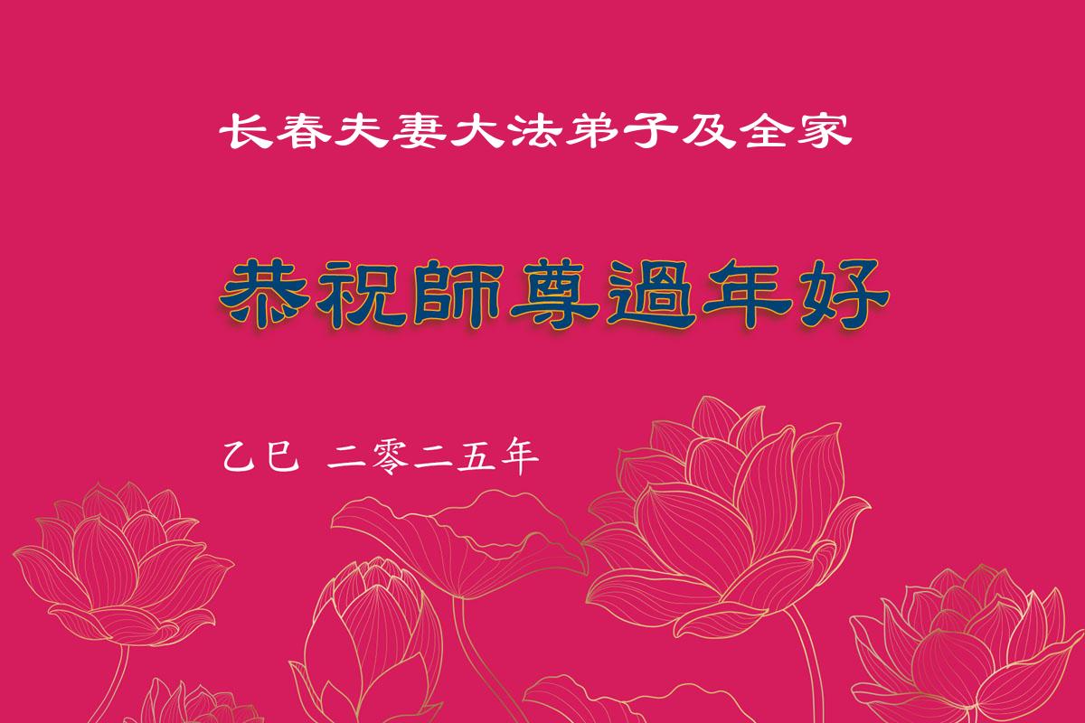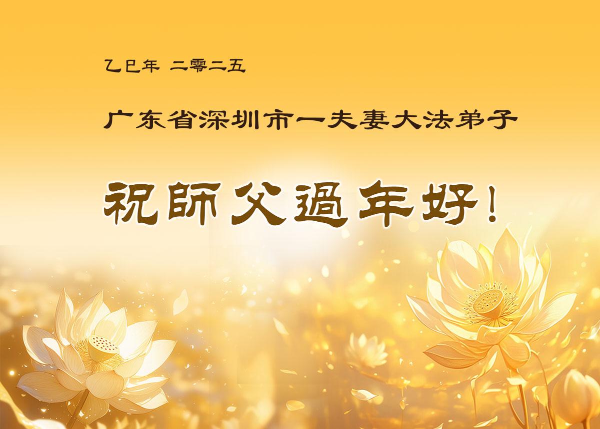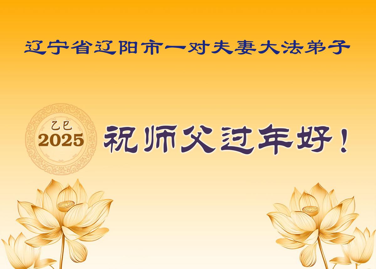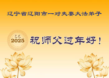 我们是明白真相的大法弟子家属。我们夫妻俩感谢李大师传大法,给我们带来了无量幸福。我们天天看真相,越看越愿意看。新年来临,我们给李大师拜年,李大师过年好!我们一定沿着正的能量前行。谢谢李大师!