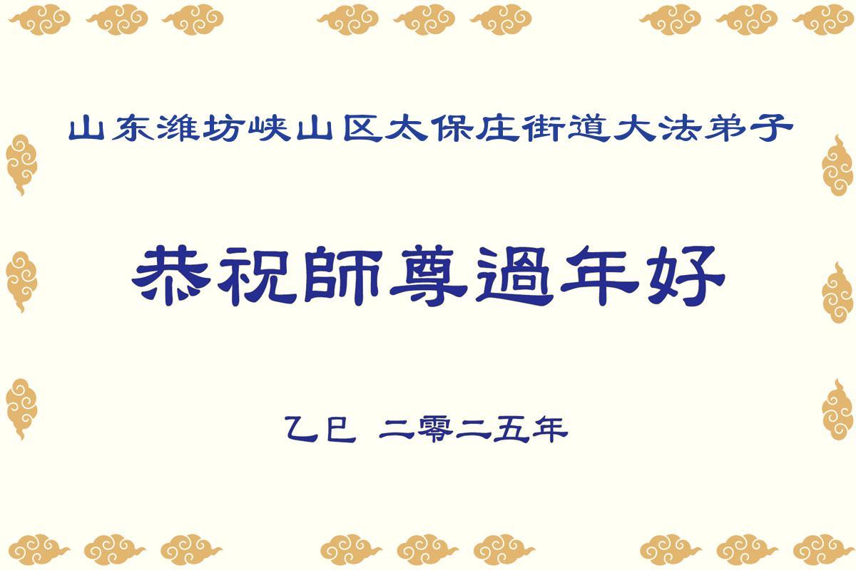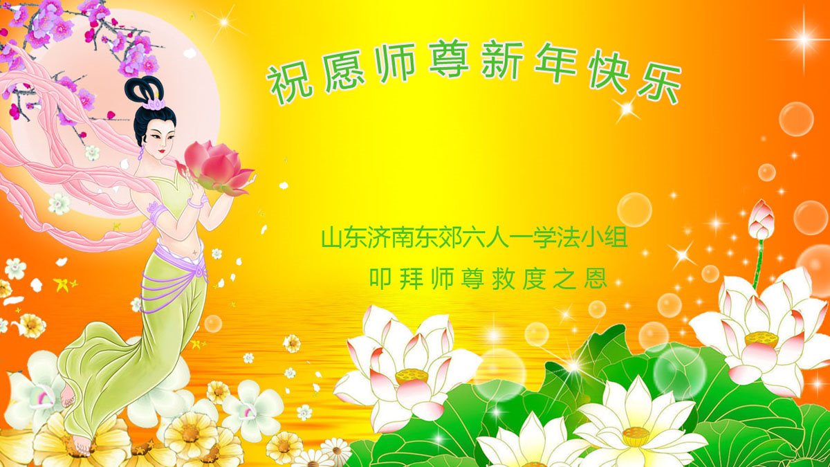 山东省临沂市被非法关押迫害的大法弟子恭祝慈悲伟大的师尊新年好!他们表示:“我们虽然身陷囹圄,身体没有自由,但助师救度众生的心不变,无论环境多么恶劣,依然会正念正行,救人不停,努力做好三件事,跟师父回家!谢谢伟大师尊的慈悲苦度!”