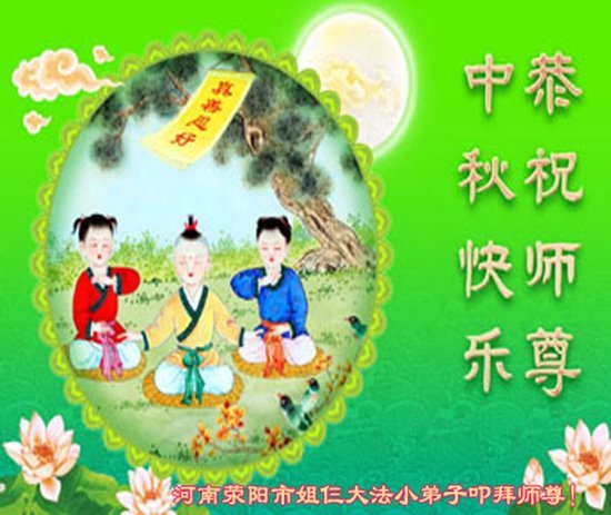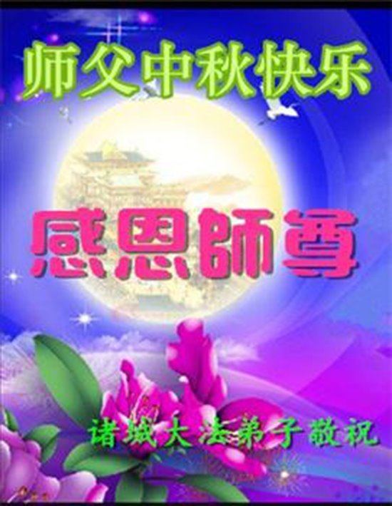 敬祝地球上最最尊敬的大法师父中秋节快乐!盼望大法师父早日回中国和您的弟子们团聚,愿您的弟子们早日脱离苦海!也祝福大师的弟子们中秋快乐!