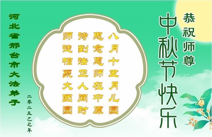 <英文版: https://en.minghui.org/html/articles/2025/10/2/230139.html>长春大法弟子恭祝师尊中秋好(18条)