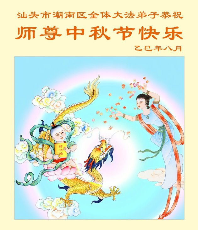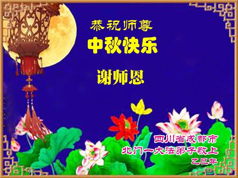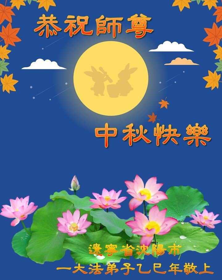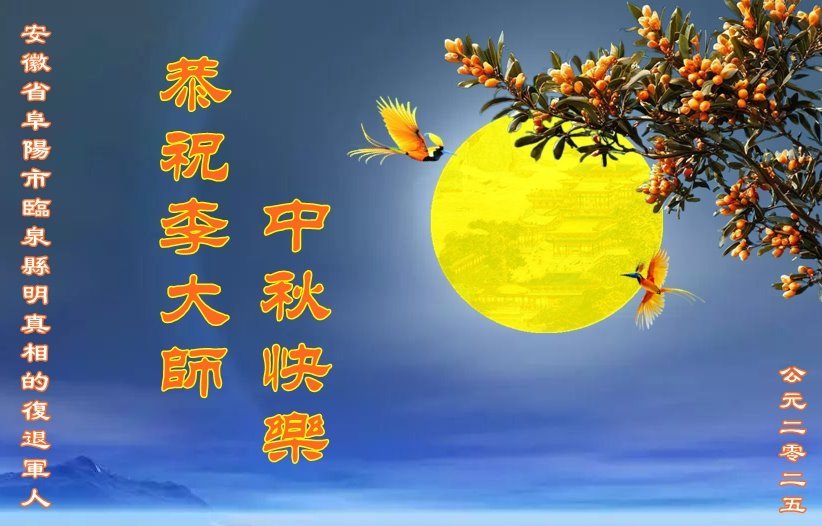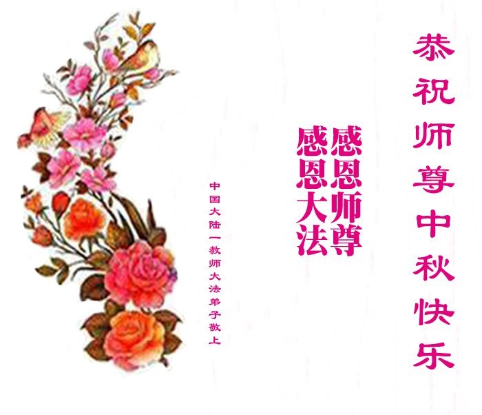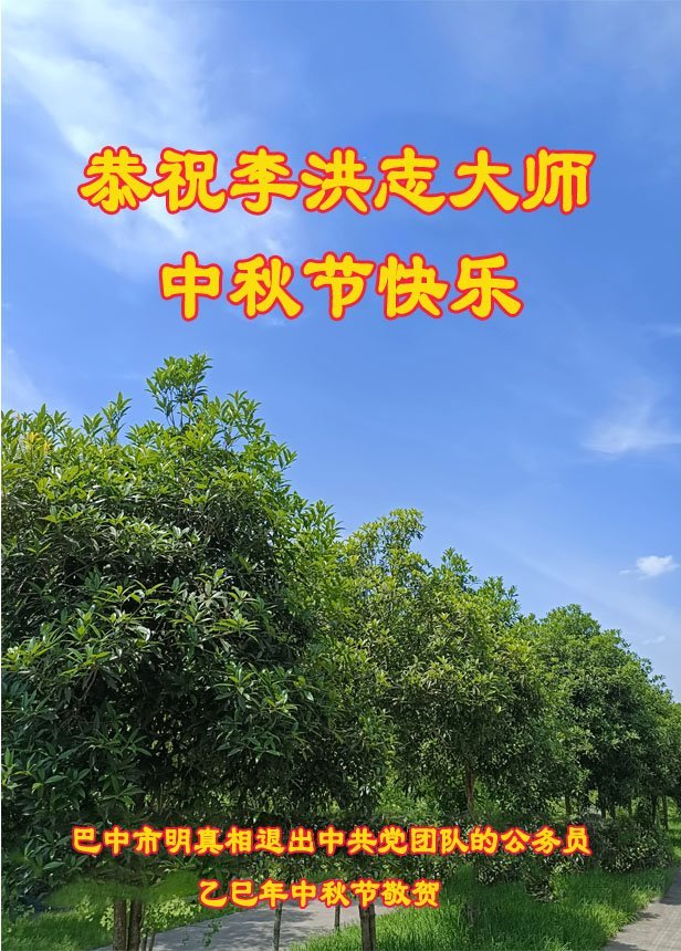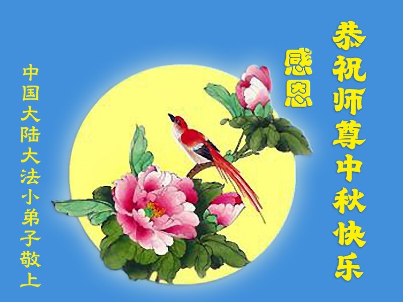 中秋佳节即将到来,在此祝愿李大师中秋快乐!愿中国人尽早抛弃邪党,过上真正属于人类的正常生活。愿大法弟子遭受的迫害尽快结束,能够正常的修炼,从而更好的福益于全社会、全人类。