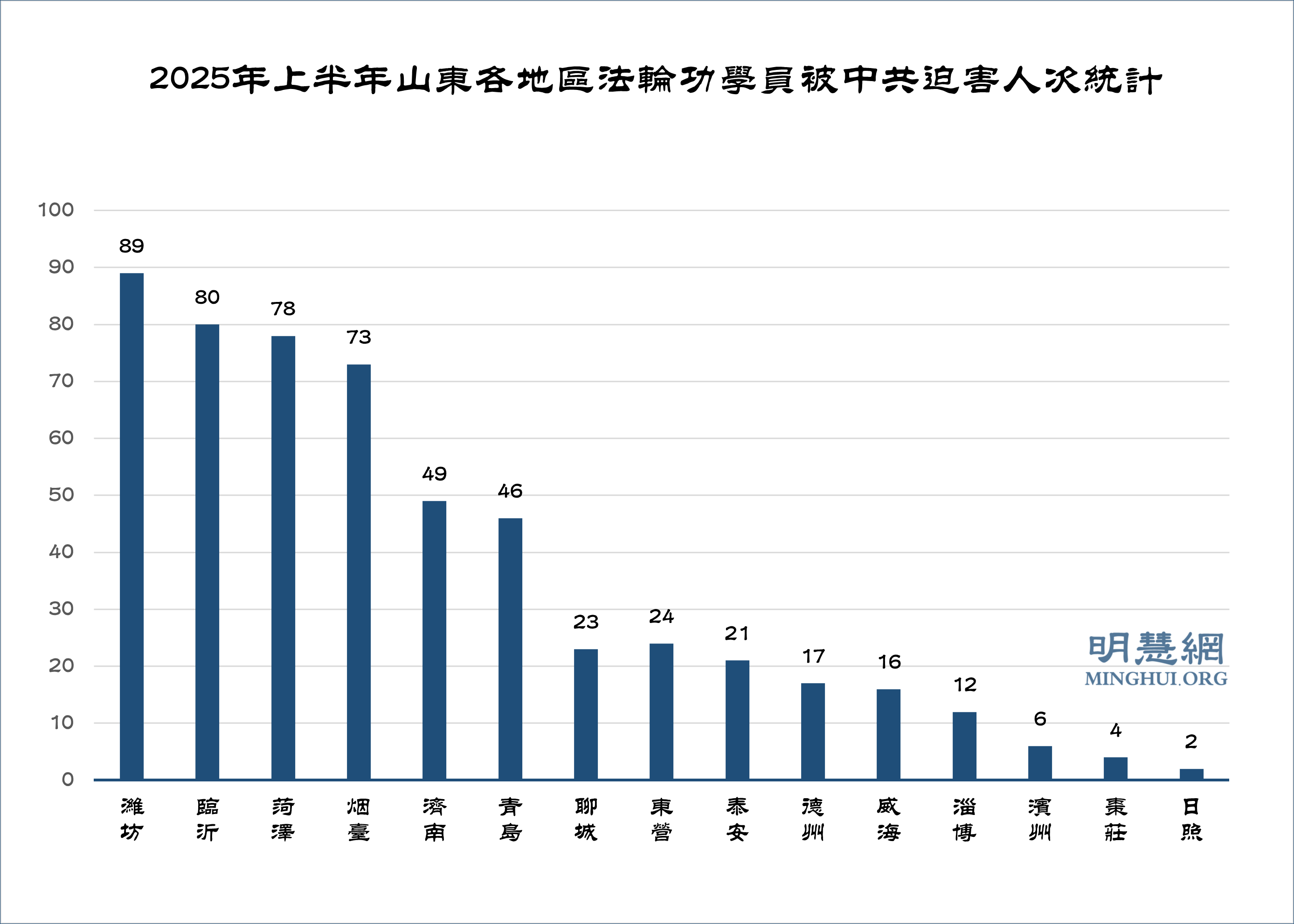 据明慧网数据统计,2025年上半年又获知,山东省法轮功学员被中共用各种手段迫害至少540人次。其中5人含冤离世;66人被非法判刑。