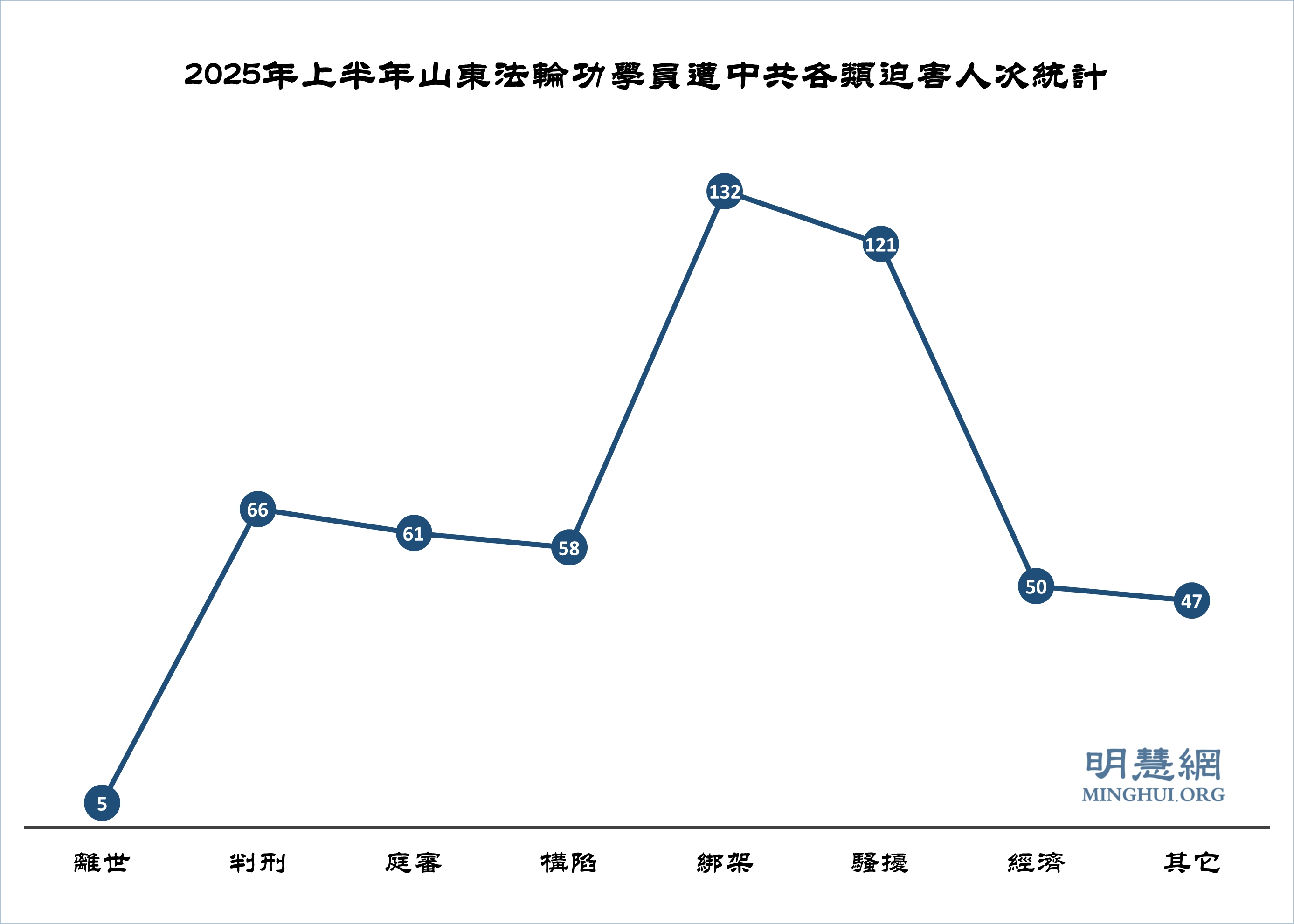 ![]() 图2:2025年上半年山东法轮功学员遭中共各类迫害人次统计 |