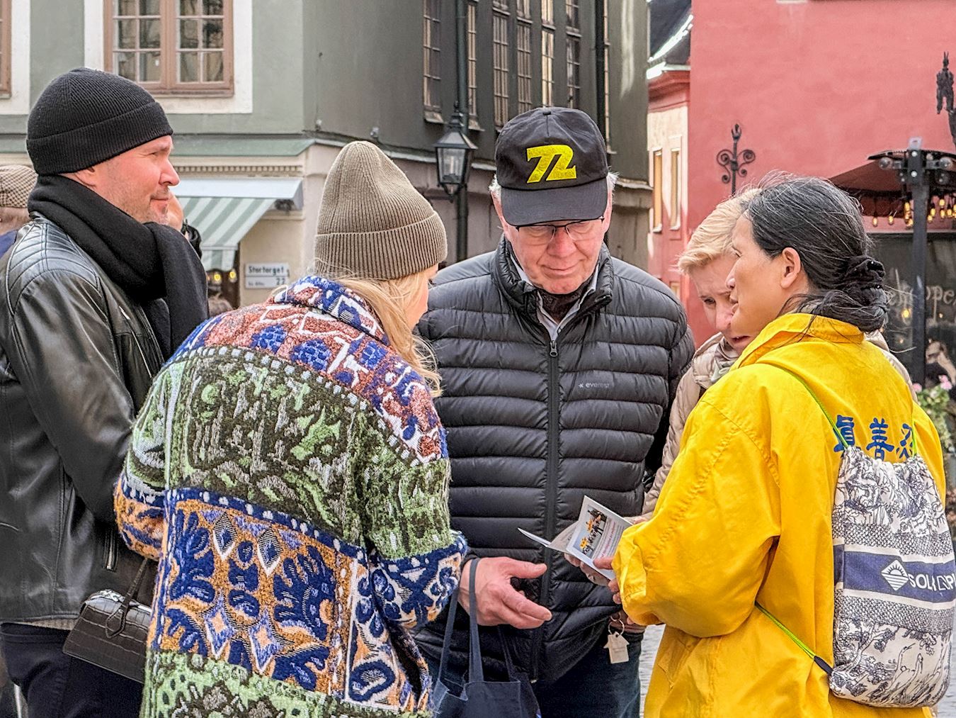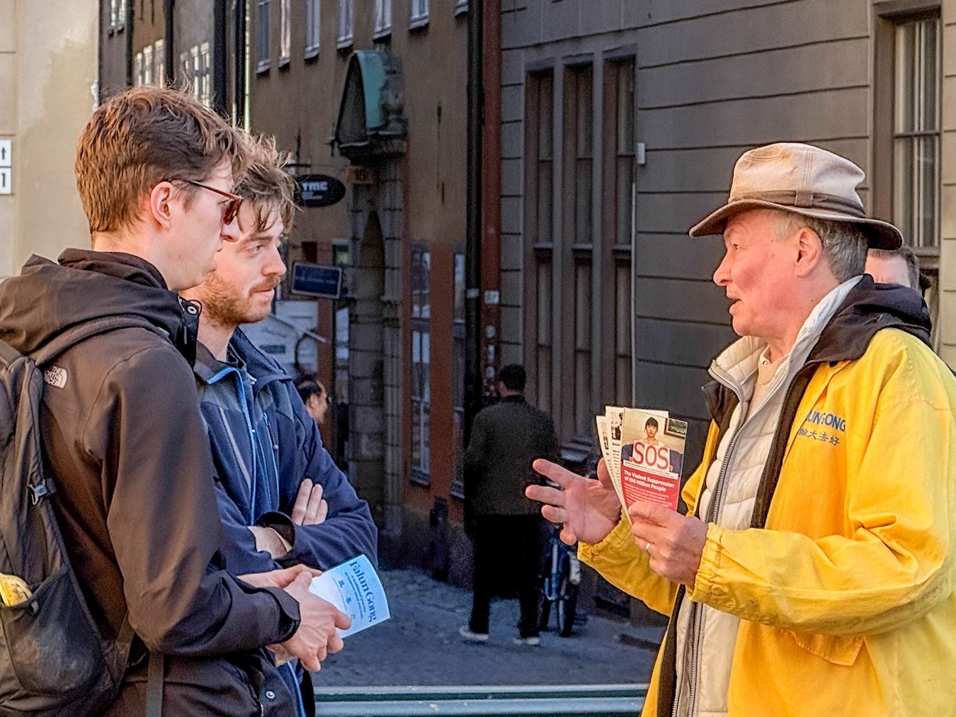 在活动现场,一位瑞典先生看到游人络绎不绝地前来签名声援法轮功,就径直走上前和学员聊了起来。他介绍自己是瑞典的一名记者,并告诉学员他很清楚中共活摘器官这个事情是真实存在的。