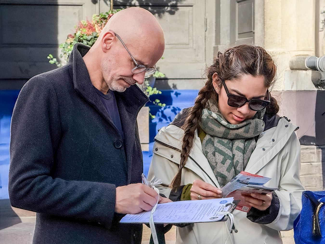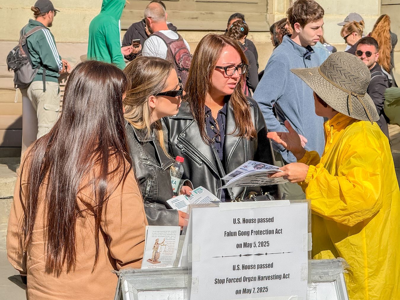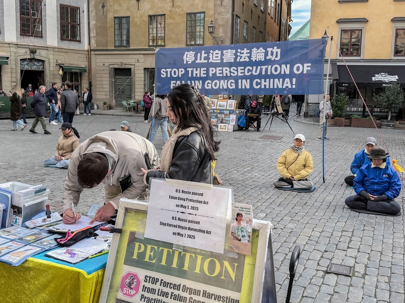 【明慧网二零二五年十月十五日】(明慧瑞典记者站斯德哥尔摩报道)自进入二零二五年十月以来,每个周五至周日连续三天的下午,法轮功学员都在诺贝尔博物馆前举办讲真相反迫害征签活动。揭露中共对大陆法轮功学员长达二十六年的迫害和活摘法轮功学员器官的暴行,以及中共在美国发动法律战、舆论战、在世界各地散布虚假信息等跨国镇压恶行。活动得到了各界民众的关注和支持。