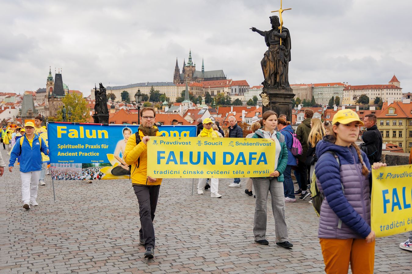 报道中说:“十月十一日,星期六,法轮功学员在布拉格举行了游行,提醒布拉格市民与游客关注(中共对该信仰团体的持续)迫害。世界上其它令人担忧的事件使得法轮功受迫害这个话题被淡化了,但是中共当局发动的这场迫害已持续了二十六年,杀害了成千上万中国人。”