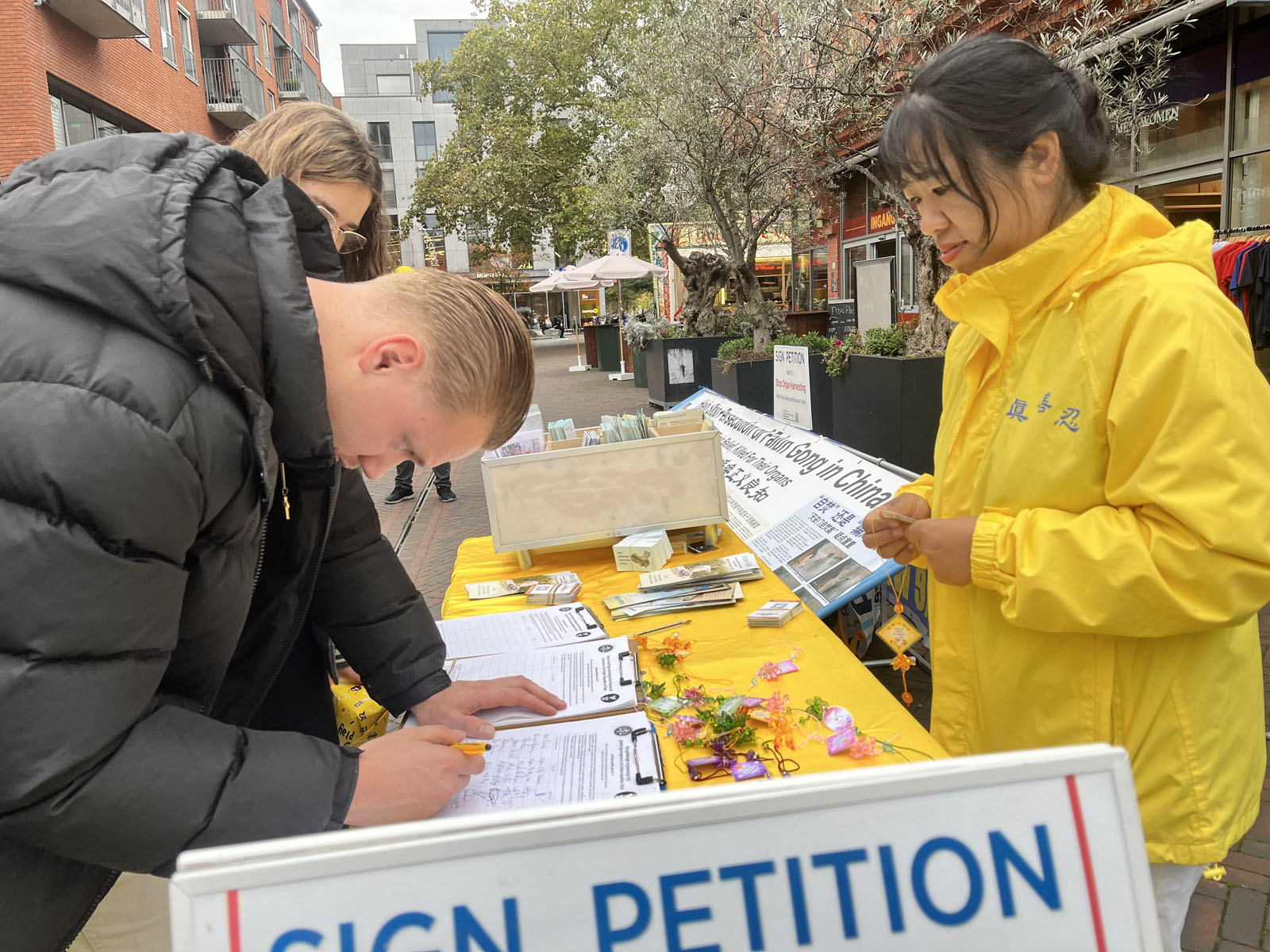 来自克罗地亚的戈丹娜(Gordana)爱好中医,利用针灸帮助病人。她有许多来自中国的朋友和同事,从他们那里听说过中国存在活摘器官牟利的事情,看到法轮功的街头展板,做反对活摘法轮功学员器官的征签,就过来签名。