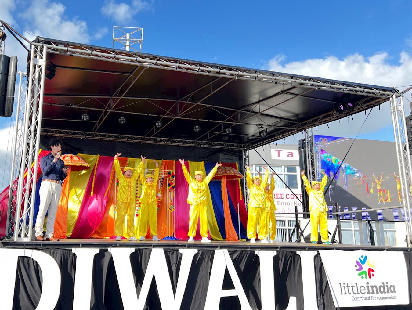 ![]() 图1:二零二五年十月十八日,新西兰法轮功学员应邀参加了奥克兰南区帕帕图伊图伊(Papatoetoe)年度排灯节(Diwali)庆典。图为:法轮功学员在舞台上展示功法。 |