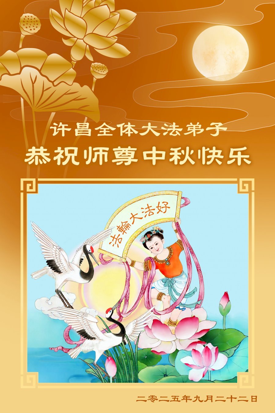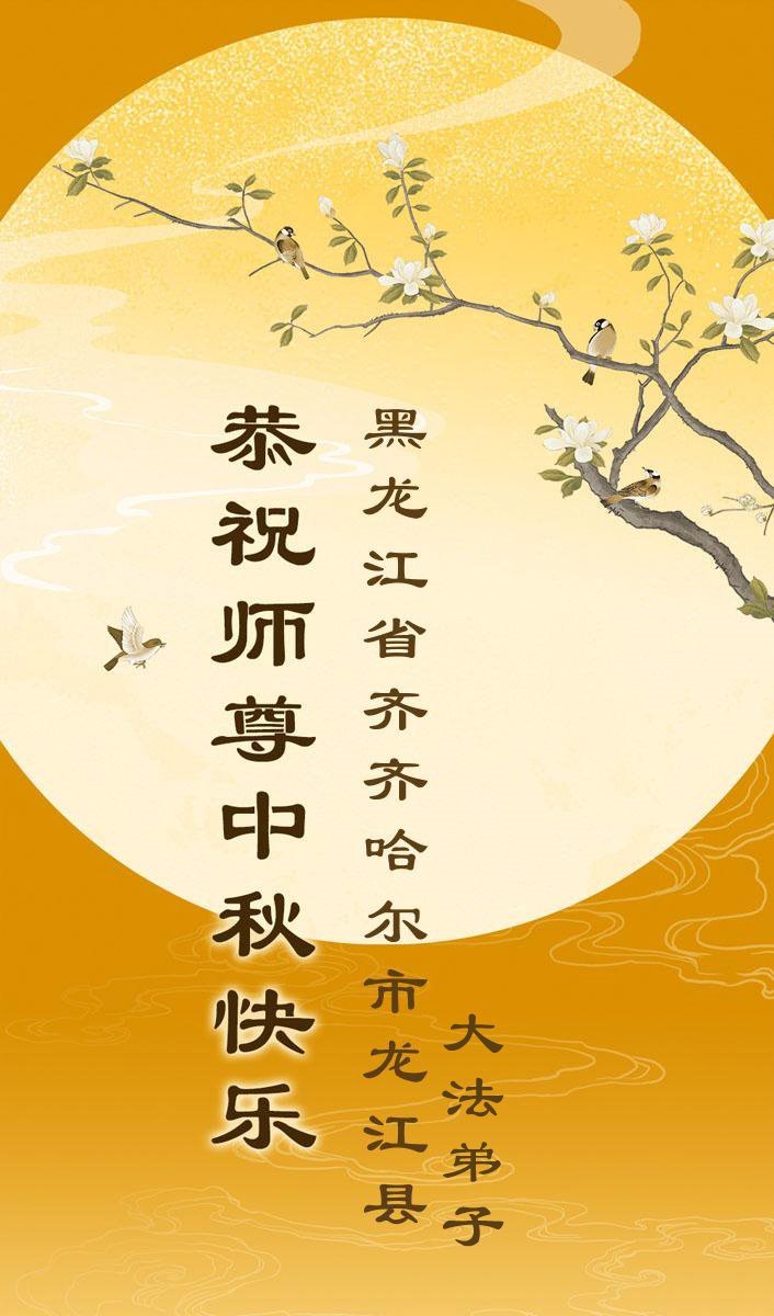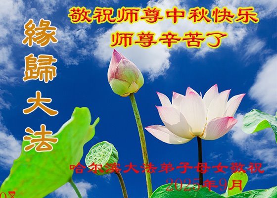 师尊您辛苦了!阖家团圆的中秋佳节又来临了。我们想念师尊,盼望早日见到师尊。在二十多年的修炼路上,是慈悲伟大的师尊牵着我们的手,一步步的走到了今天,师尊为我们的巨大付出和承受,我们是根本无法想象的,师尊的洪恩是用人类的语言无法表达的。弟子只有一颗坚定的心,谨遵师尊教诲,在所剩不多的时间里做好三件事,走好修炼的路,完成大法弟子的使命。深深叩拜师尊的救度之恩!