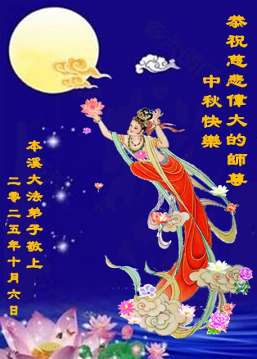 在中秋佳节到来之际,弟子感谢师父的慈悲救度,祝师父中秋快乐!弟子一定做好三件事,勇猛精進,不辱使命。