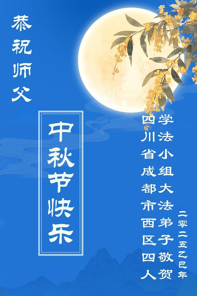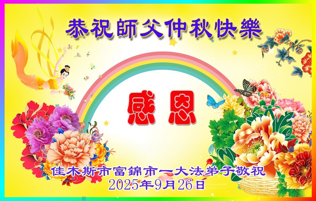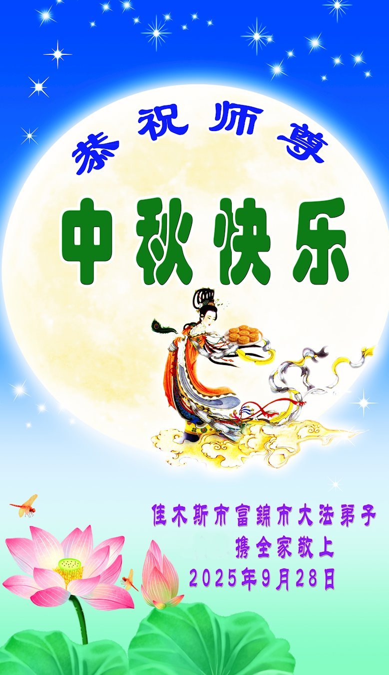 <英文版: https://en.minghui.org/html/articles/2025/10/4/230420.html>加拿大魁北克法轮功学员恭祝师父中秋节快乐