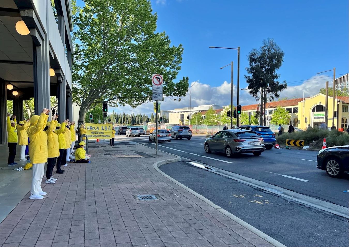 ![]() 图5~8:来自澳洲各地的部分学员连续数日在上班高峰期间,在堪培拉市中心展示真相横幅和法轮功五套功法,并征集反迫害签名。 |