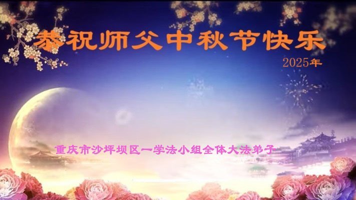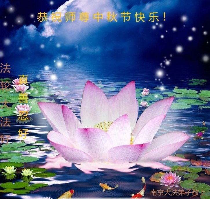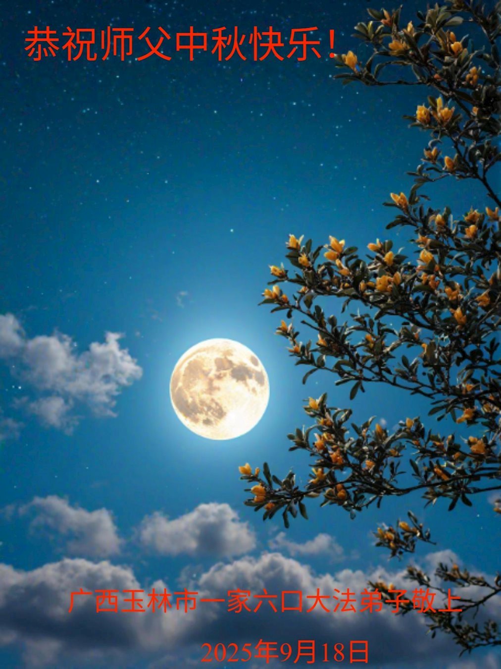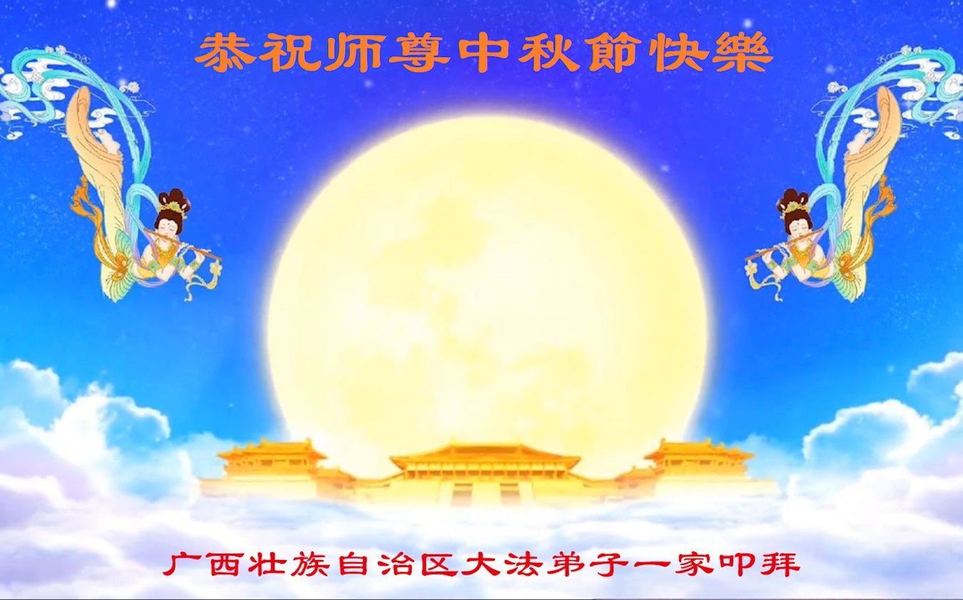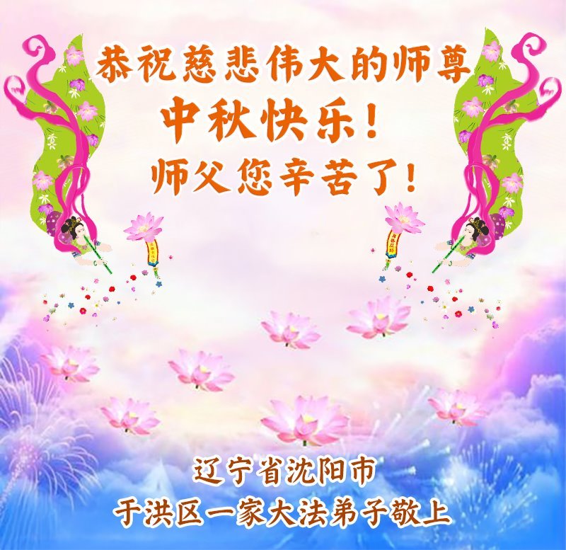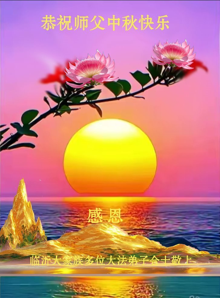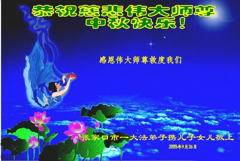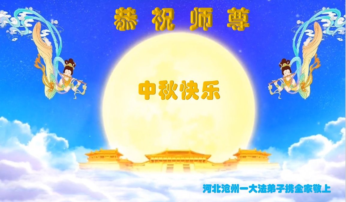 我们大法弟子携家人和明真相的世人恭祝师尊中秋节快乐!师尊辛苦了!谢谢师尊的慈悲苦度!弟子一定破除旧势力的安排,消除间隔,形成强大的整体,反迫害,救度众生。弟子们要多学法,学好法,发好正念,向内找,兑现自己的誓约,跟师父回家。