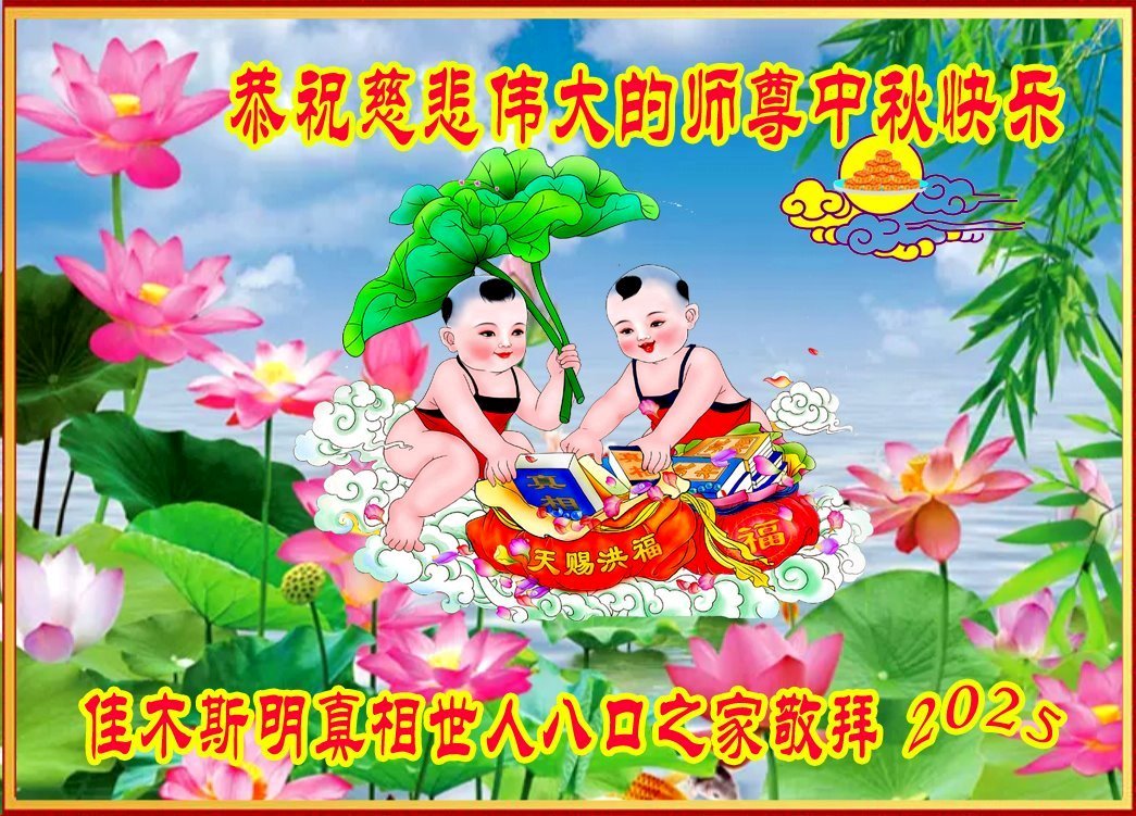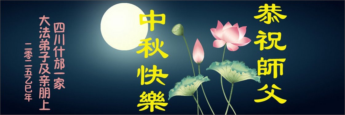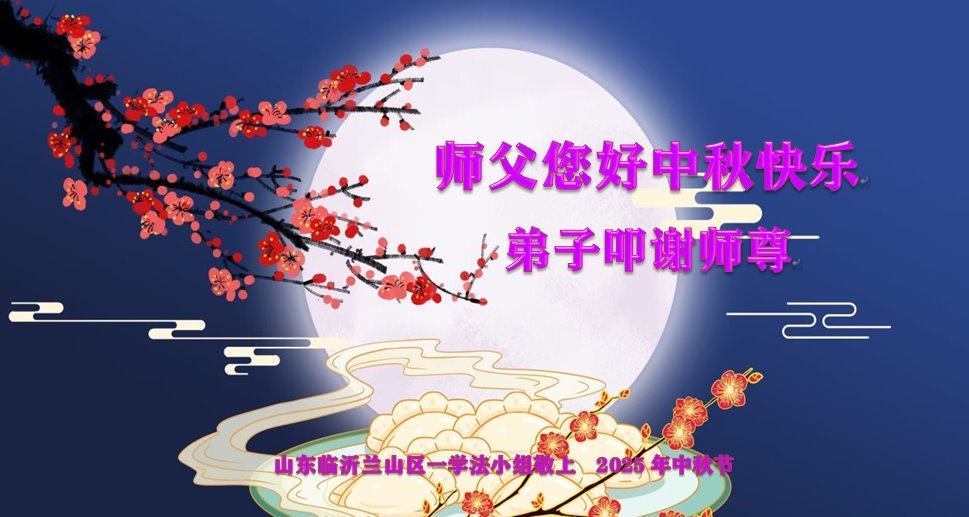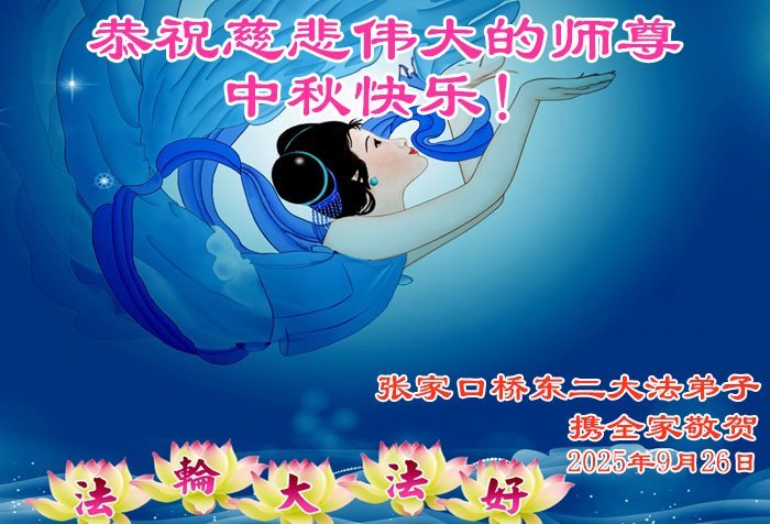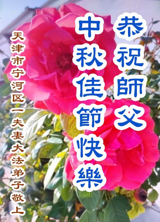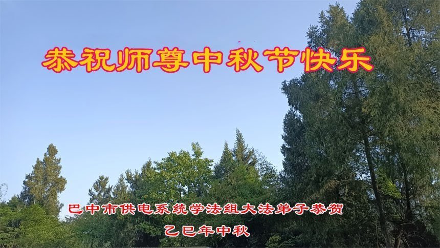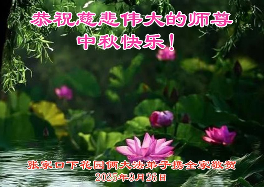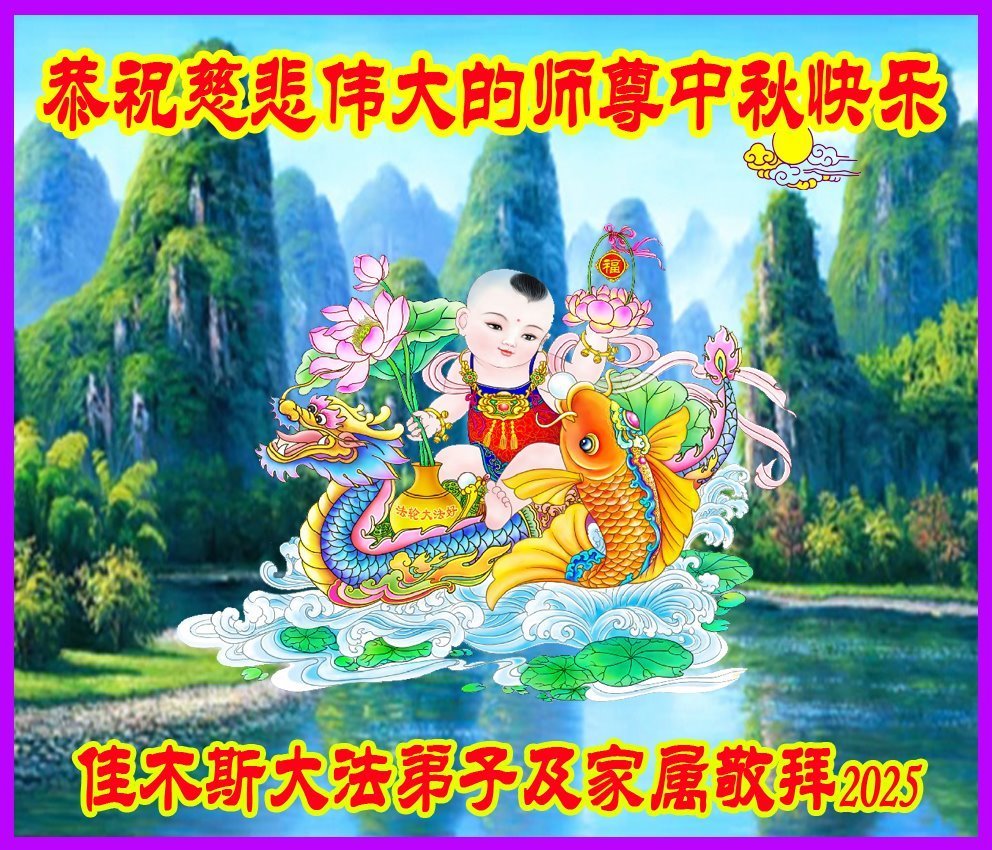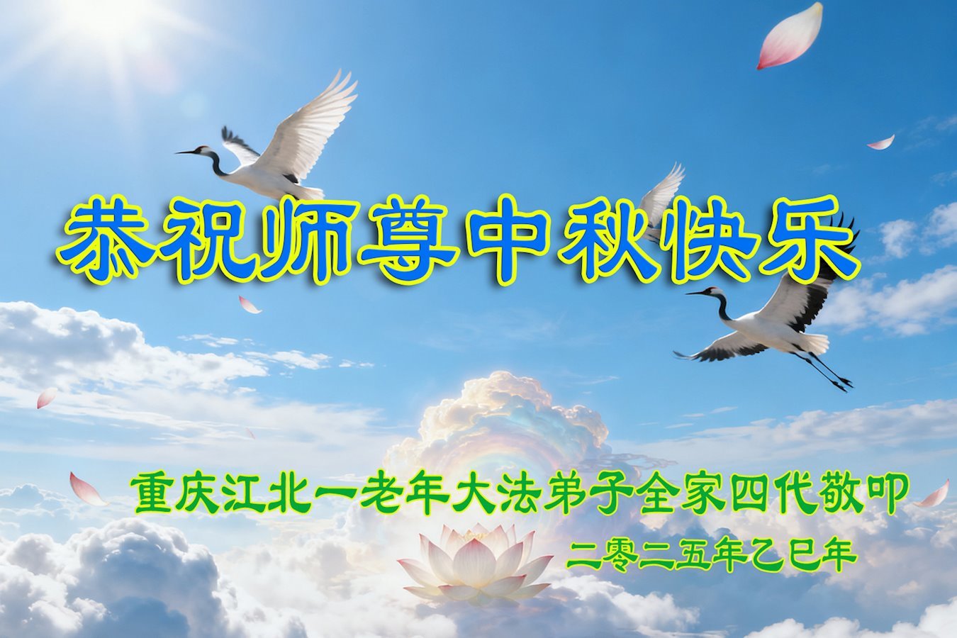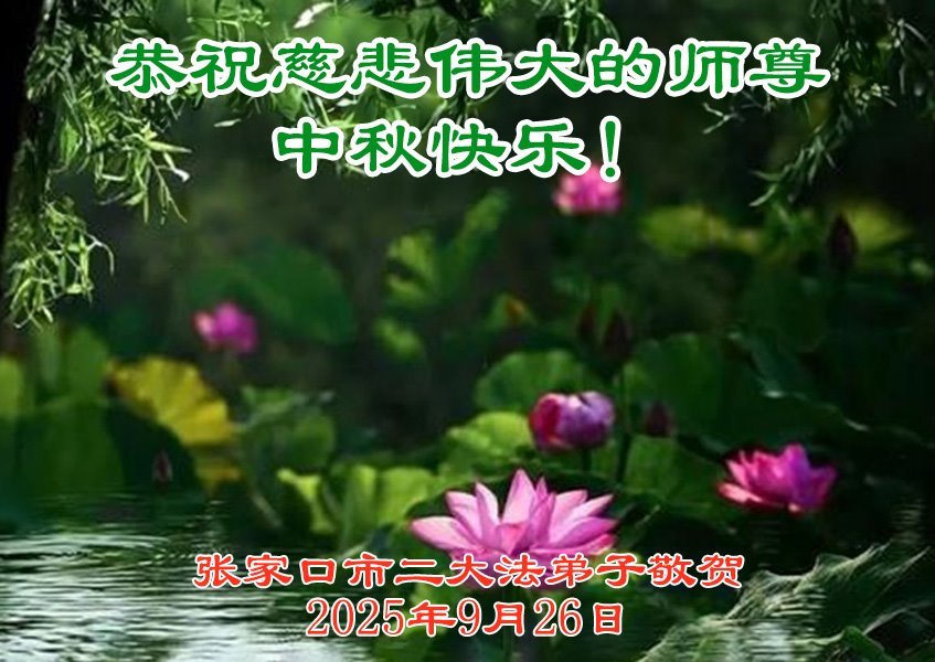我们大法弟子携家人和明真相的世人恭祝师尊中秋节快乐!师尊辛苦了!谢谢师尊的慈悲苦度!弟子一定破除旧势力的安排,消除间隔,形成强大的整体,反迫害,救度众生。弟子们要多学法,学好法,发好正念,向内找,兑现自己的誓约,跟师父回家。