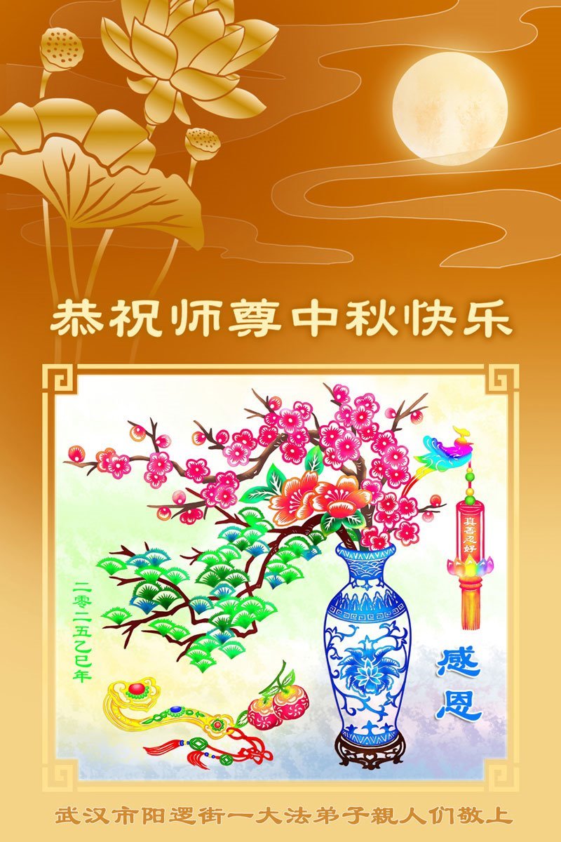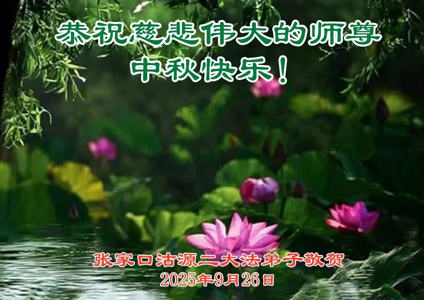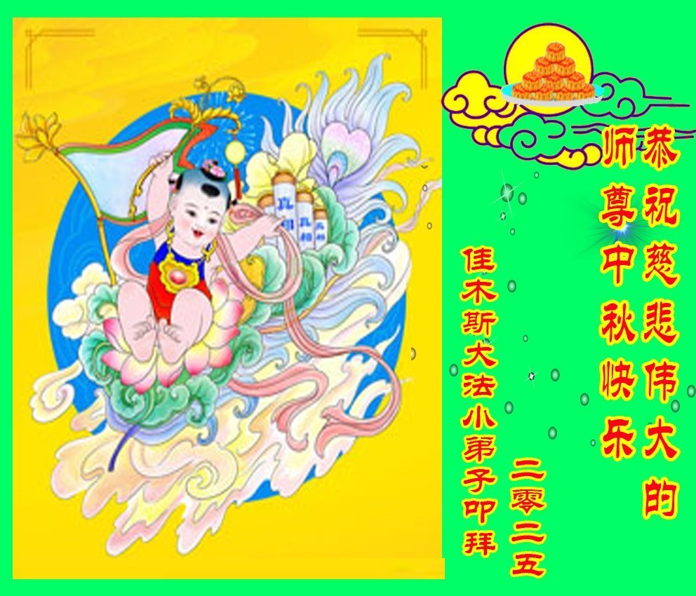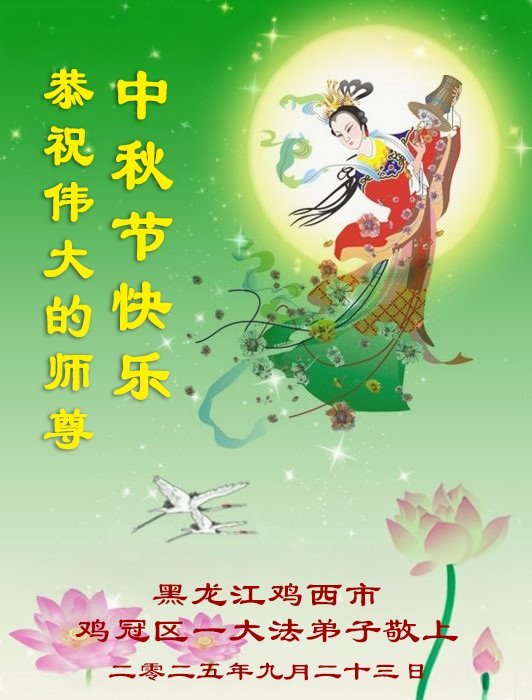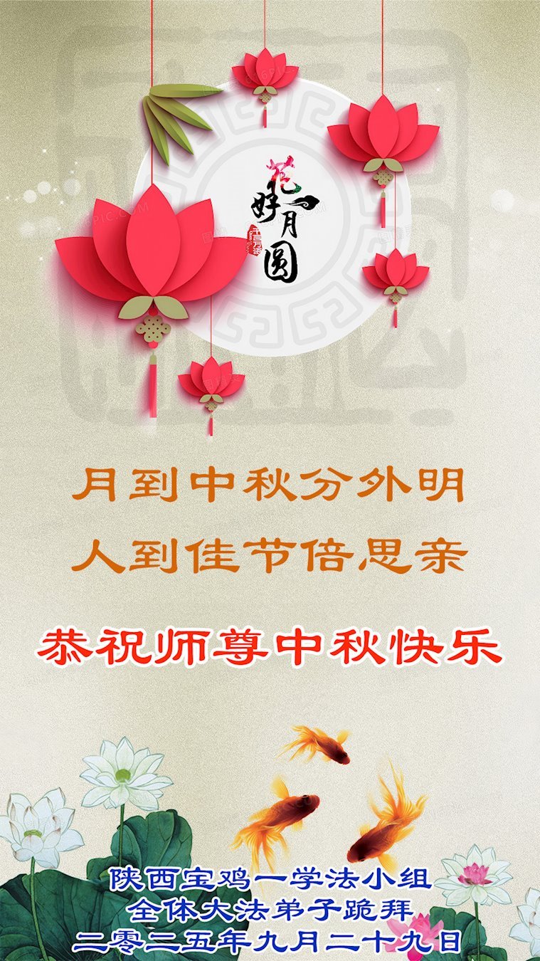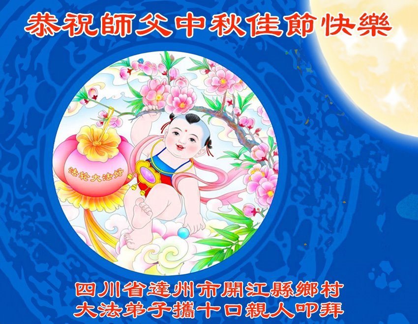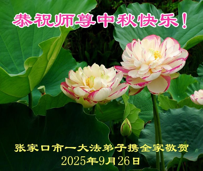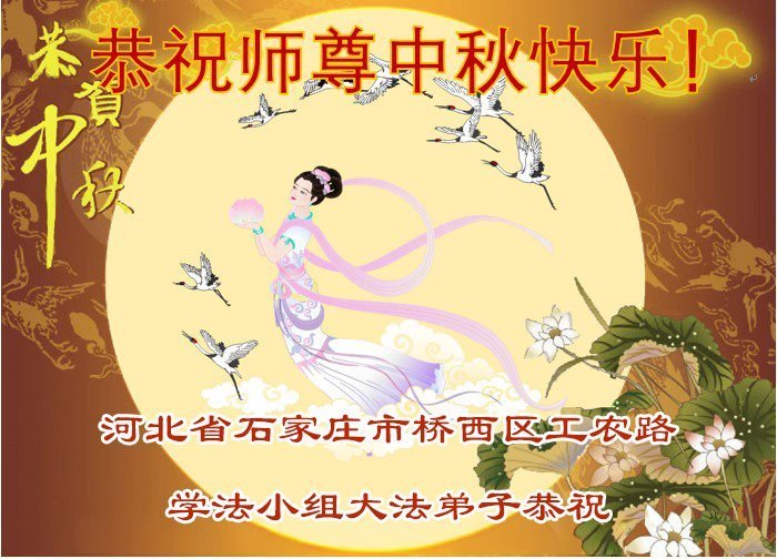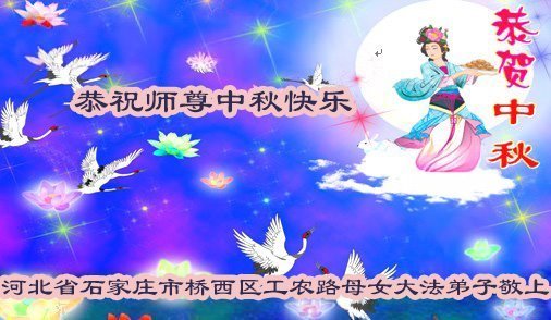 我们大法弟子携家人和明真相的世人恭祝师尊中秋节快乐!师尊辛苦了!谢谢师尊的慈悲苦度!弟子一定破除旧势力的安排,消除间隔,形成强大的整体,反迫害,救度众生。弟子们要多学法,学好法,发好正念,向内找,兑现自己的誓约,跟师父回家。