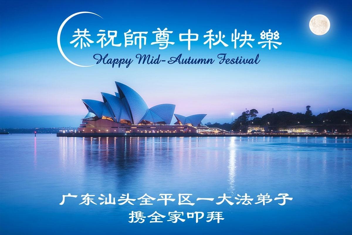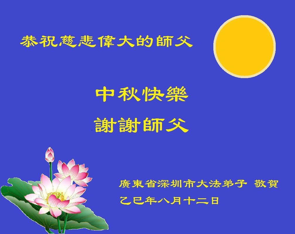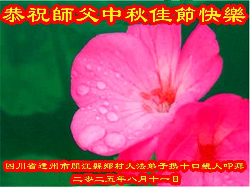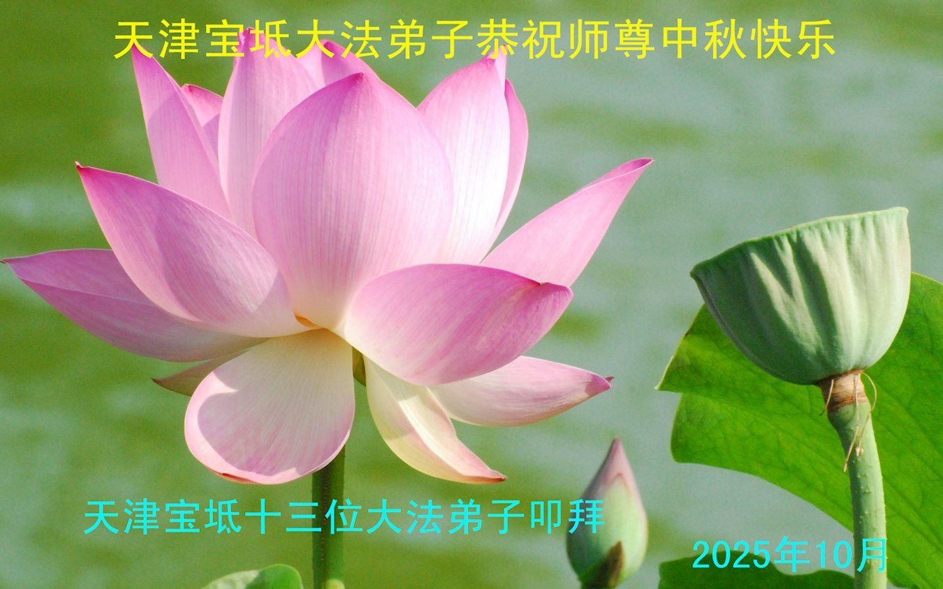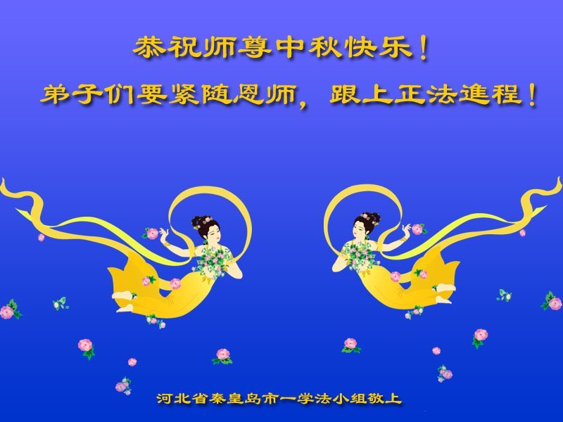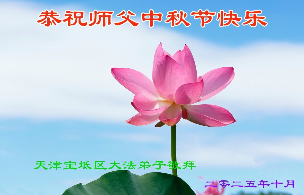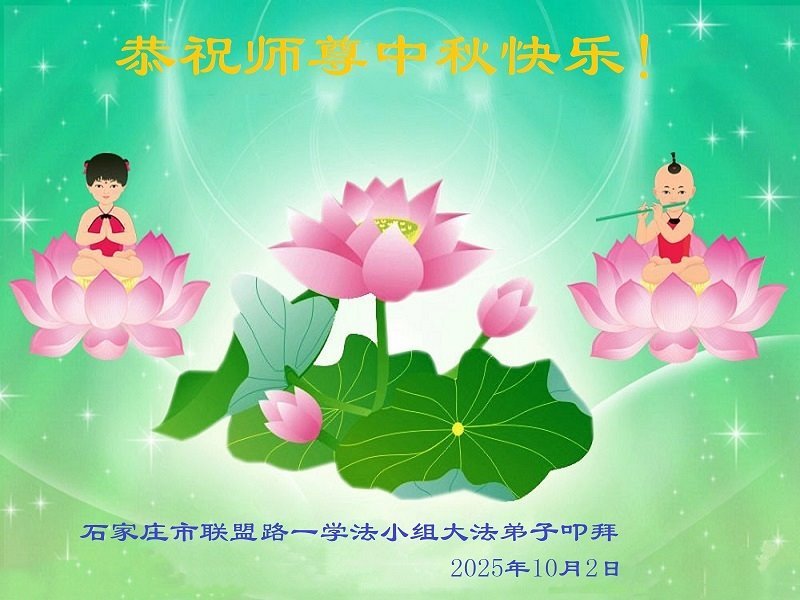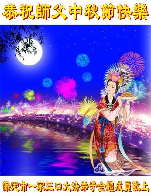 我们大法弟子携家人和明真相的世人恭祝师尊中秋节快乐!师尊辛苦了!谢谢师尊的慈悲苦度!弟子一定破除旧势力的安排,消除间隔,形成强大的整体,反迫害,救度众生。弟子们要多学法,学好法,发好正念,向内找,兑现自己的誓约,跟师父回家。