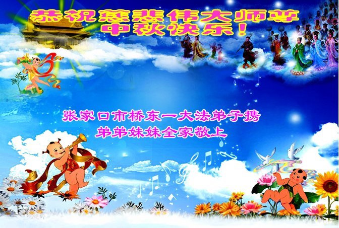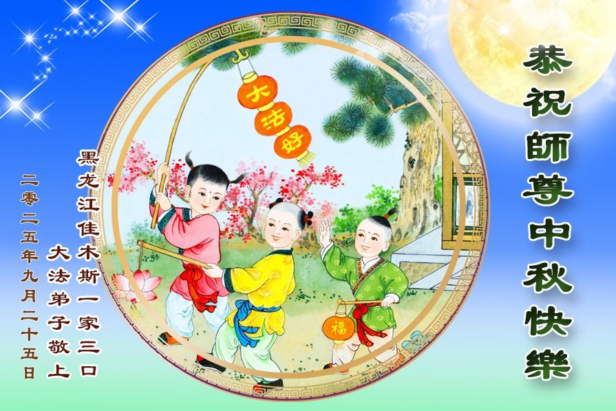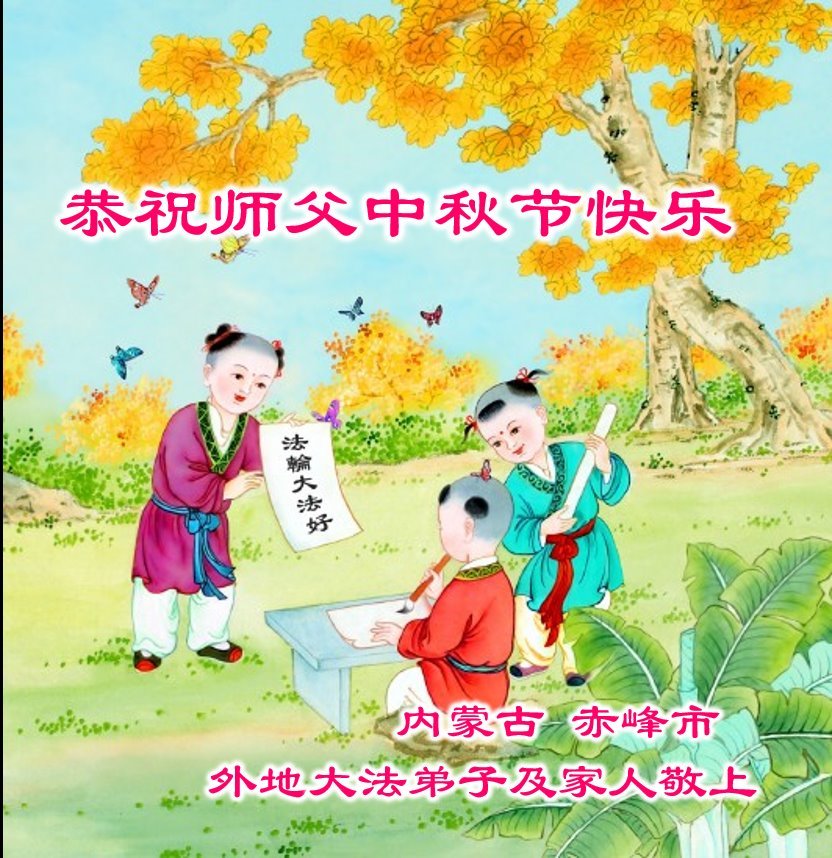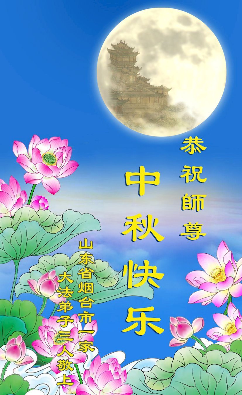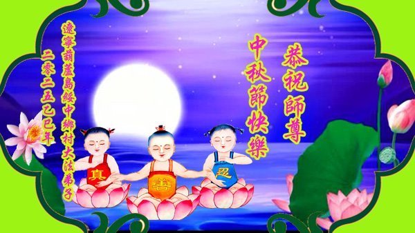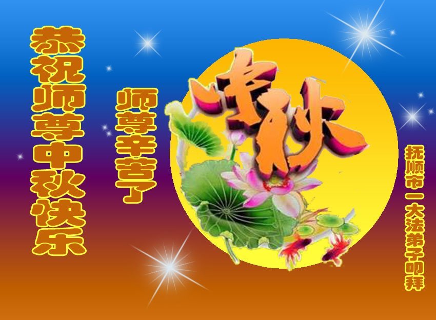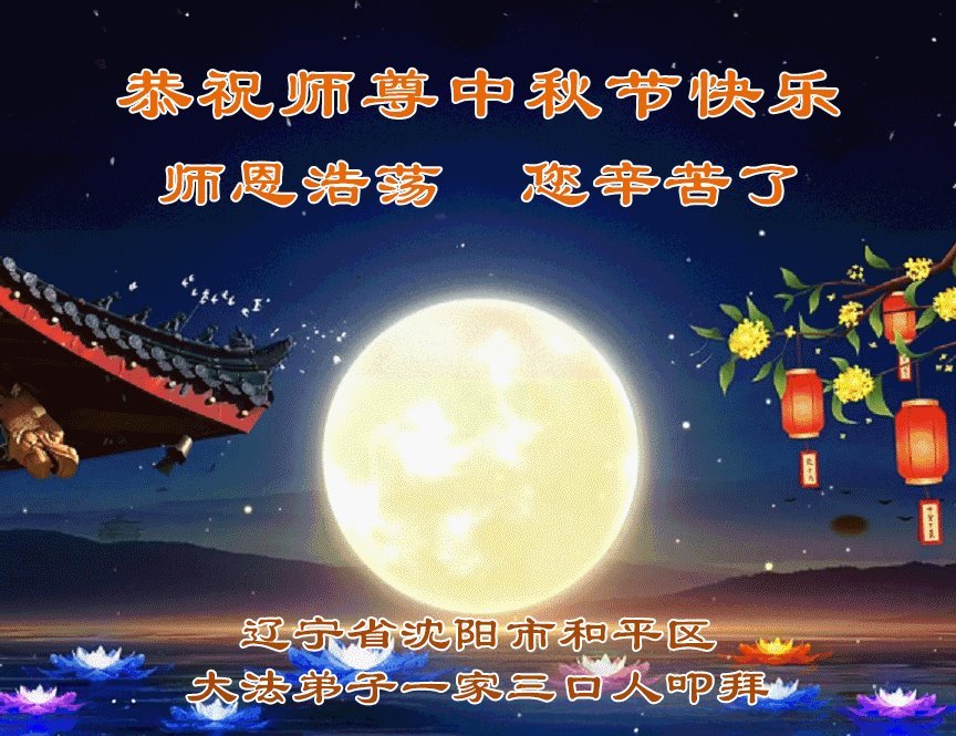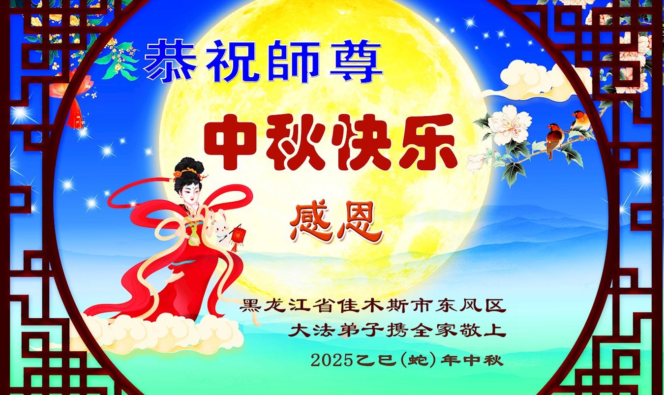 师父您好!我的家人们很早就明白了真相三退了,选择了美好的未来。在中秋佳节来临之际,全家衷心感恩大法师父,并祝愿大法师父中秋节快乐!