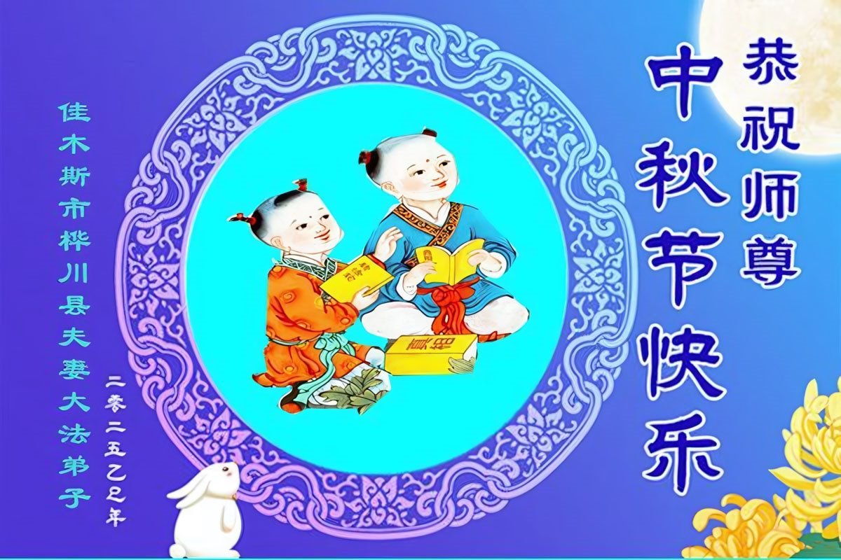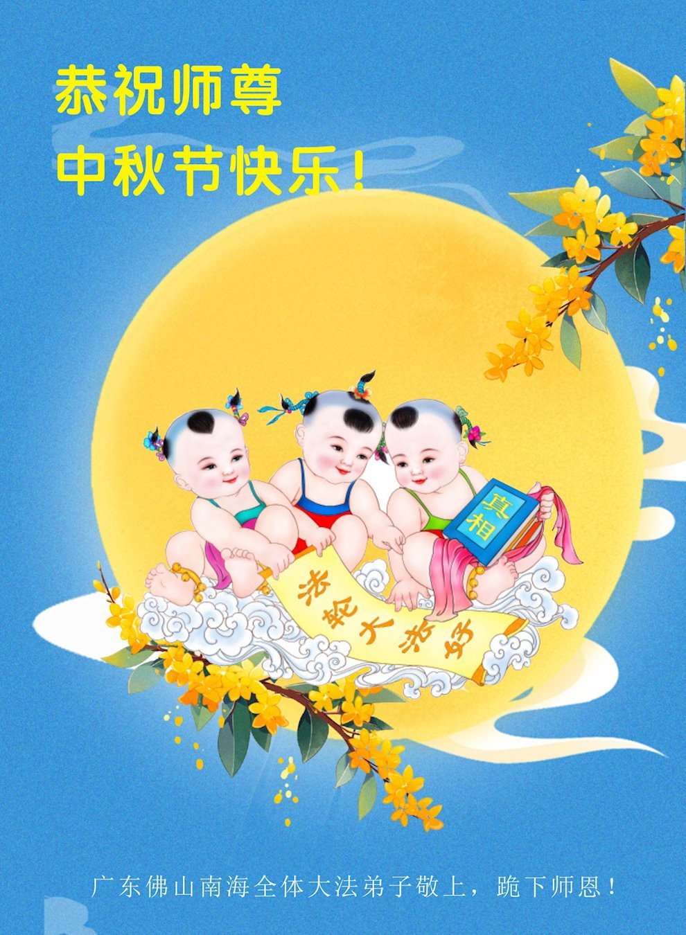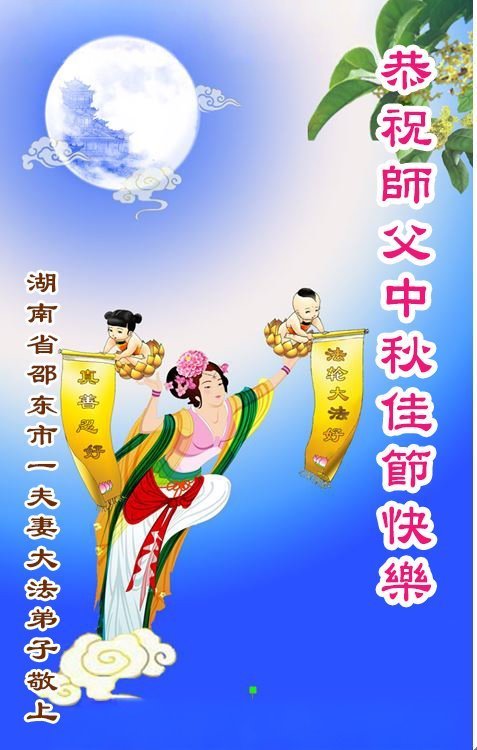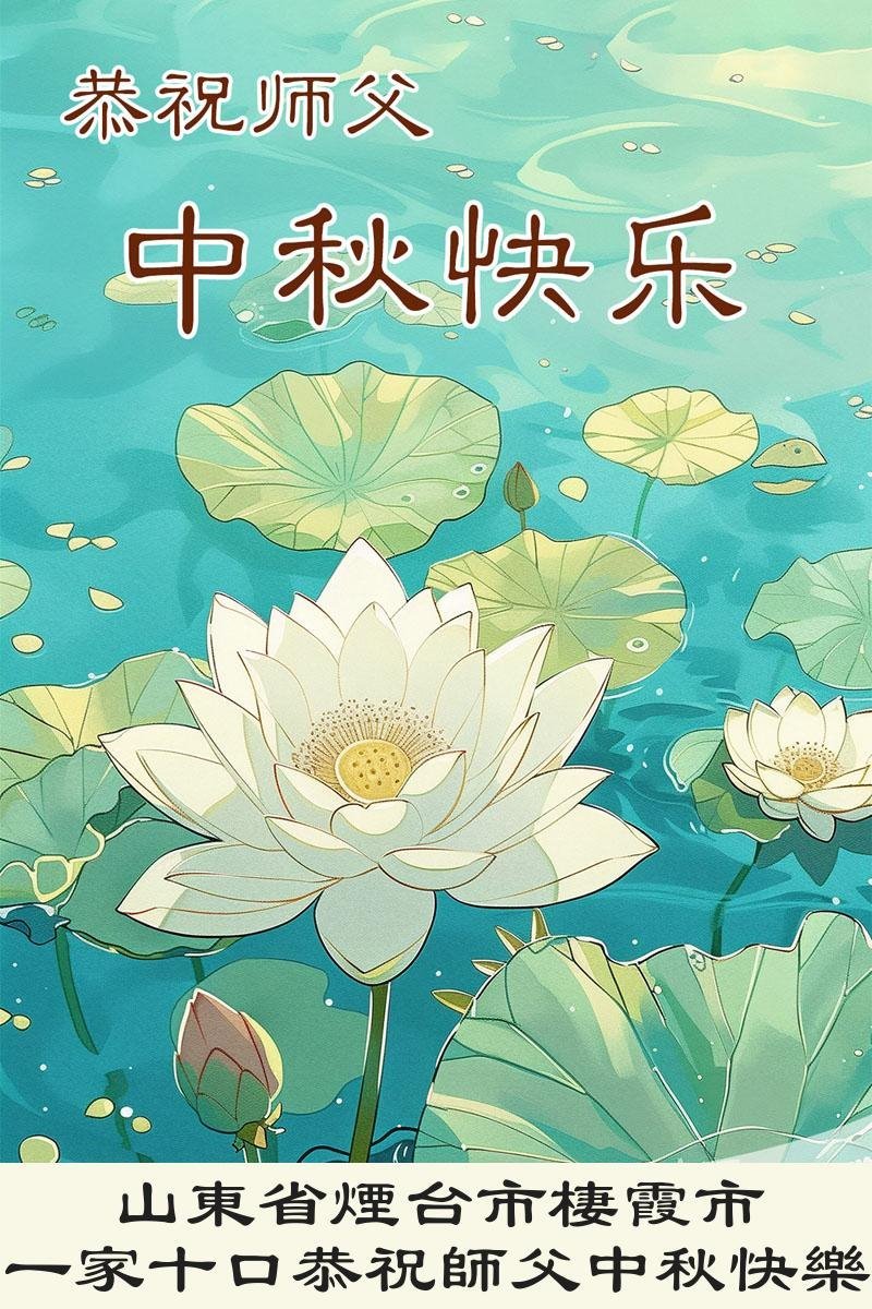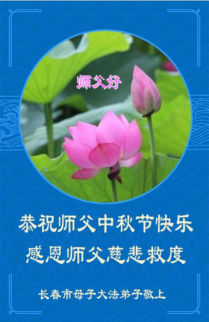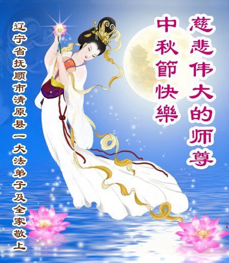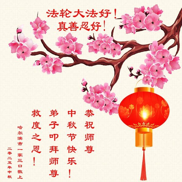 师父您好!我的家人们很早就明白了真相三退了,选择了美好的未来。在中秋佳节来临之际,全家衷心感恩大法师父,并祝愿大法师父中秋节快乐!