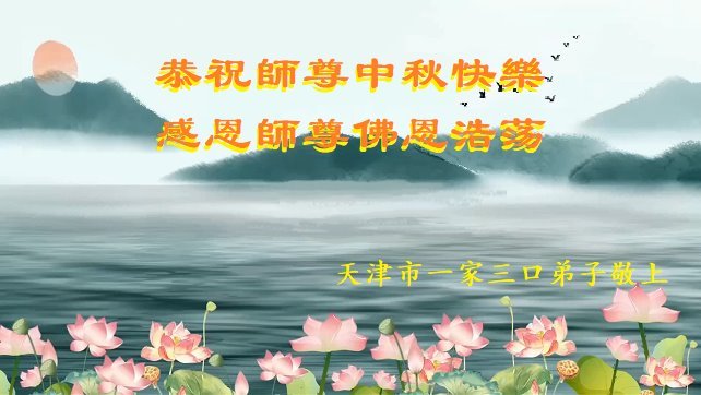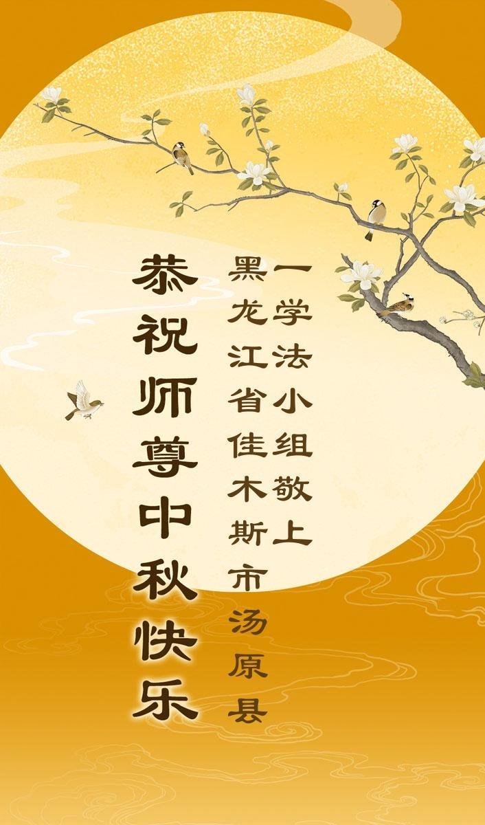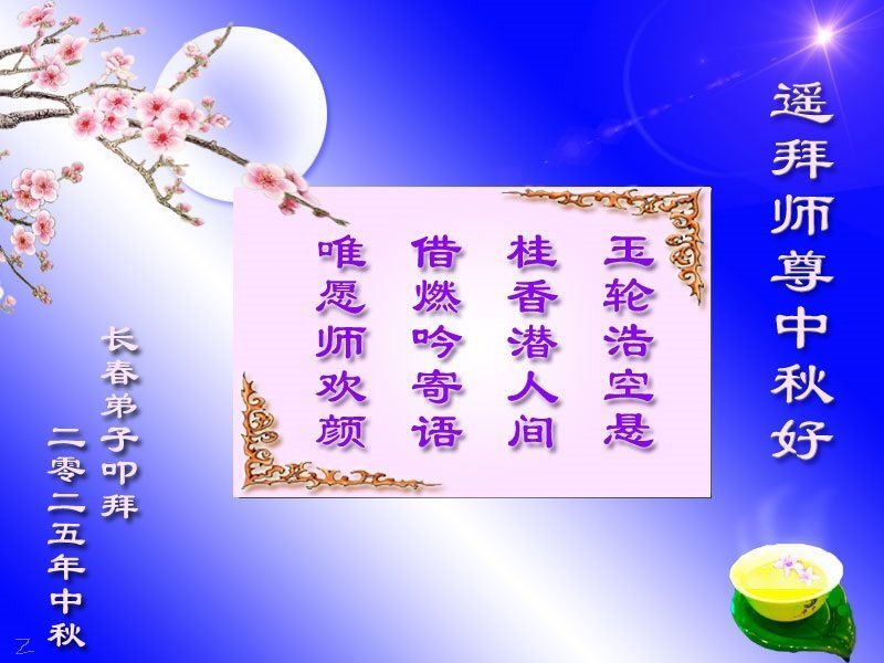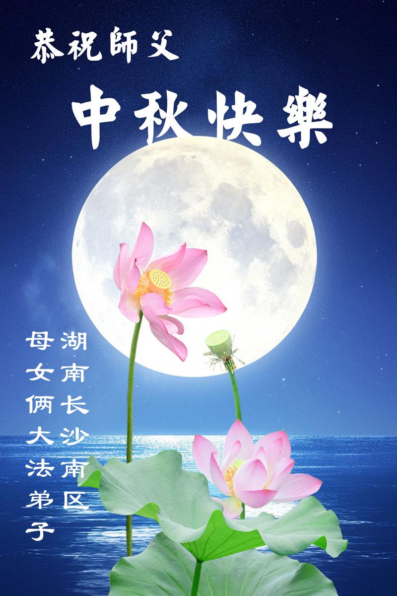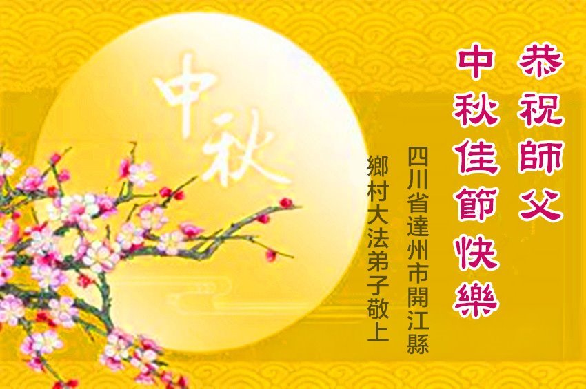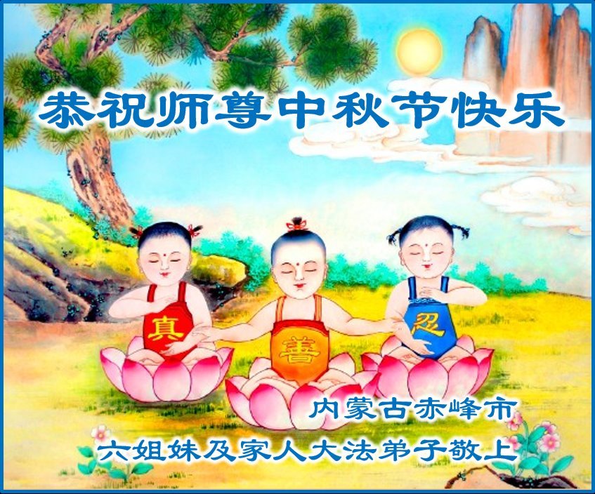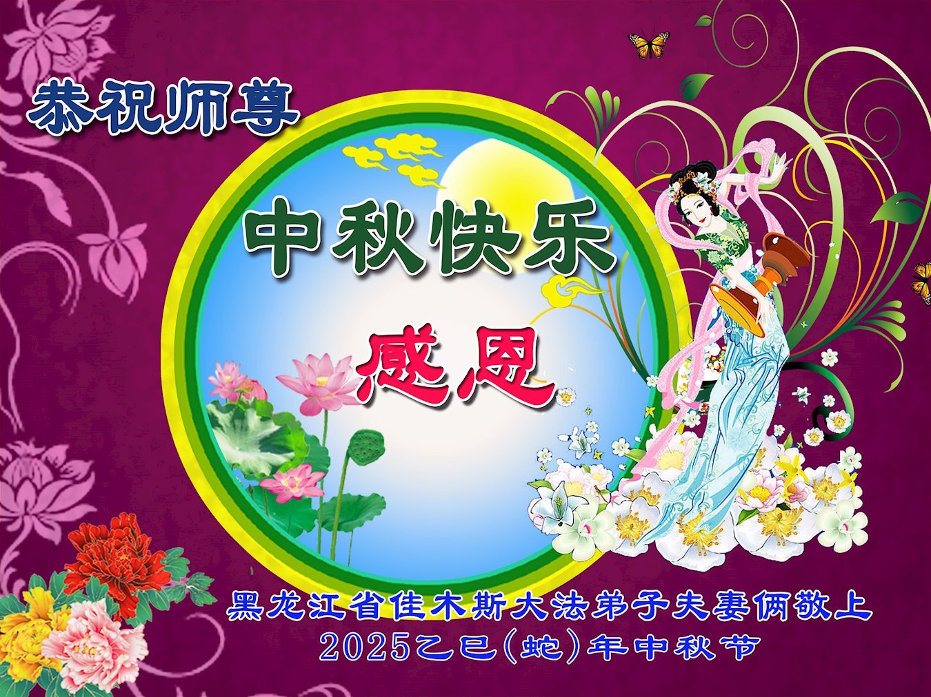 师父您好!我的家人们很早就明白了真相三退了,选择了美好的未来。在中秋佳节来临之际,全家衷心感恩大法师父,并祝愿大法师父中秋节快乐!