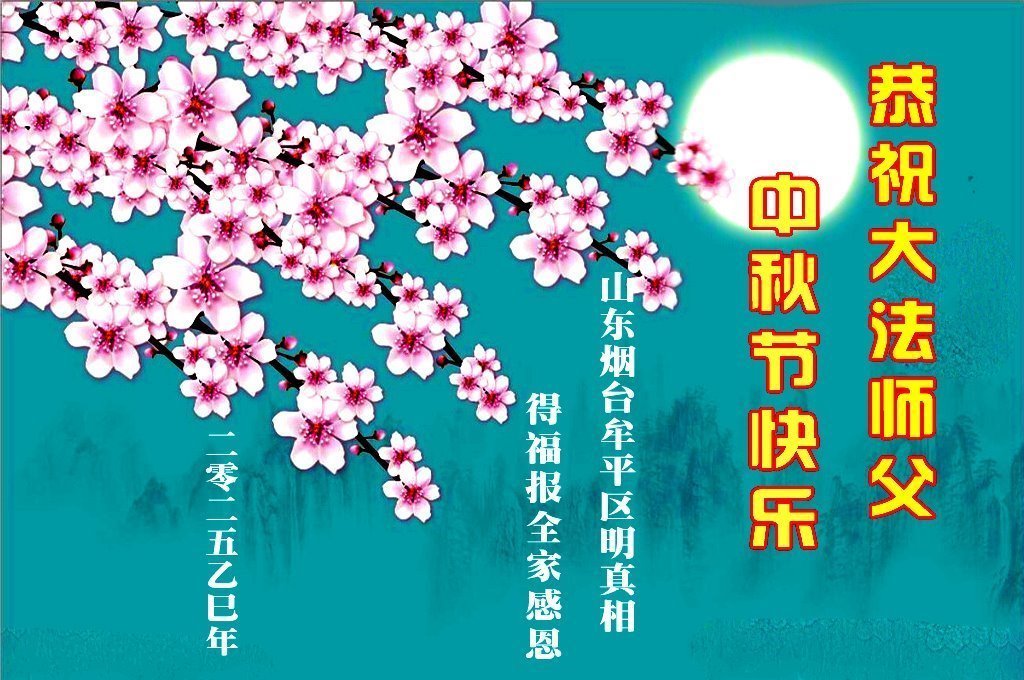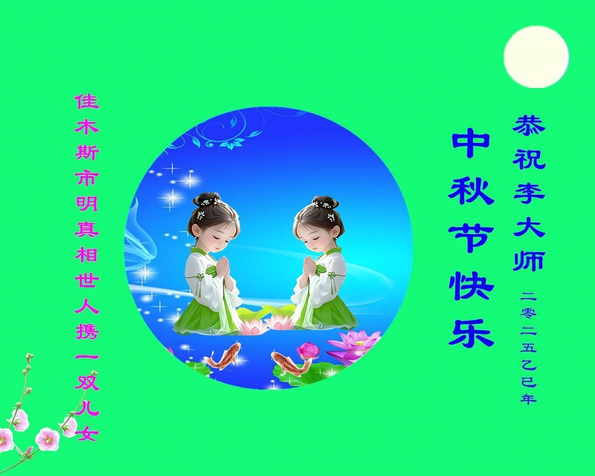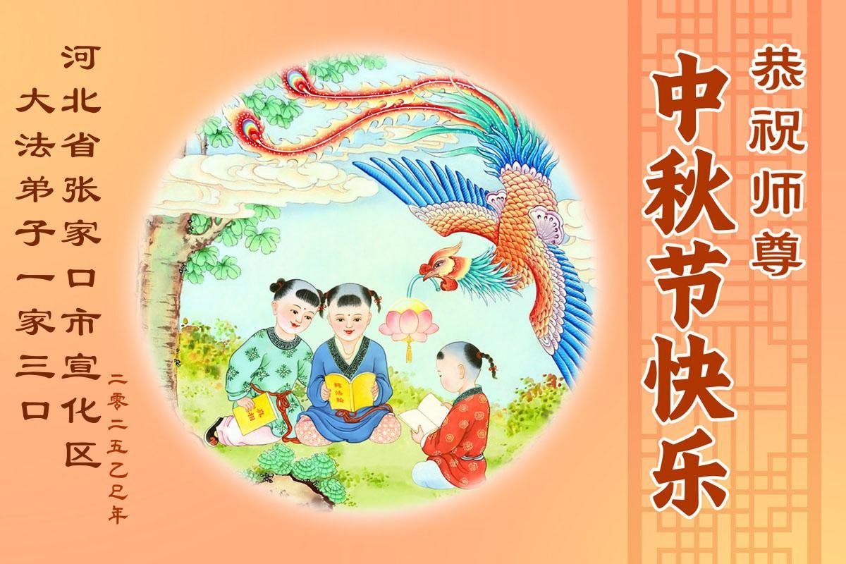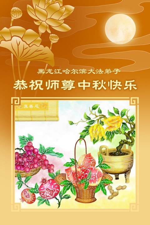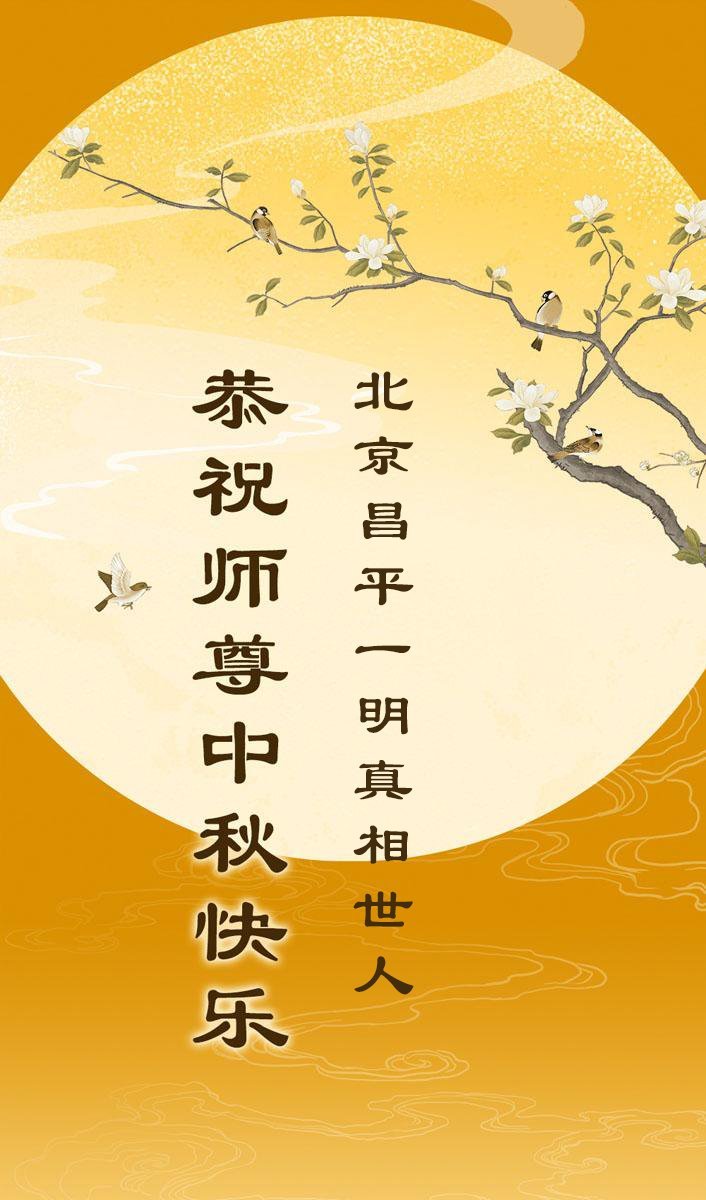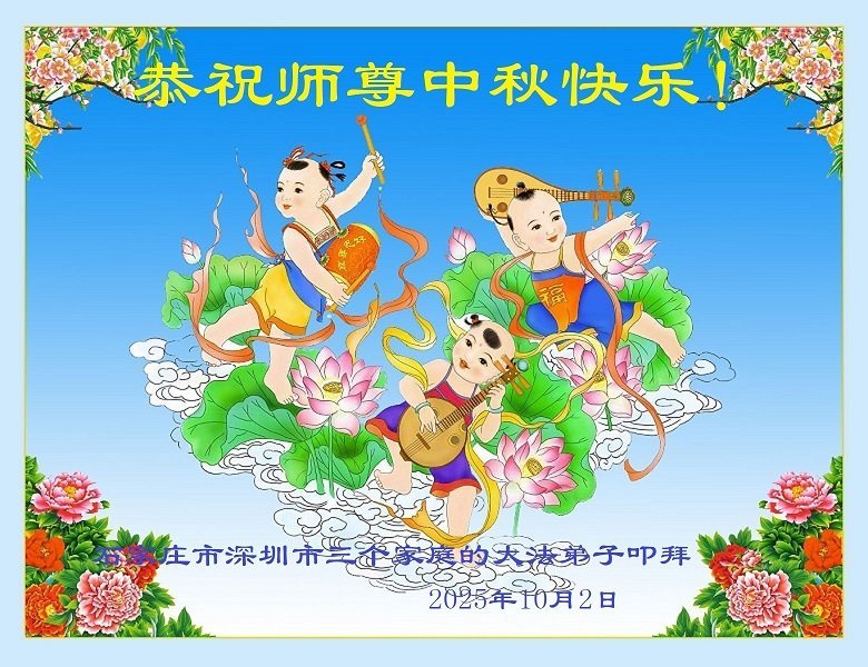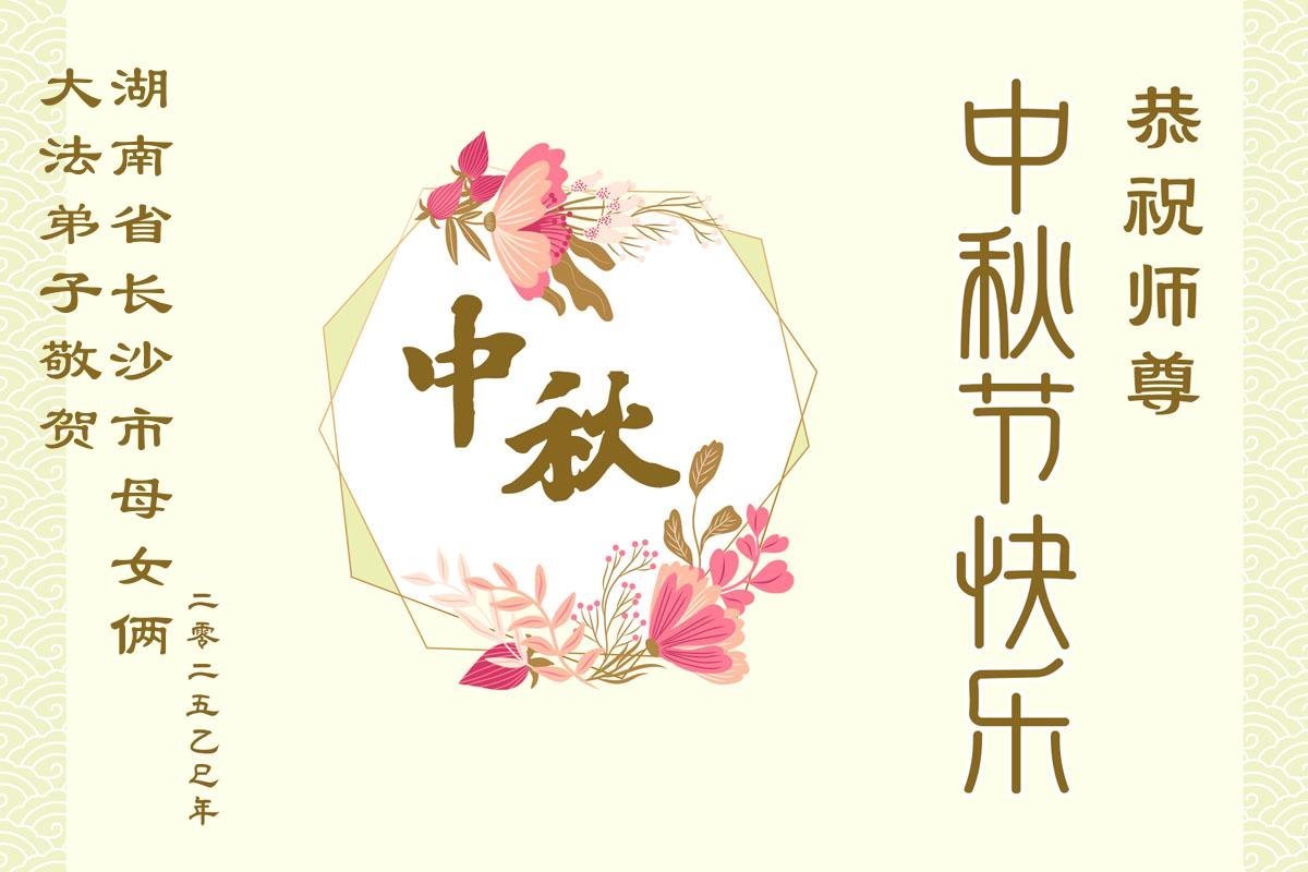 师父您好!我的家人们很早就明白了真相三退了,选择了美好的未来。在中秋佳节来临之际,全家衷心感恩大法师父,并祝愿大法师父中秋节快乐!