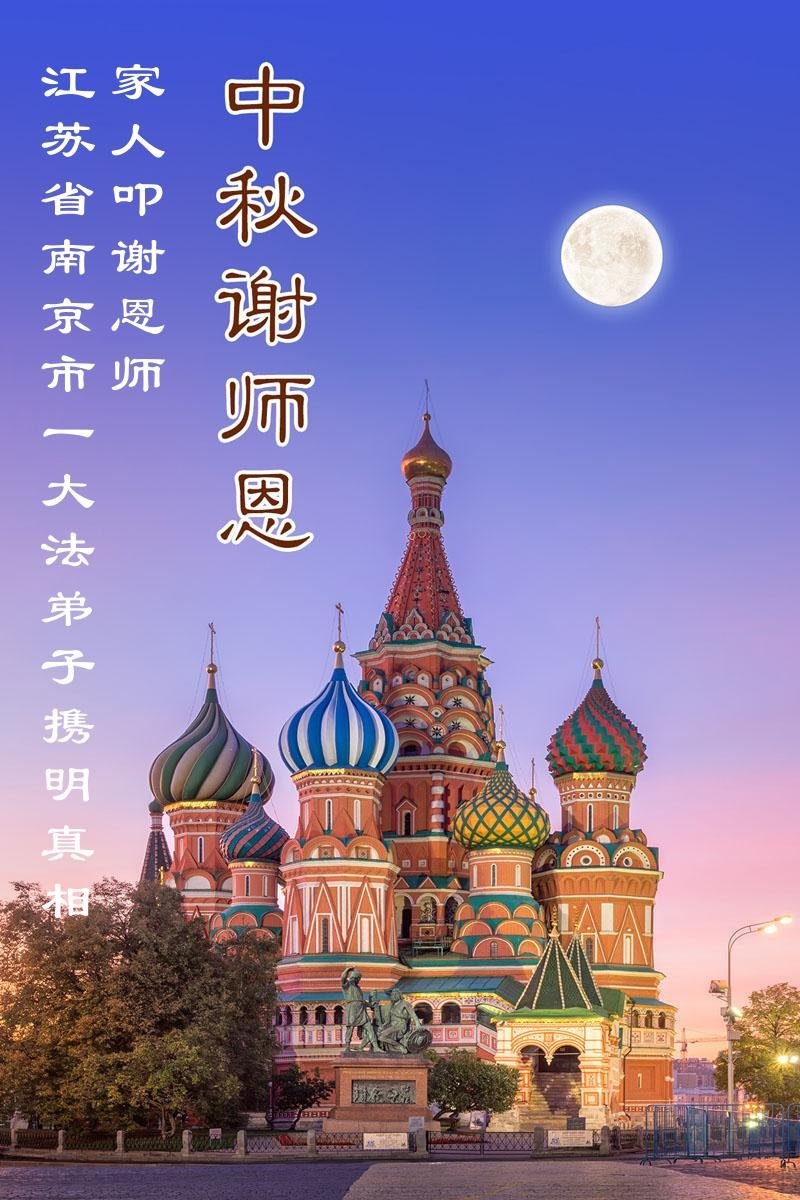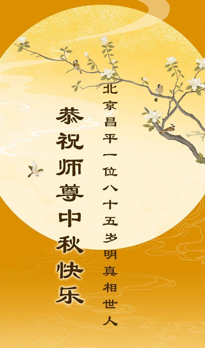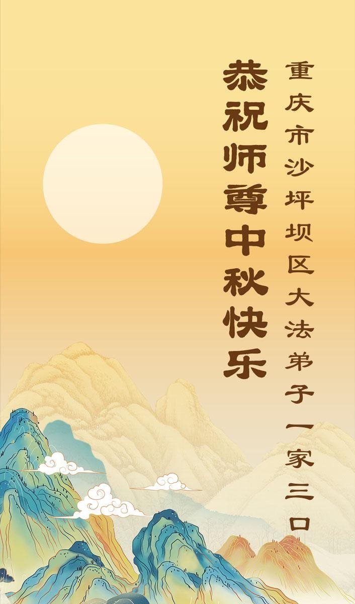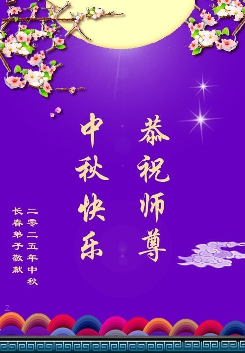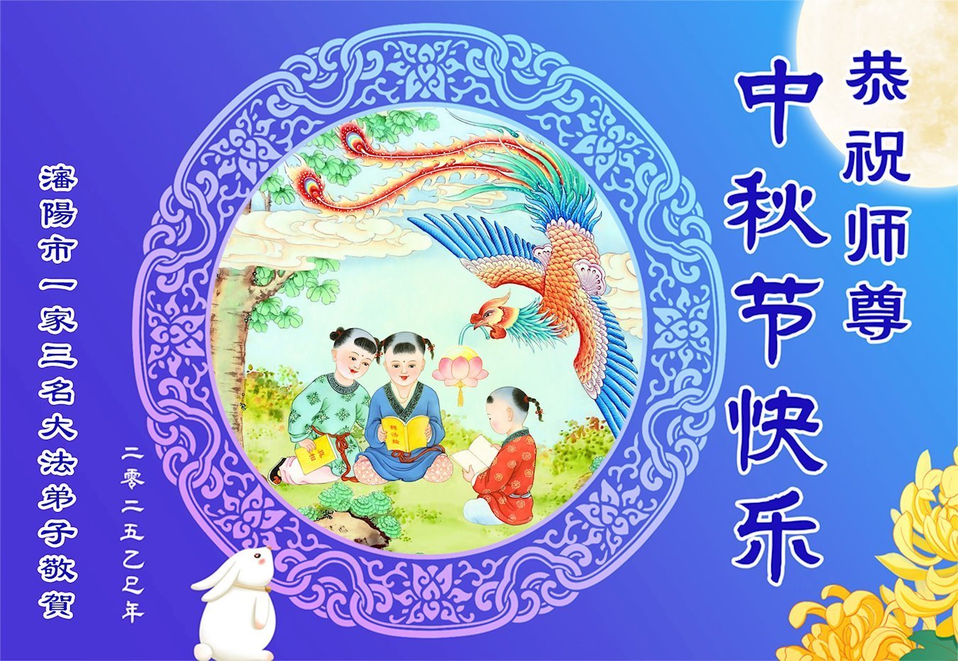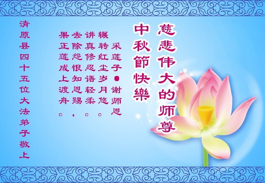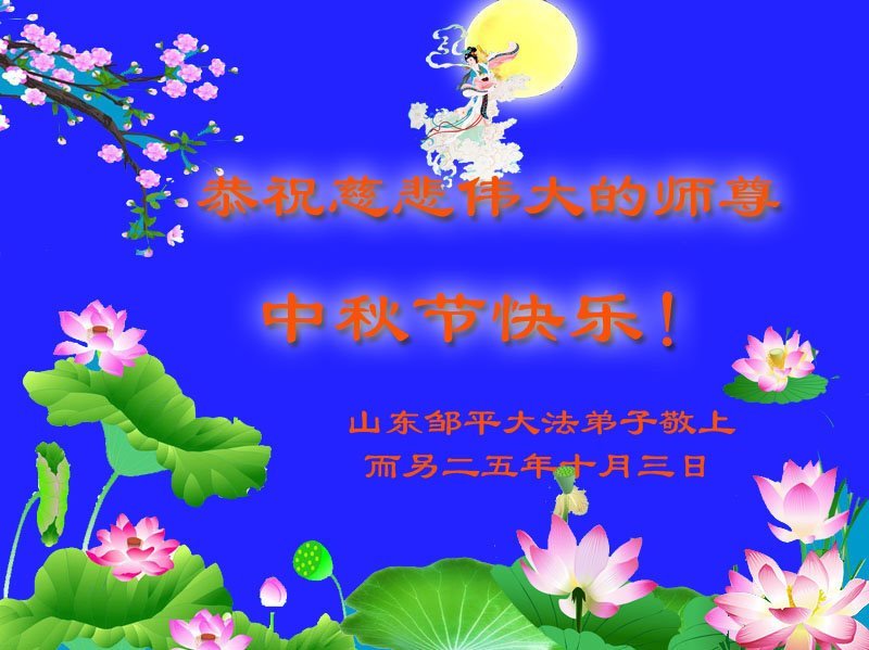 师父您好!我的家人们很早就明白了真相三退了,选择了美好的未来。在中秋佳节来临之际,全家衷心感恩大法师父,并祝愿大法师父中秋节快乐!