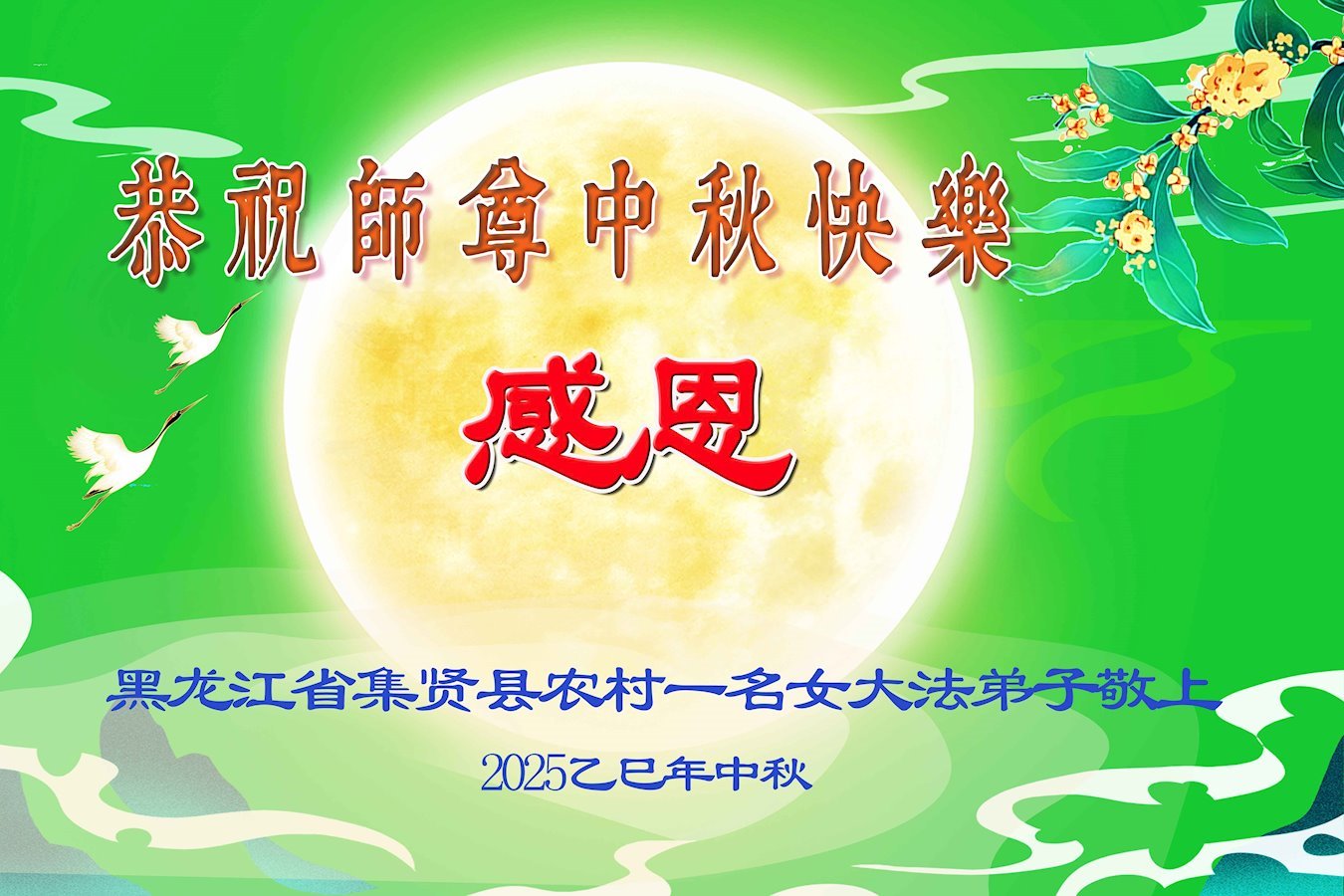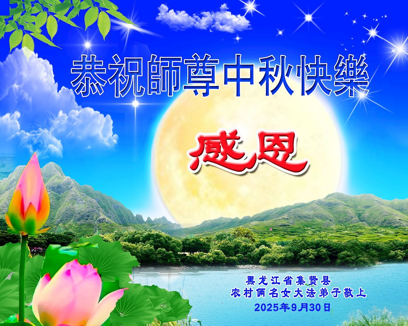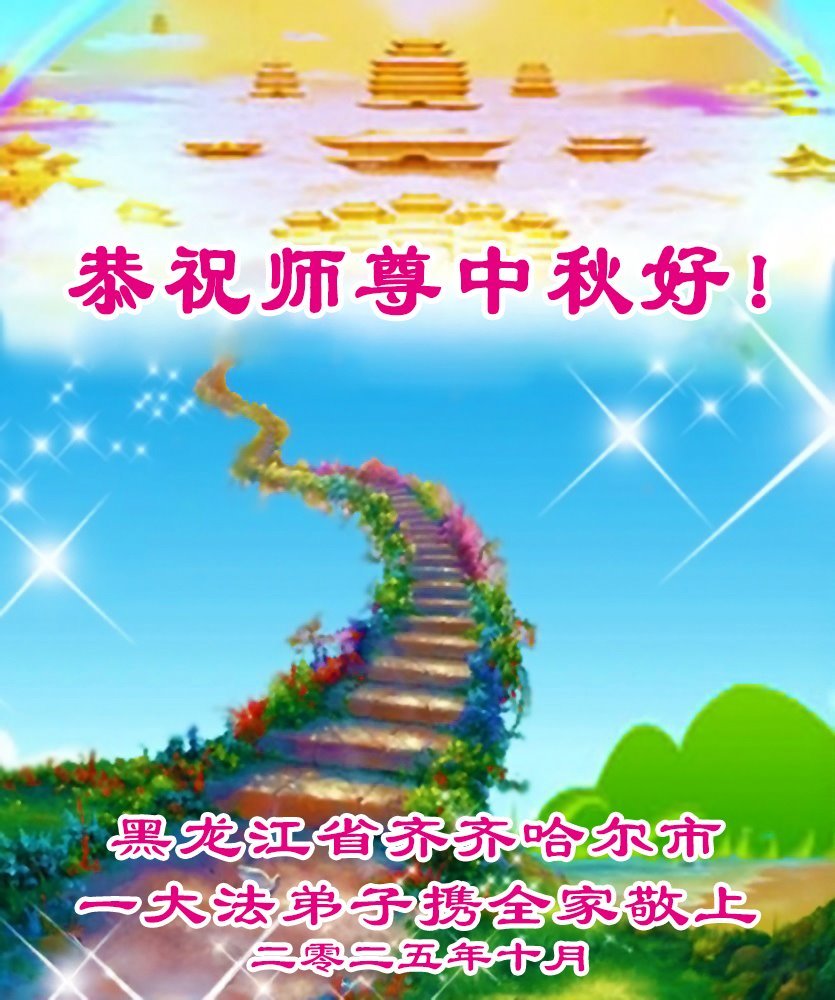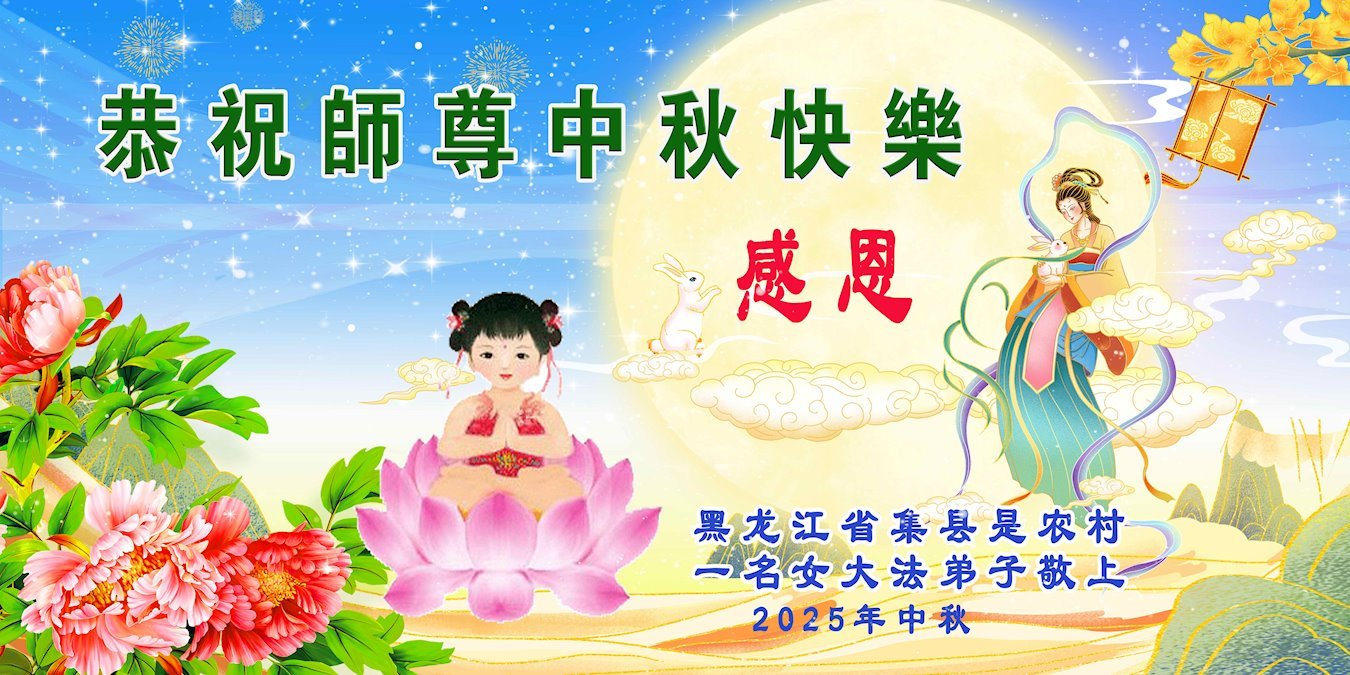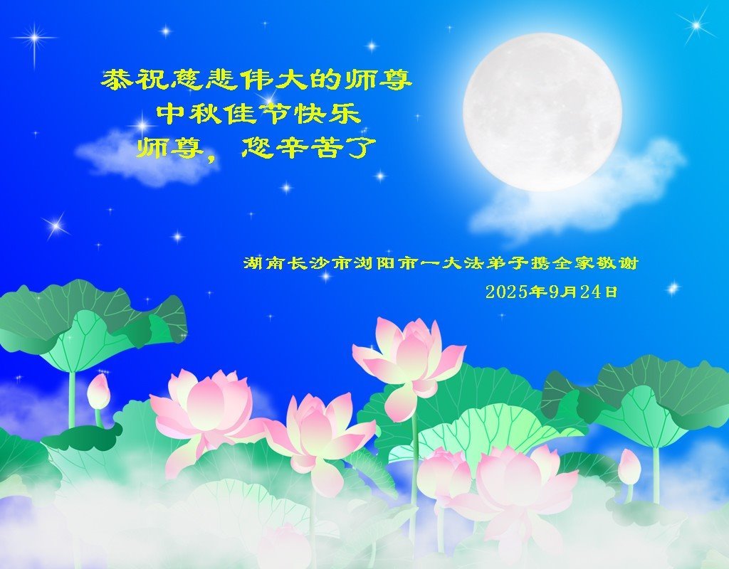 【明慧网二零二五年十月五日】(明慧网通讯员综合报道)海天一碧月儿圆,随师正法在人间。在这中秋佳节万家团圆的日子里,中国大陆各省市大法弟子们万分想念师父,感恩师父!感念师尊亲临世间传大法,赐予众生得救的万古机缘。不管未来的路是艰难还是平坦,弟子们都会义无反顾的紧随师尊,把阳光与希望洒向人间。