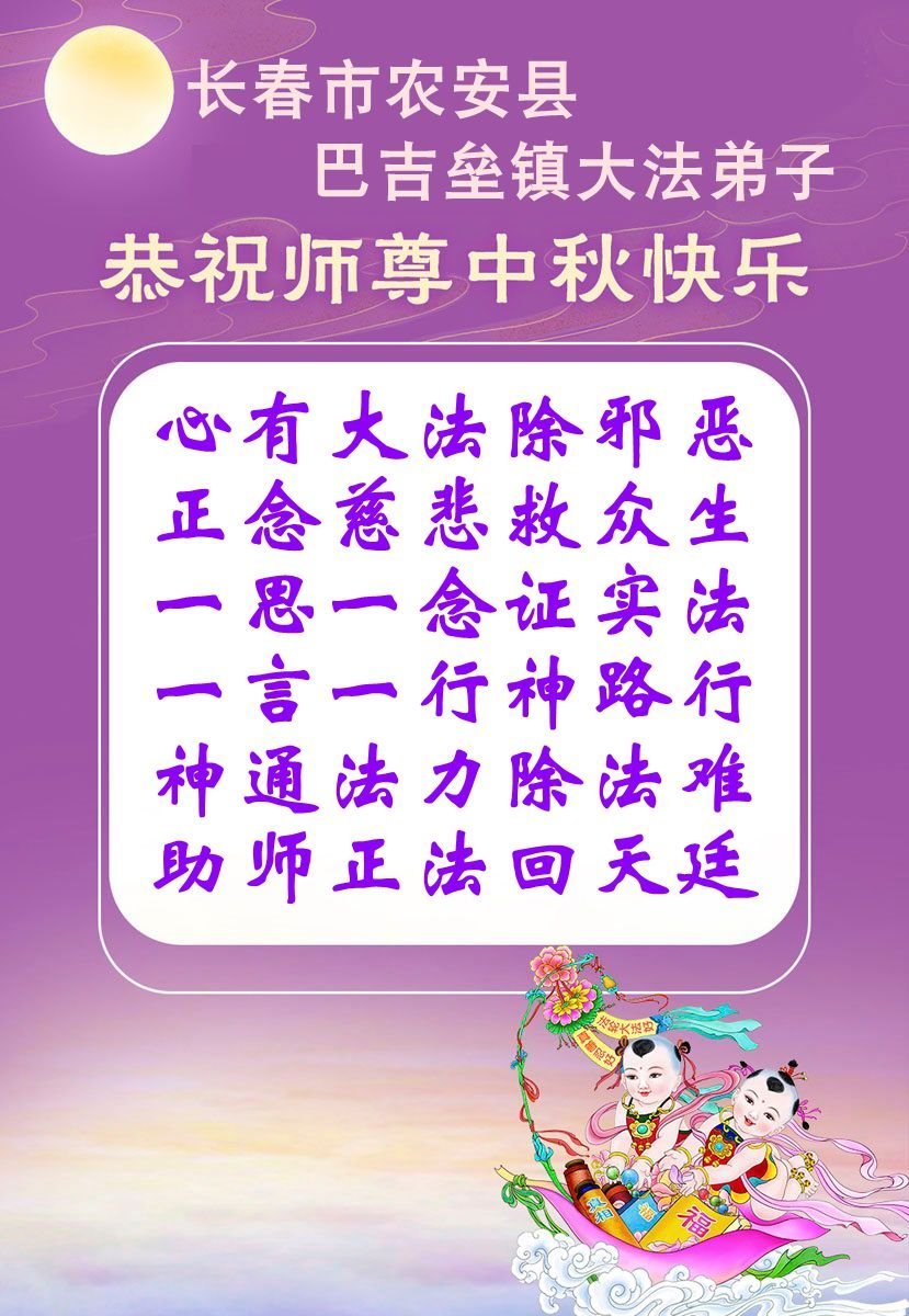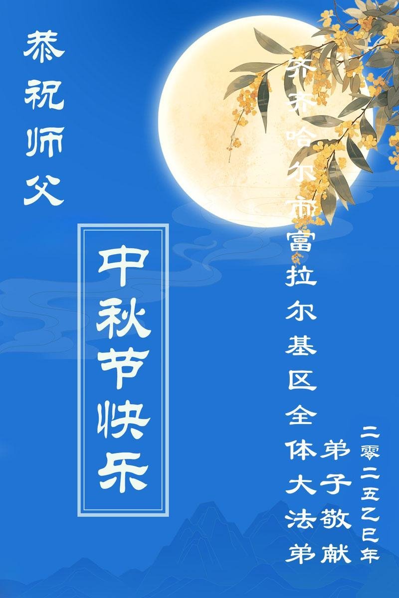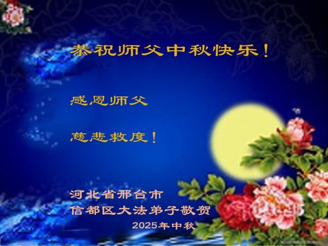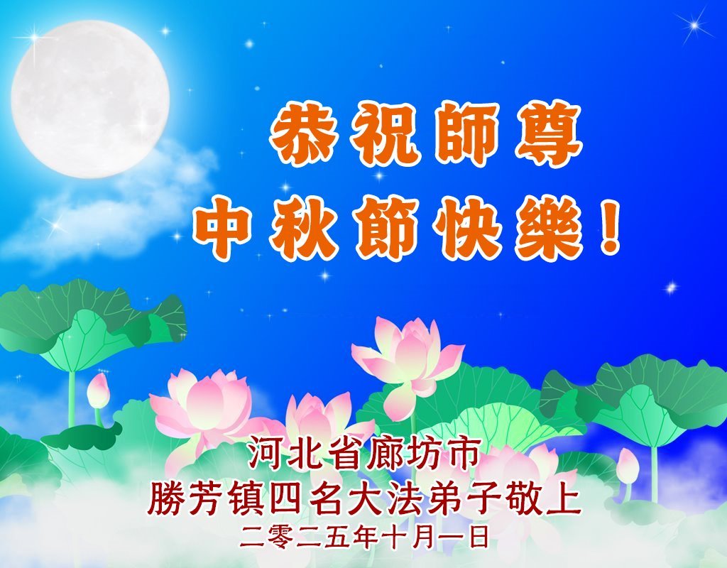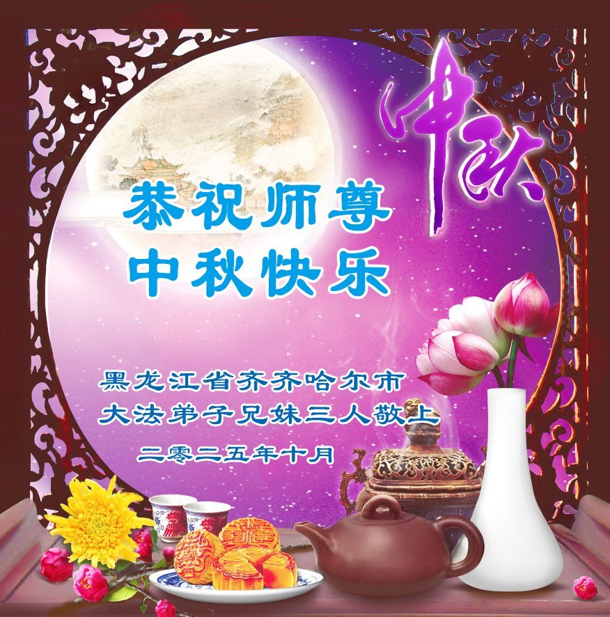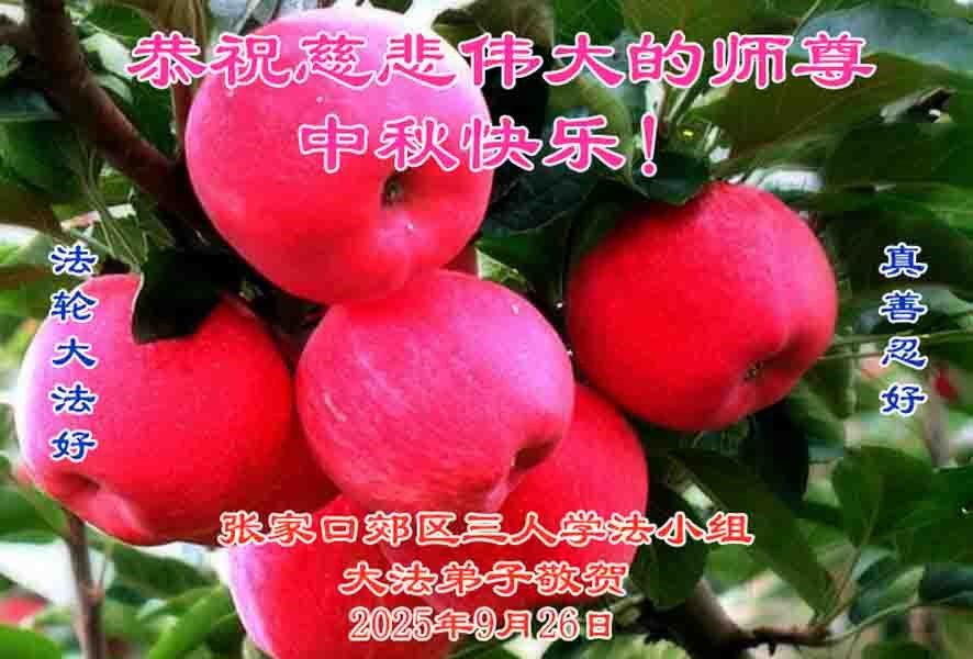 【明慧网二零二五年十月五日】(明慧网通讯员综合报道)海天一碧月儿圆,随师正法在人间。在这中秋佳节万家团圆的日子里,中国大陆各省市大法弟子们万分想念师父,感恩师父!感念师尊亲临世间传大法,赐予众生得救的万古机缘。不管未来的路是艰难还是平坦,弟子们都会义无反顾的紧随师尊,把阳光与希望洒向人间。