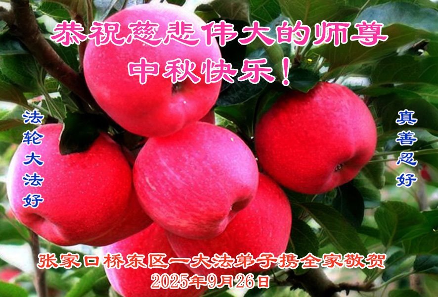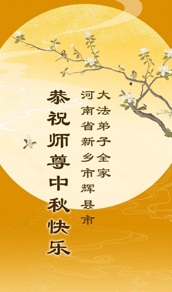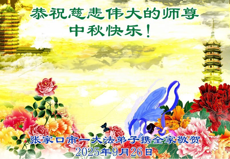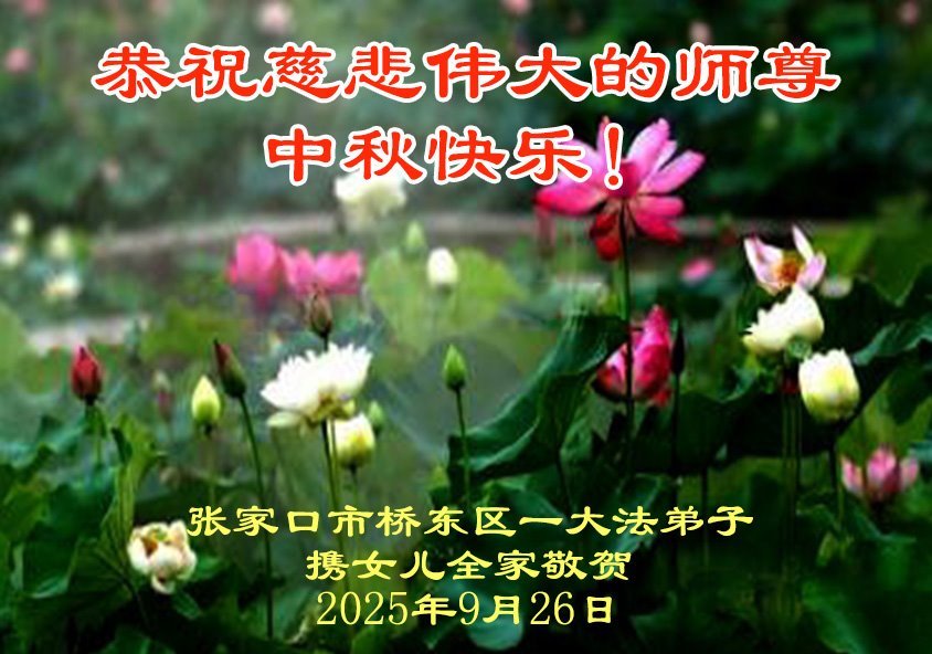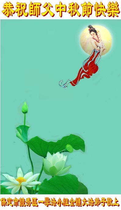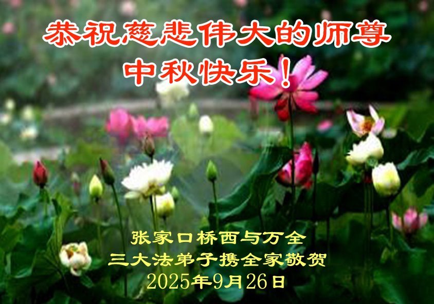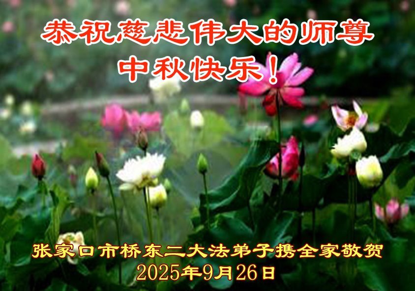 一年一度的中秋来临之际,弟子代全家感恩师尊的慈悲救度!是法轮大法改变了我,让我做一个更好的人。弟子用千言万语也表达不了对师尊的感恩,师父为弟子承受的太多太多,弟子无以回报,只有精進实修,多救人,以报师恩!