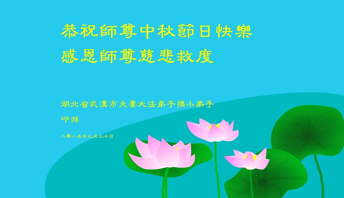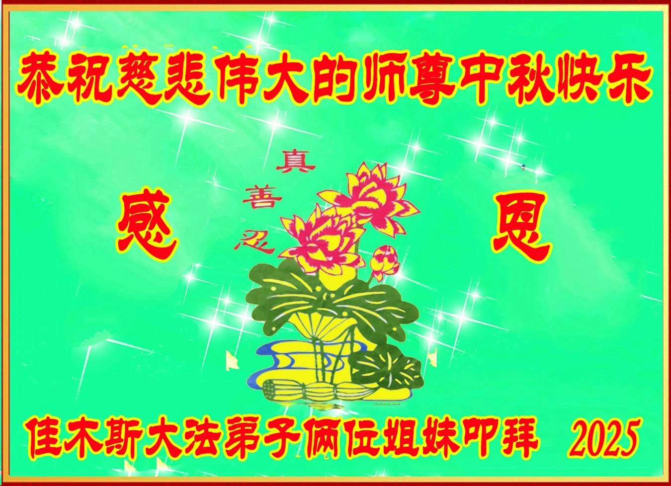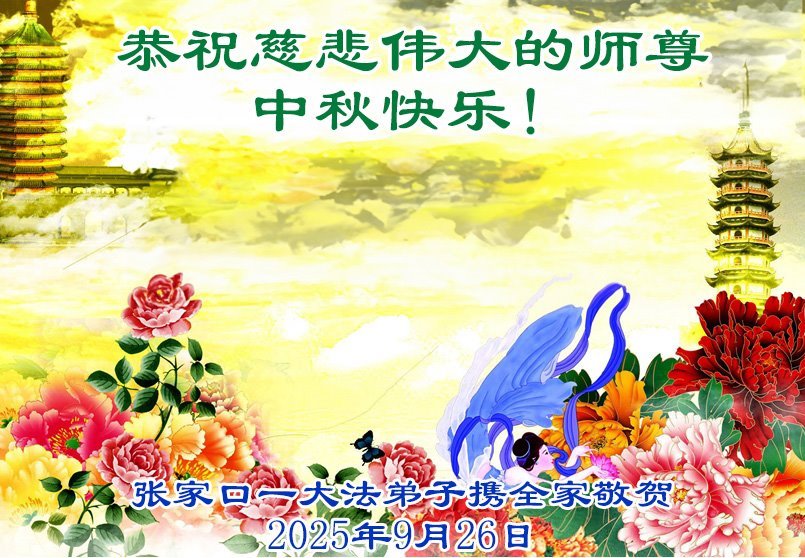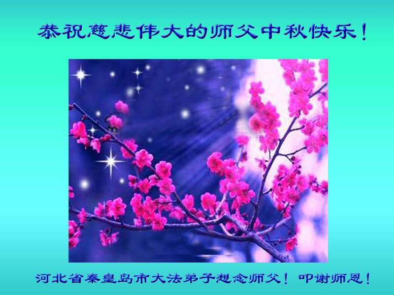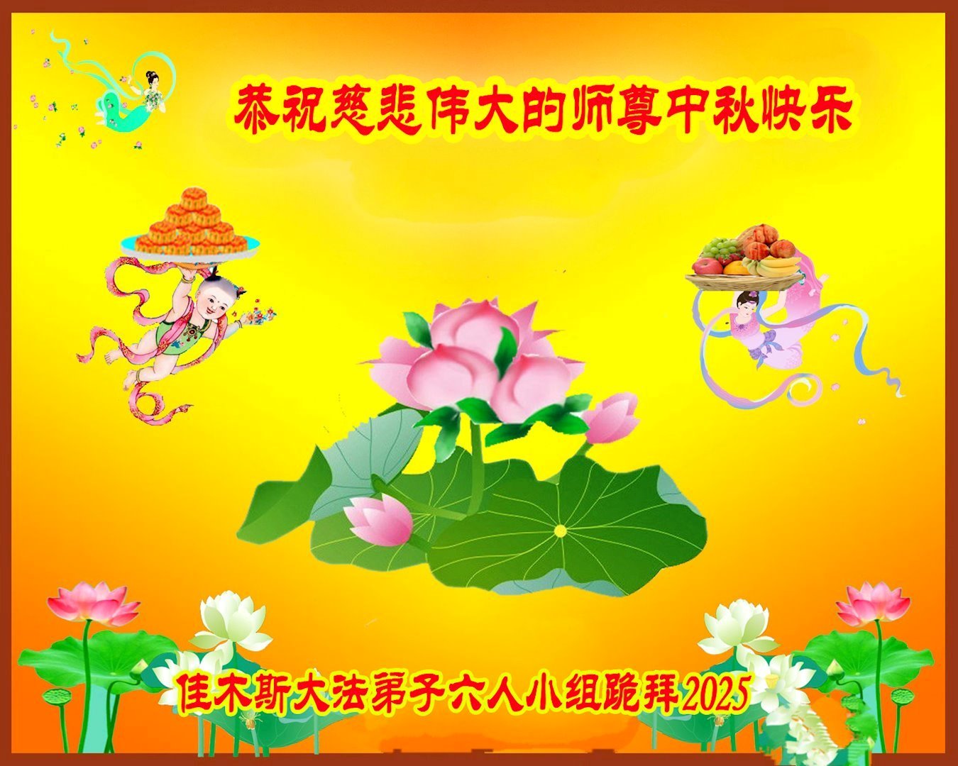 一年一度的中秋来临之际,弟子代全家感恩师尊的慈悲救度!是法轮大法改变了我,让我做一个更好的人。弟子用千言万语也表达不了对师尊的感恩,师父为弟子承受的太多太多,弟子无以回报,只有精進实修,多救人,以报师恩!
