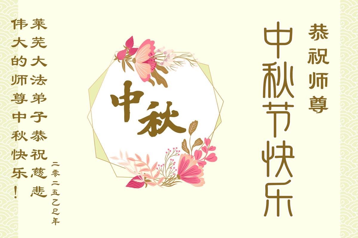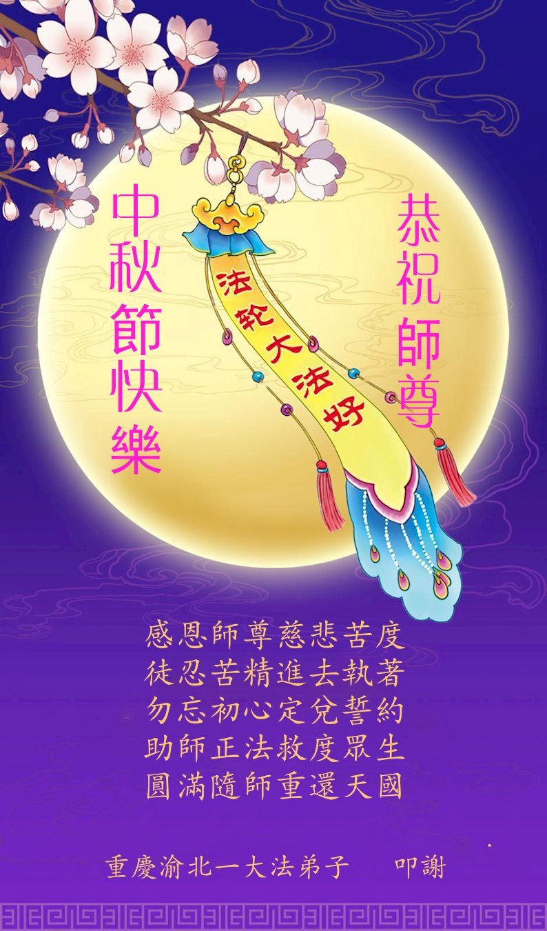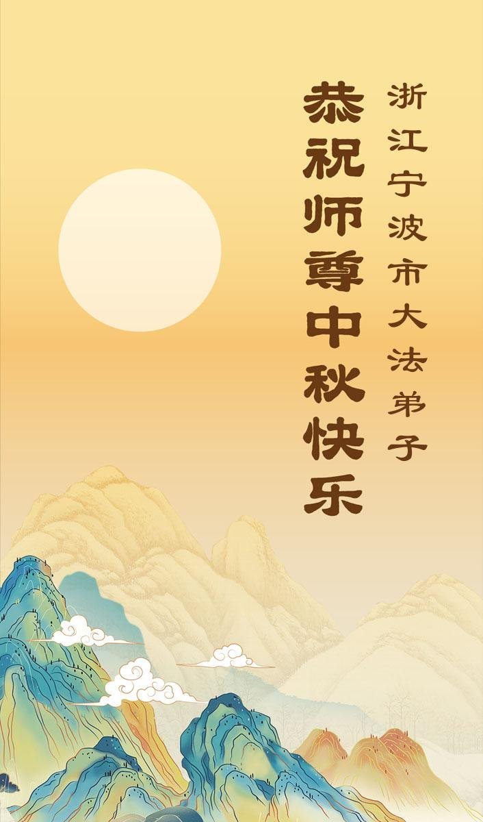 每逢佳节倍思亲!值此中秋佳节到来之际,我们宁波全体大法弟子将我们对师尊的思念与问候通过明慧转达,请师尊接受我们永恒的敬意与无尽的感恩!师恩浩荡!感恩师尊的慈悲救度!无论今后证实法与救度众生有多难多险,无论遇到多少意想不到的魔难与考验,弟子们都会坚修大法,同化真善忍,精進再精進,做好三件事,决不辜负师尊的慈悲苦度。