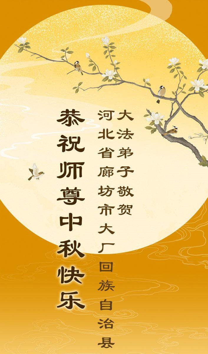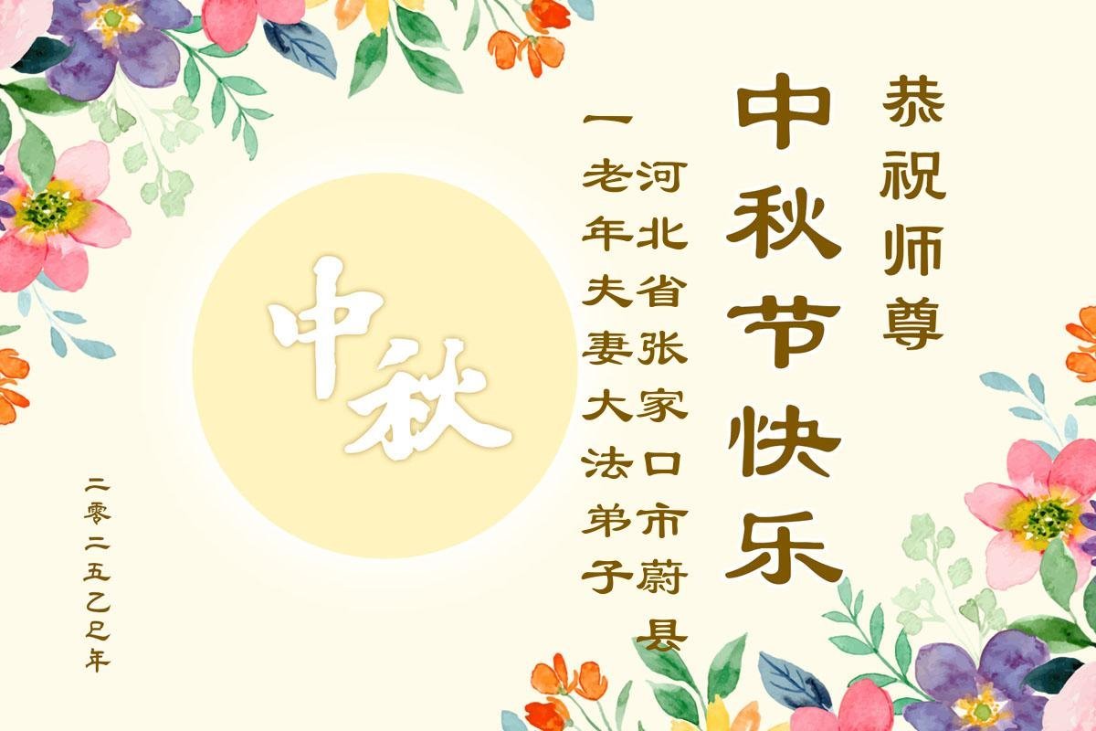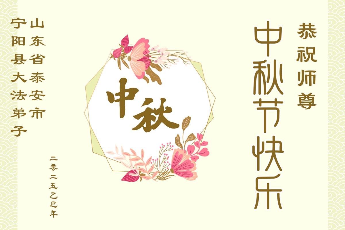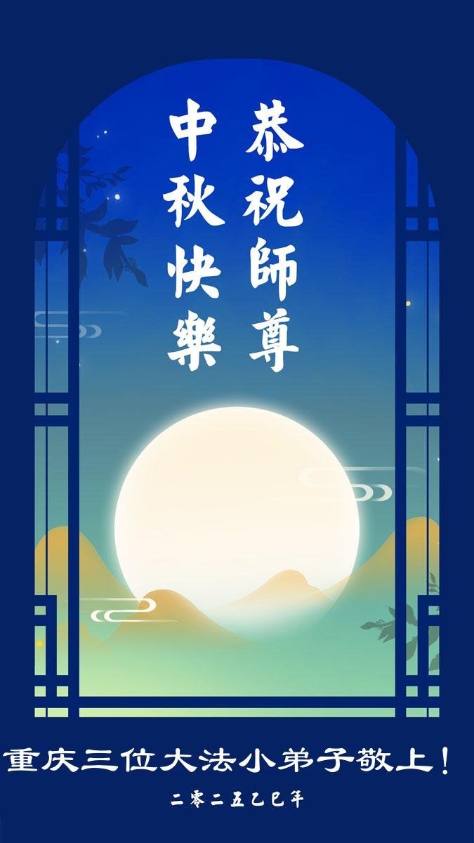 每逢佳节倍思亲!值此中秋佳节到来之际,我们宁波全体大法弟子将我们对师尊的思念与问候通过明慧转达,请师尊接受我们永恒的敬意与无尽的感恩!师恩浩荡!感恩师尊的慈悲救度!无论今后证实法与救度众生有多难多险,无论遇到多少意想不到的魔难与考验,弟子们都会坚修大法,同化真善忍,精進再精進,做好三件事,决不辜负师尊的慈悲苦度。
