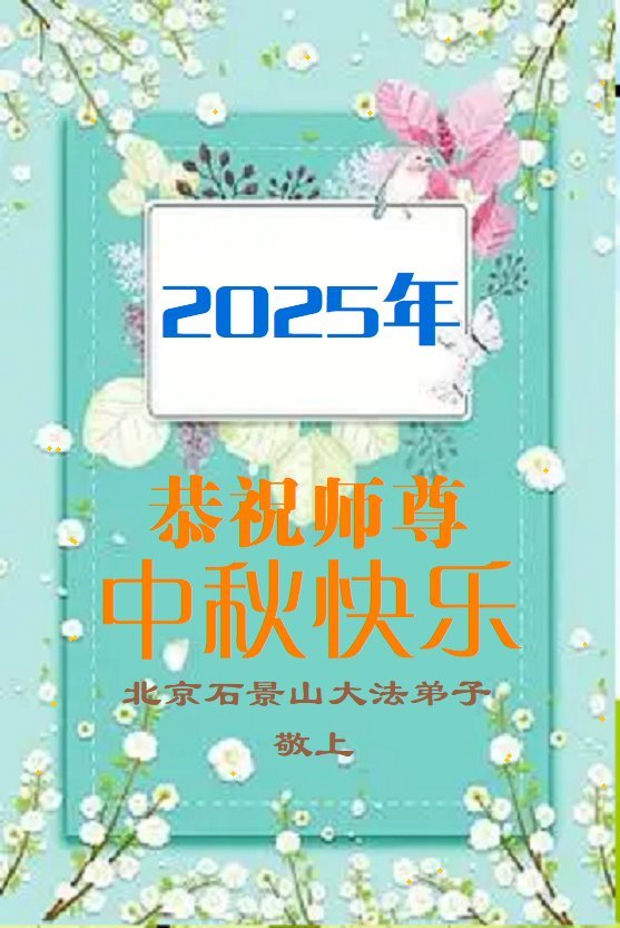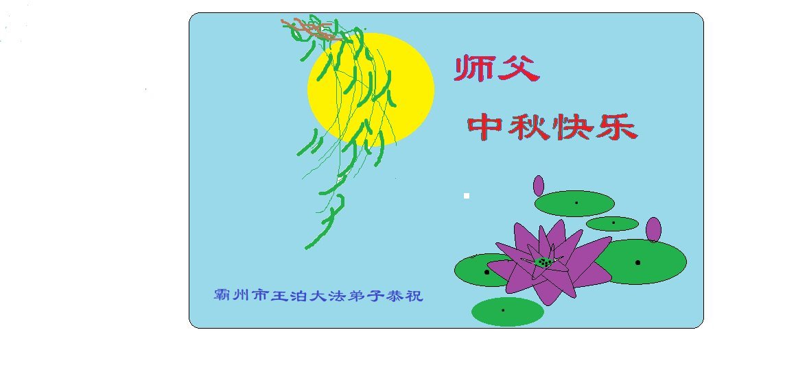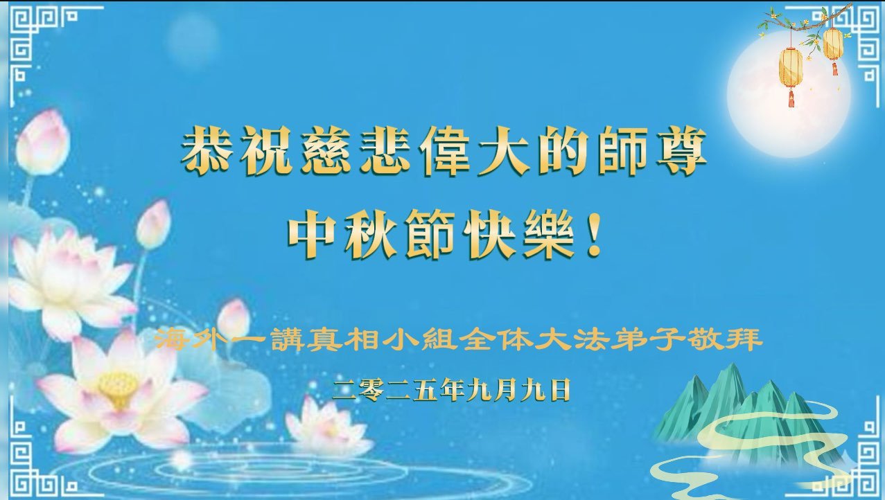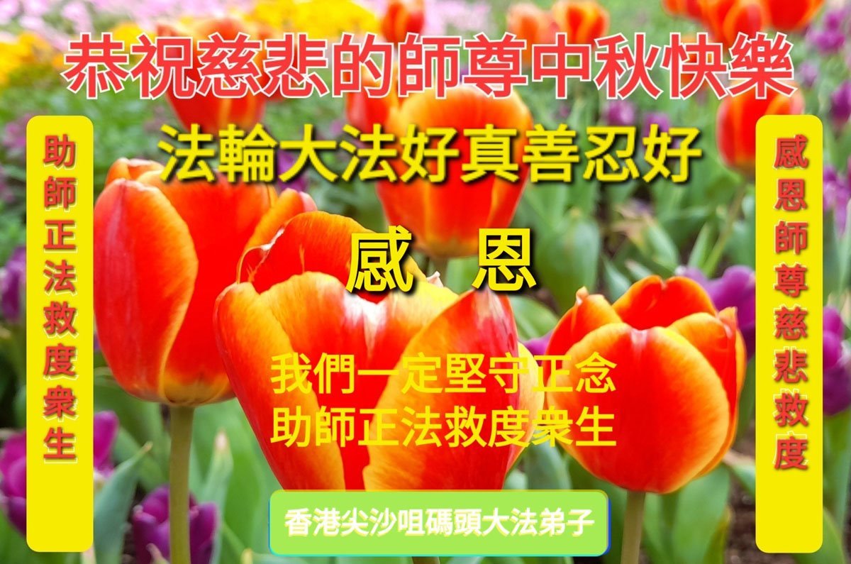 恭祝师尊中秋节快乐!法轮大法好,真善忍好!弟子要牢记师父教诲。大法弟子无论走到哪里就把真相传到哪里!助师救度更多的世人!永远感恩师父慈悲救度!
