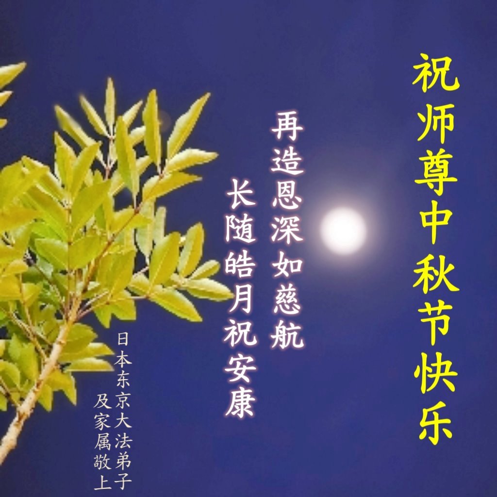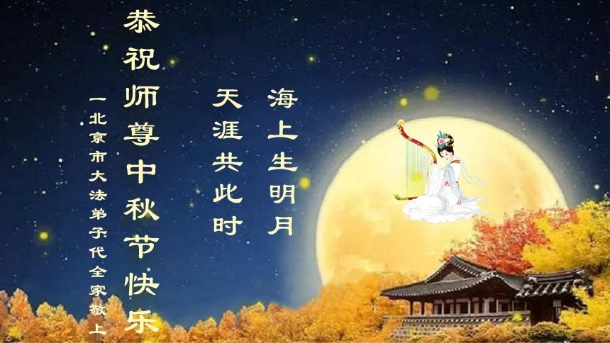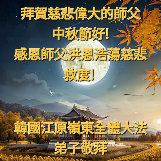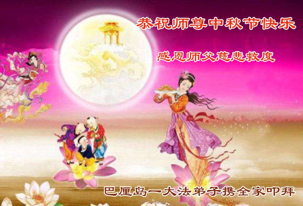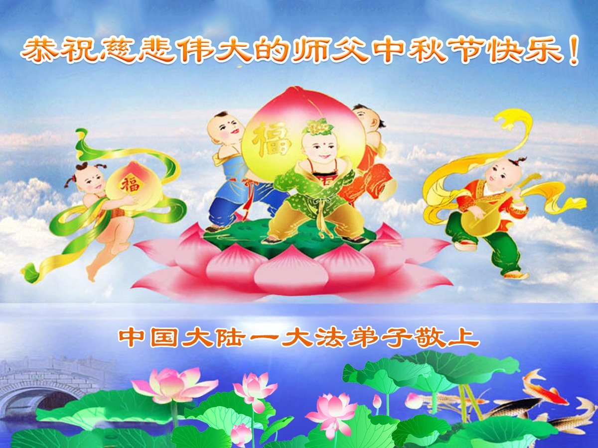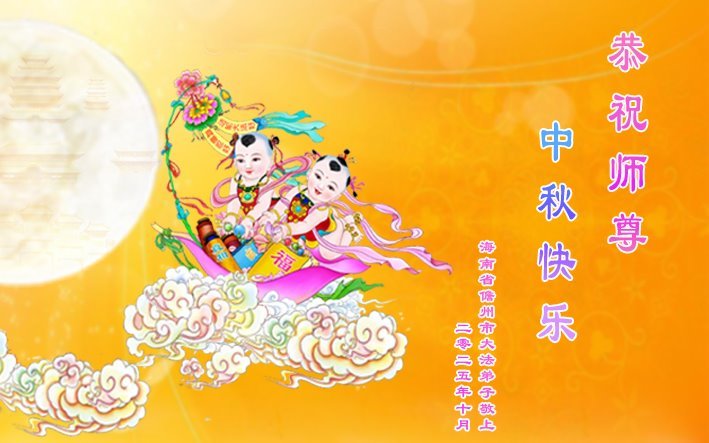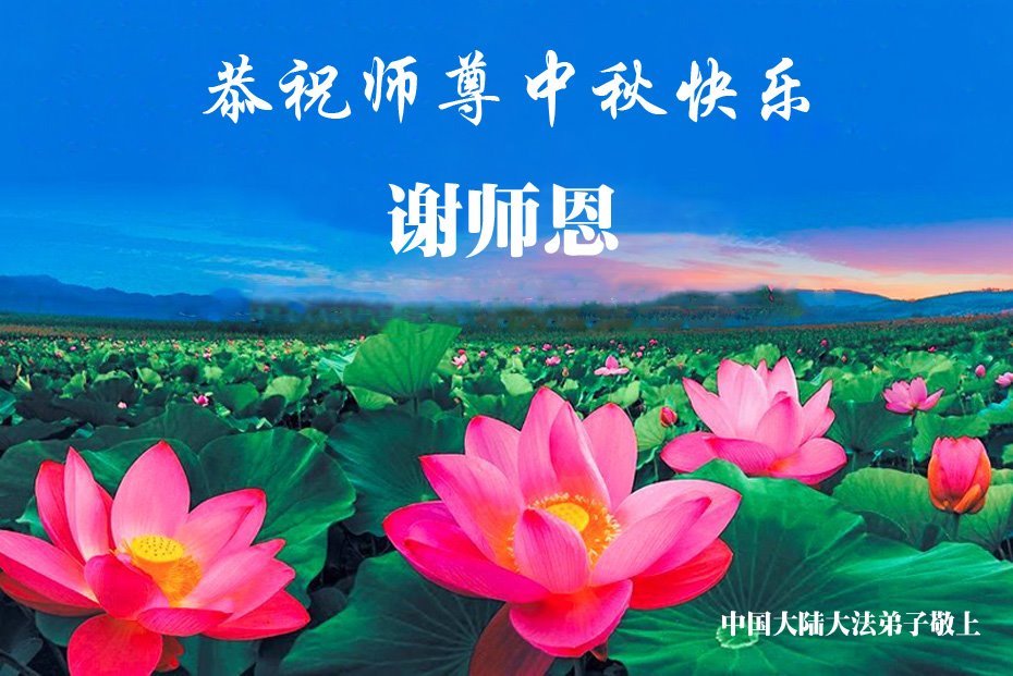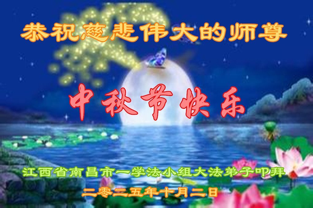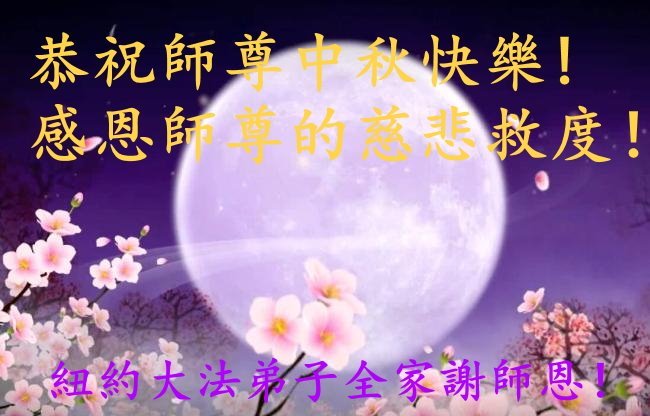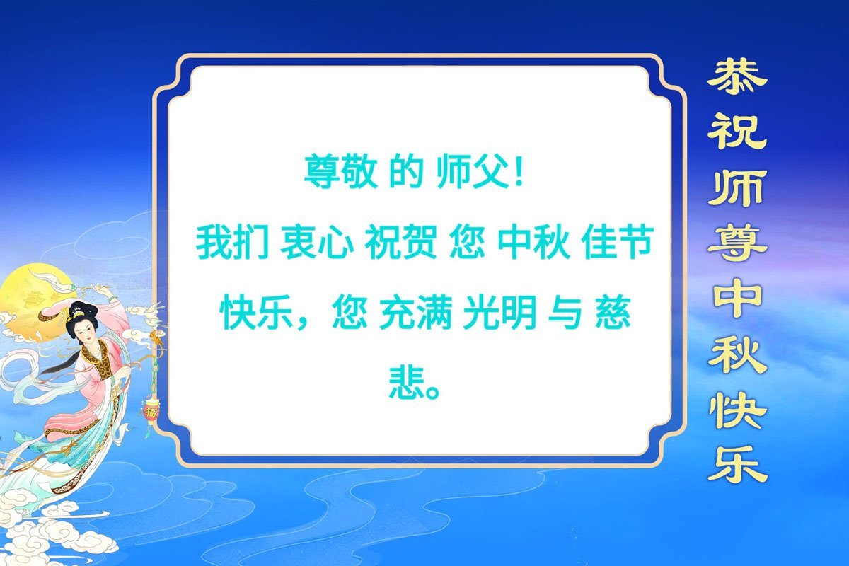恭祝慈悲伟大的师父中秋节快乐!祝愿全体大法弟子在修炼中坚守誓言,助师救度众生,随师父一起回归真正的家园。(译文)