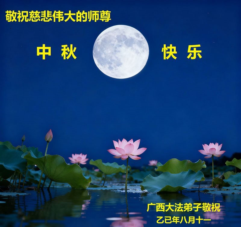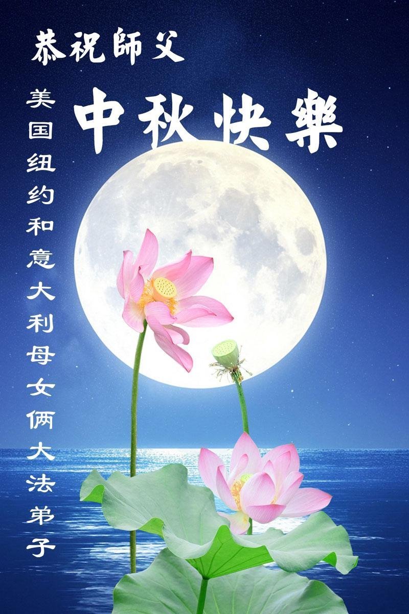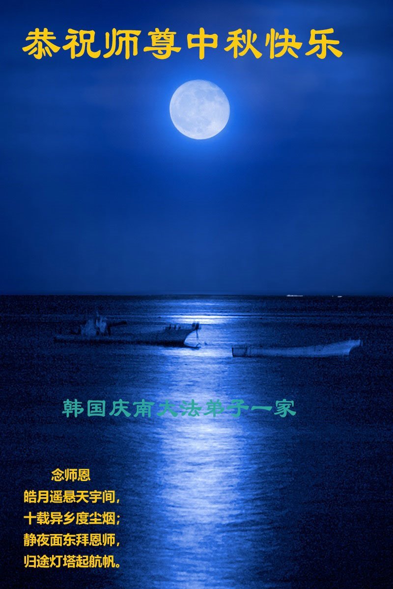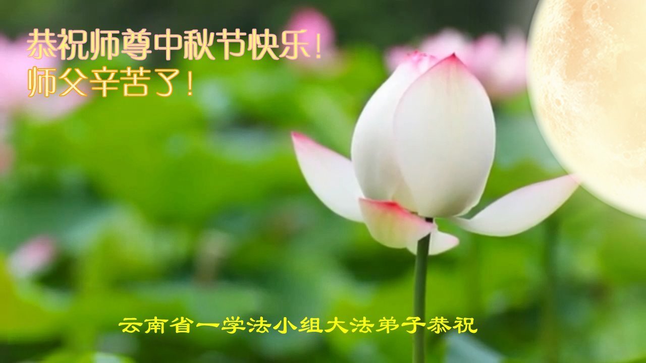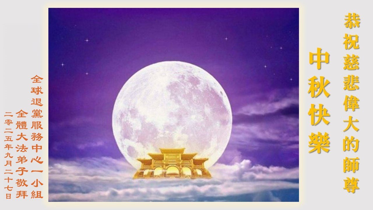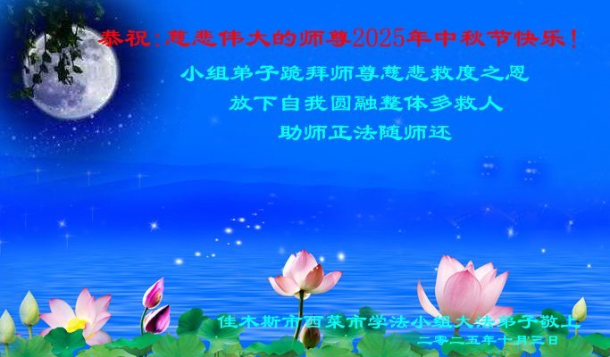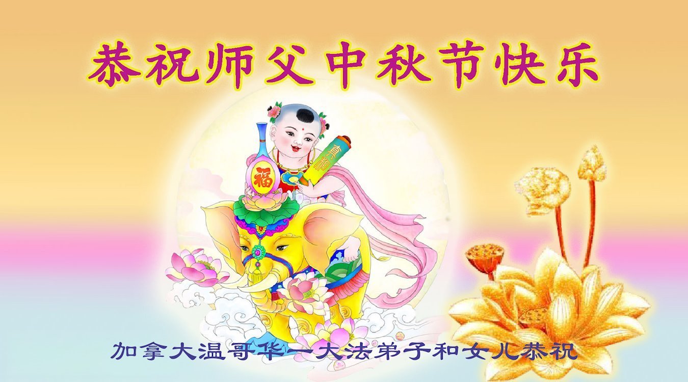 恭祝慈悲伟大的师父中秋节快乐!祝愿全体大法弟子在修炼中坚守誓言,助师救度众生,随师父一起回归真正的家园。(译文)