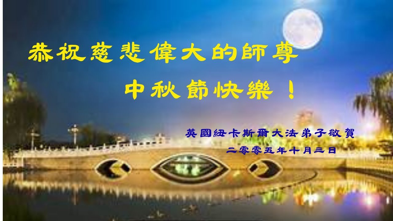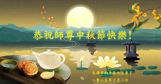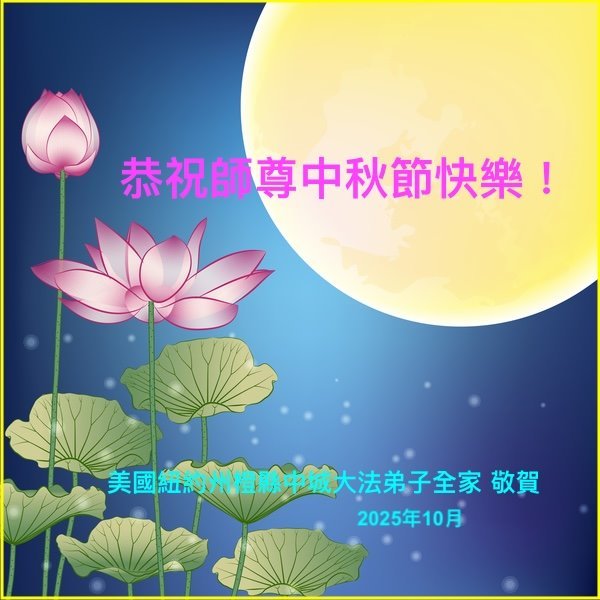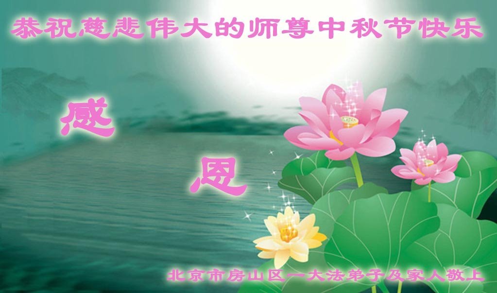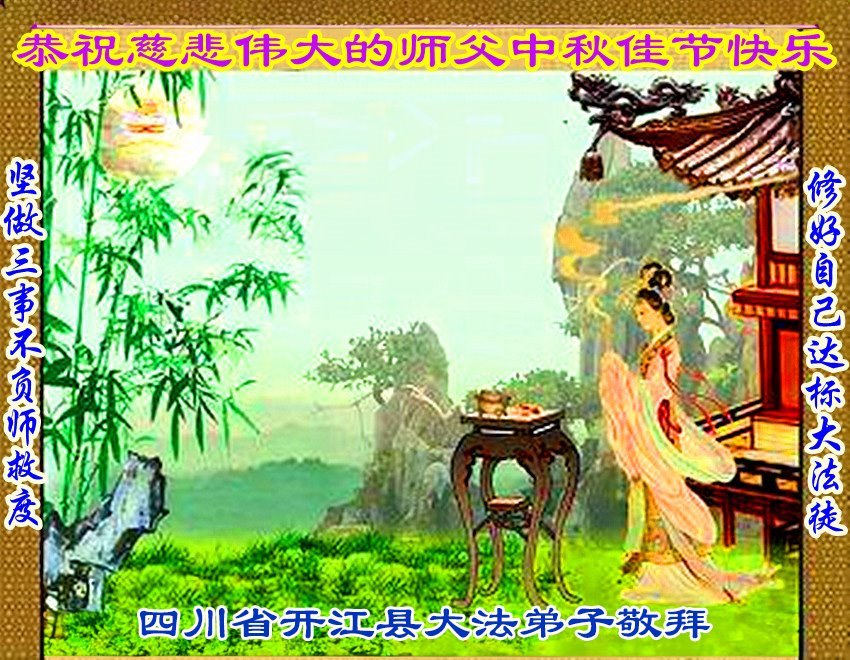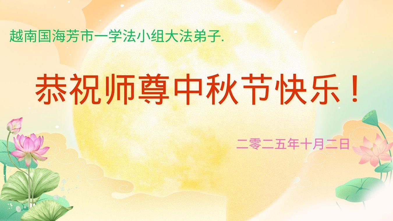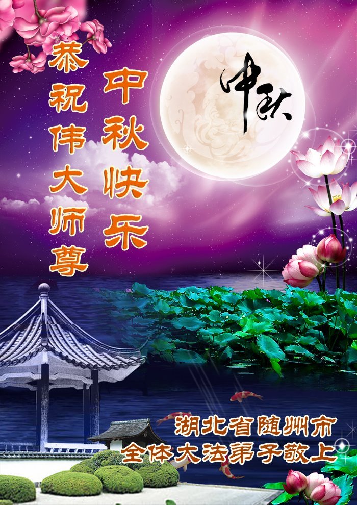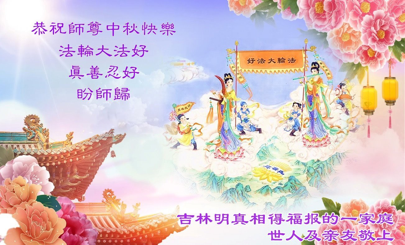 恭祝慈悲伟大的师父中秋节快乐!祝愿全体大法弟子在修炼中坚守誓言,助师救度众生,随师父一起回归真正的家园。(译文)