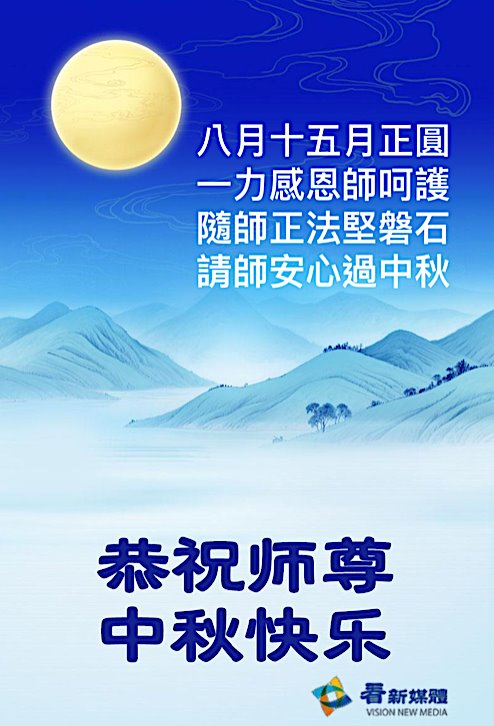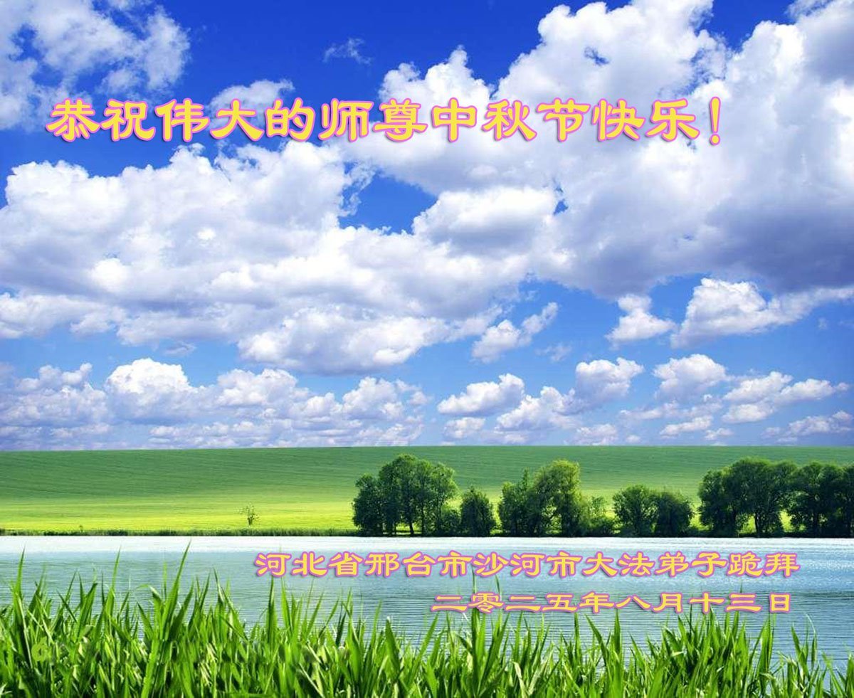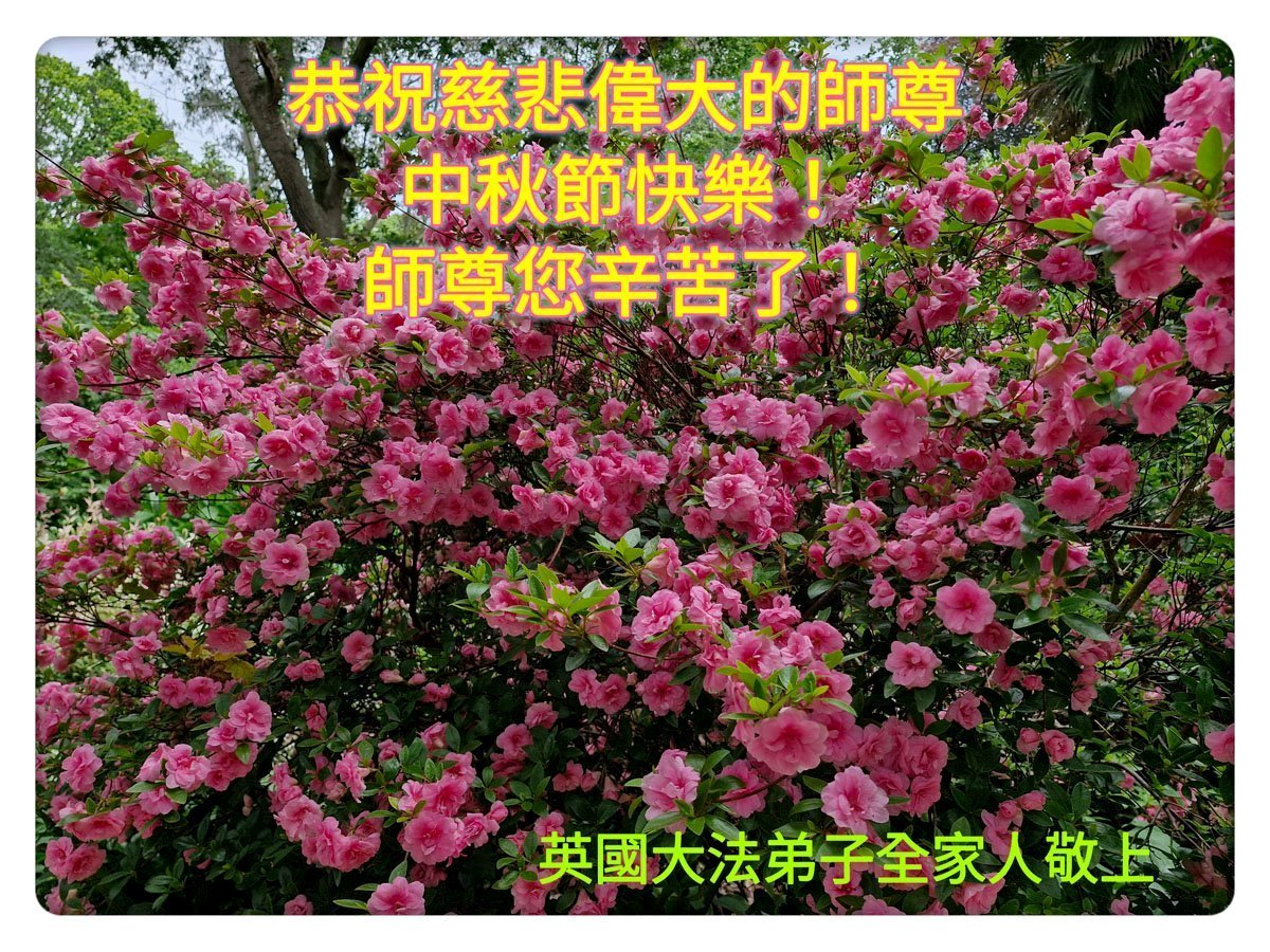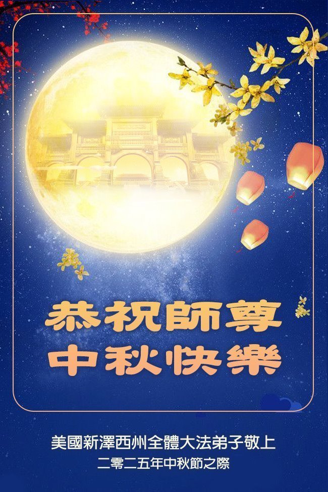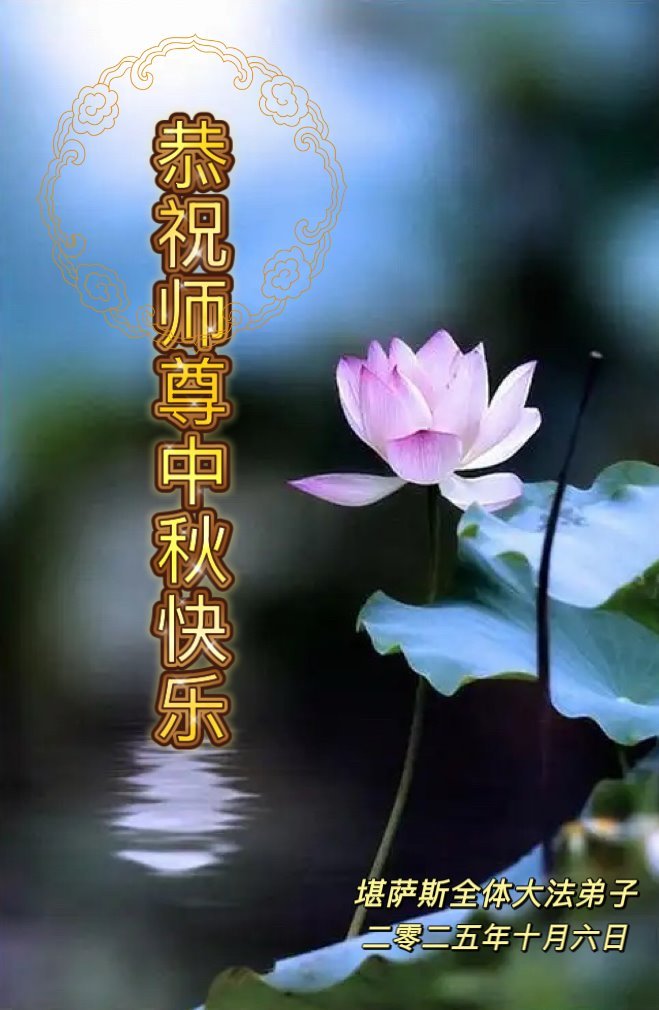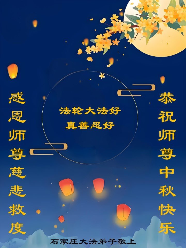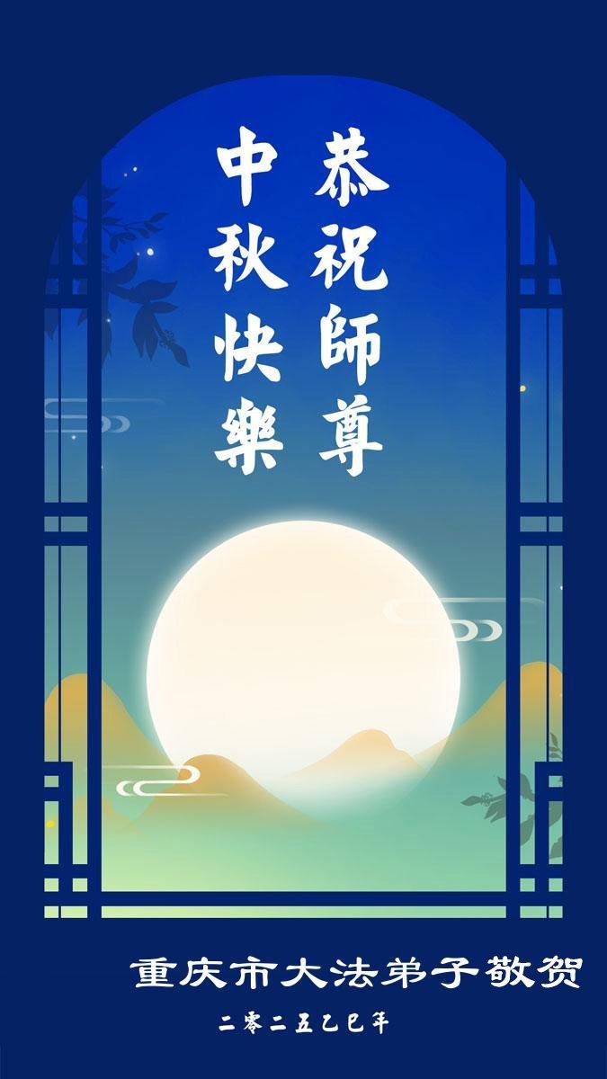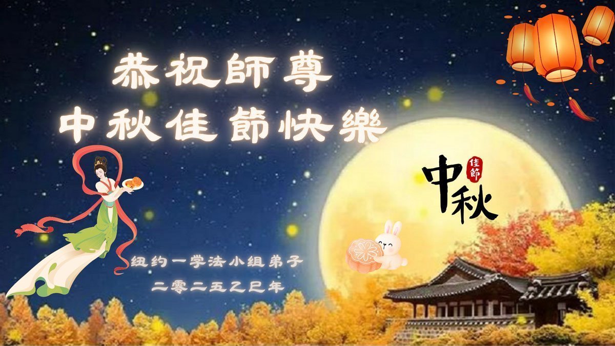 恭祝慈悲伟大的师父中秋节快乐!祝愿全体大法弟子在修炼中坚守誓言,助师救度众生,随师父一起回归真正的家园。(译文)