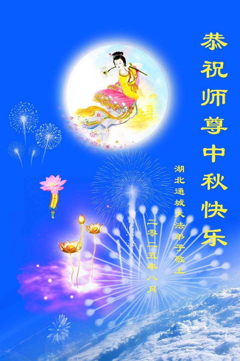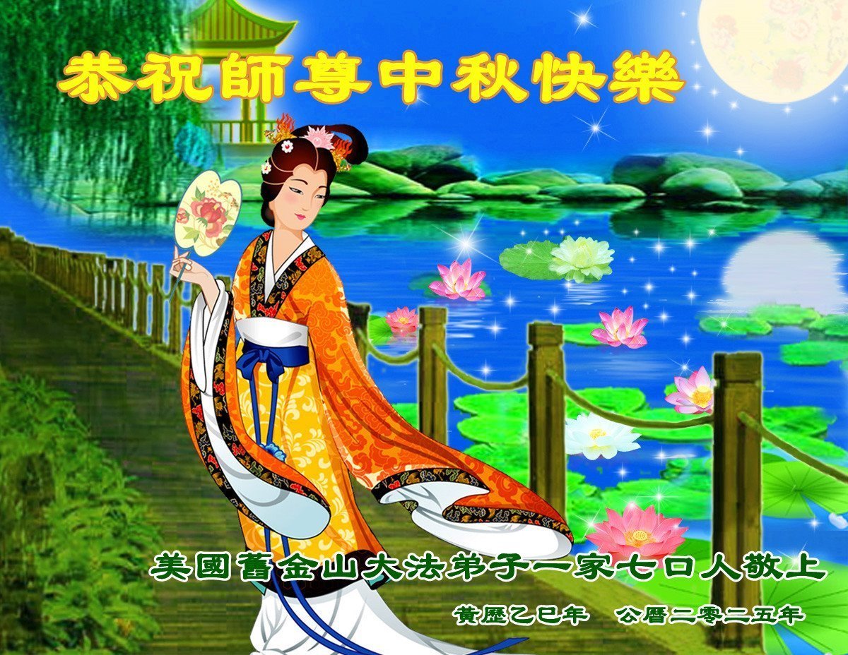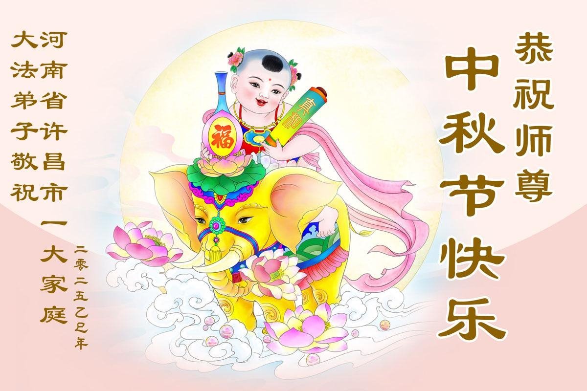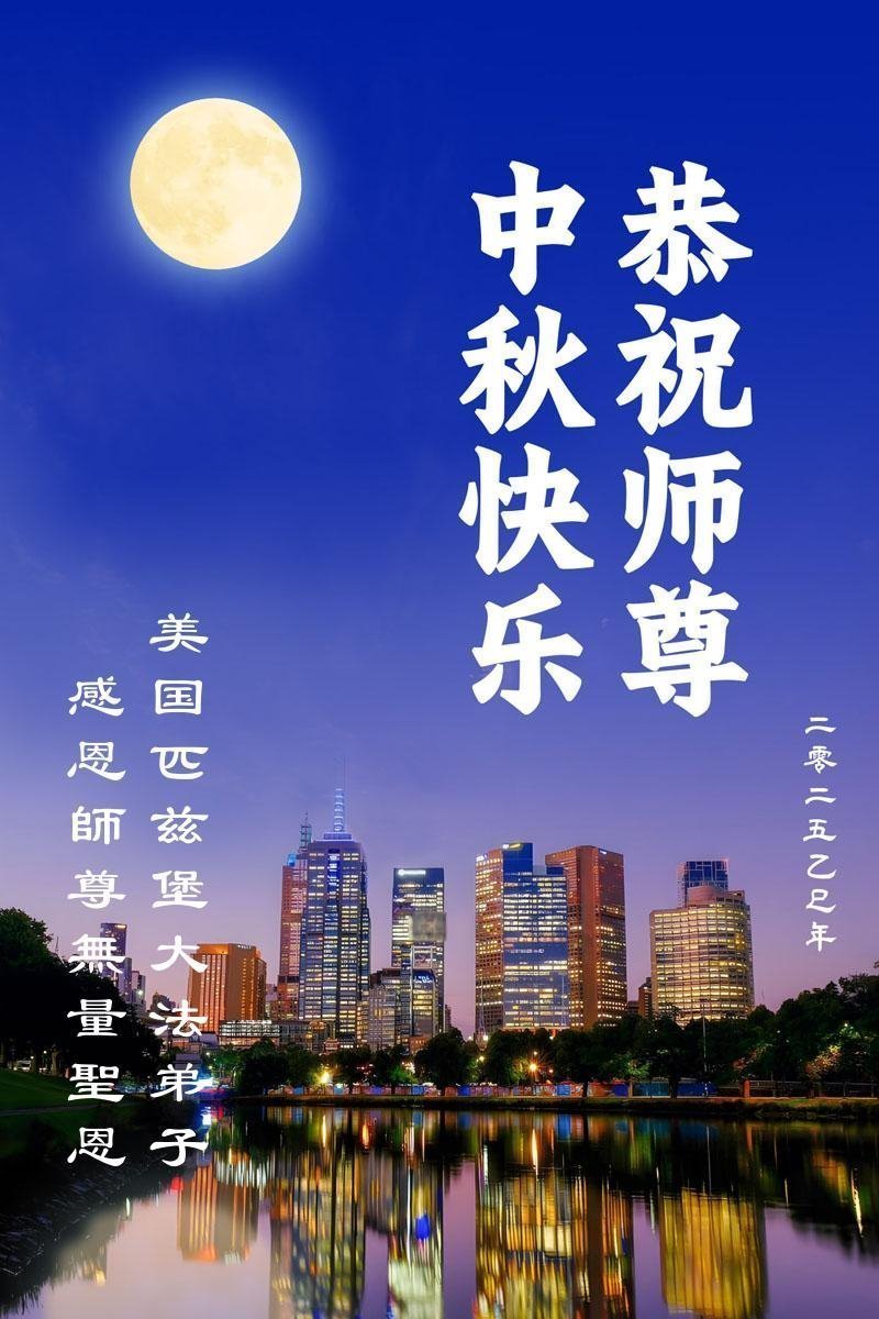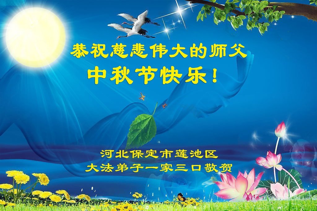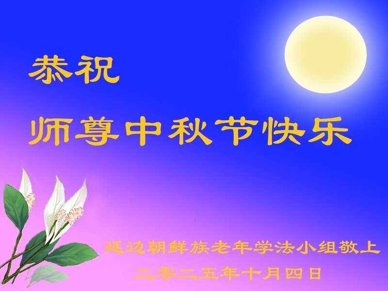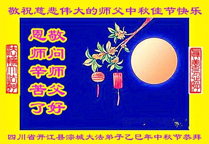 恭祝慈悲伟大的师父中秋节快乐!祝愿全体大法弟子在修炼中坚守誓言,助师救度众生,随师父一起回归真正的家园。(译文)