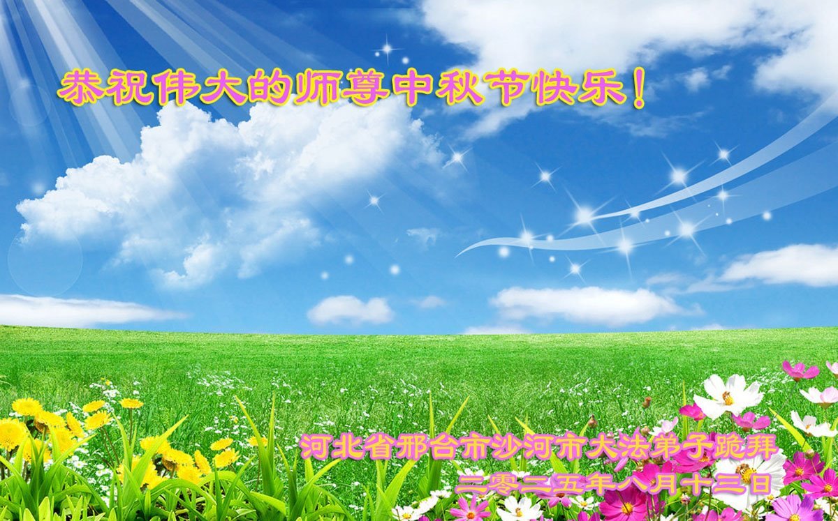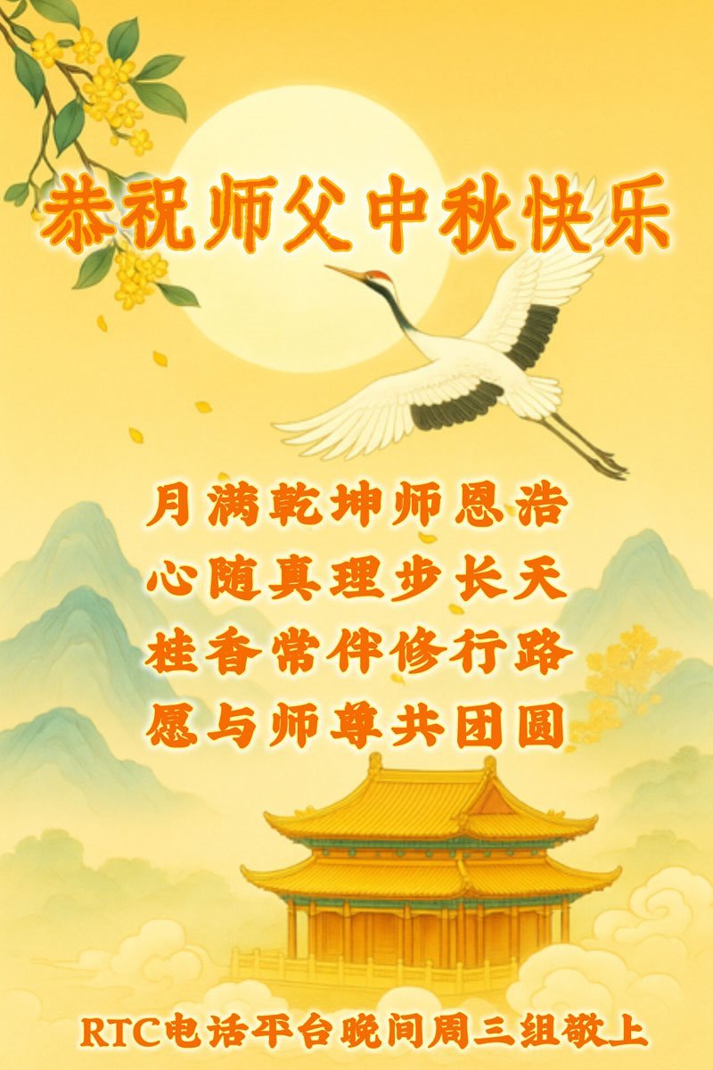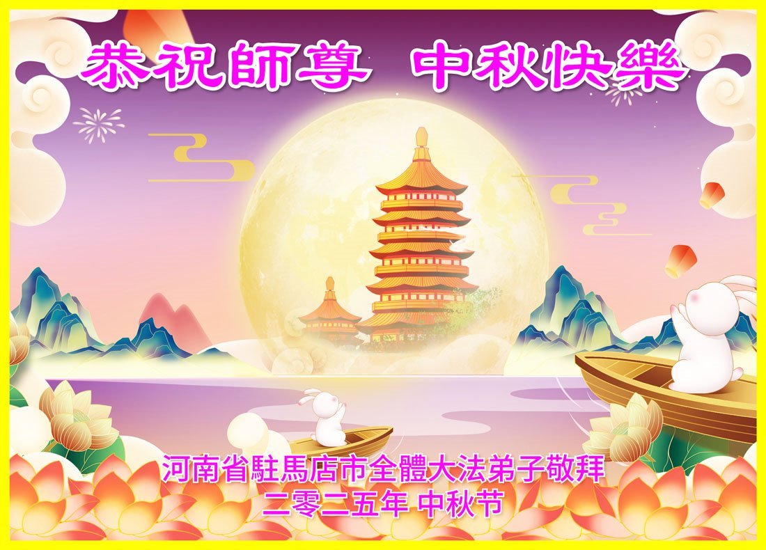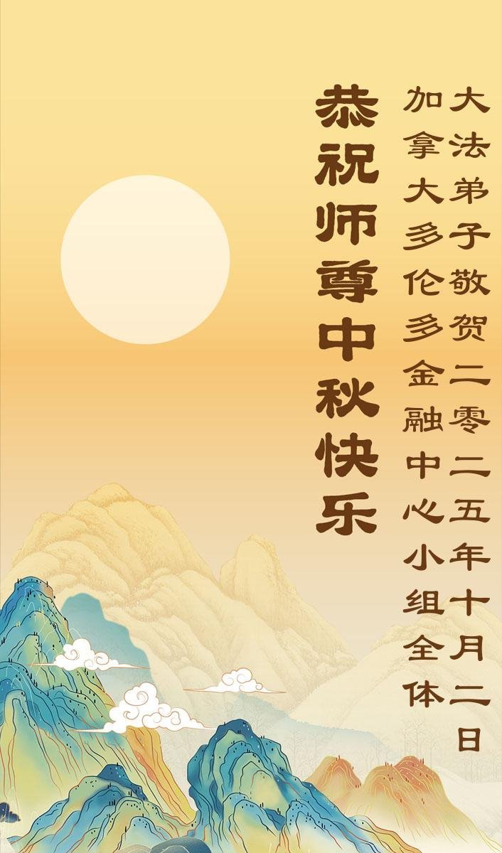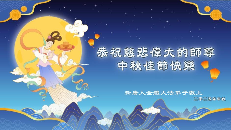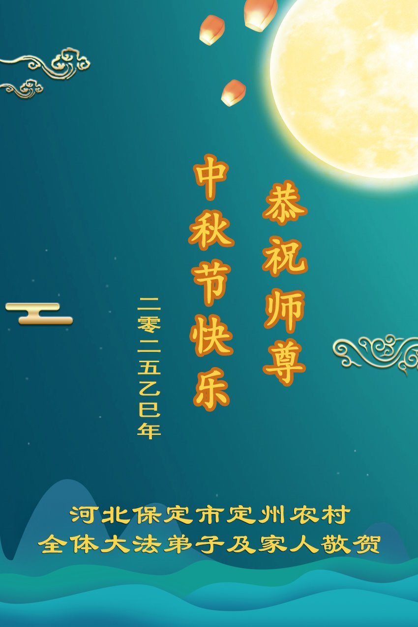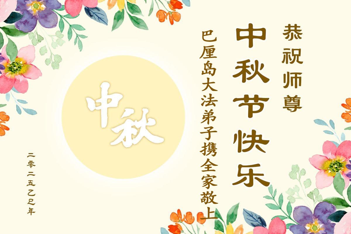 恭祝慈悲伟大的师父中秋节快乐!祝愿全体大法弟子在修炼中坚守誓言,助师救度众生,随师父一起回归真正的家园。(译文)