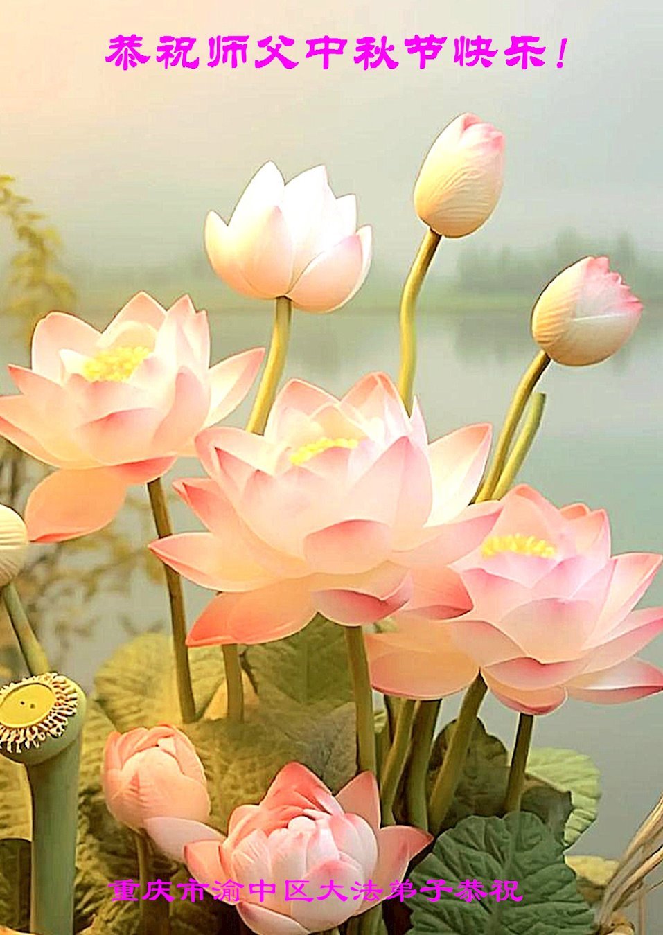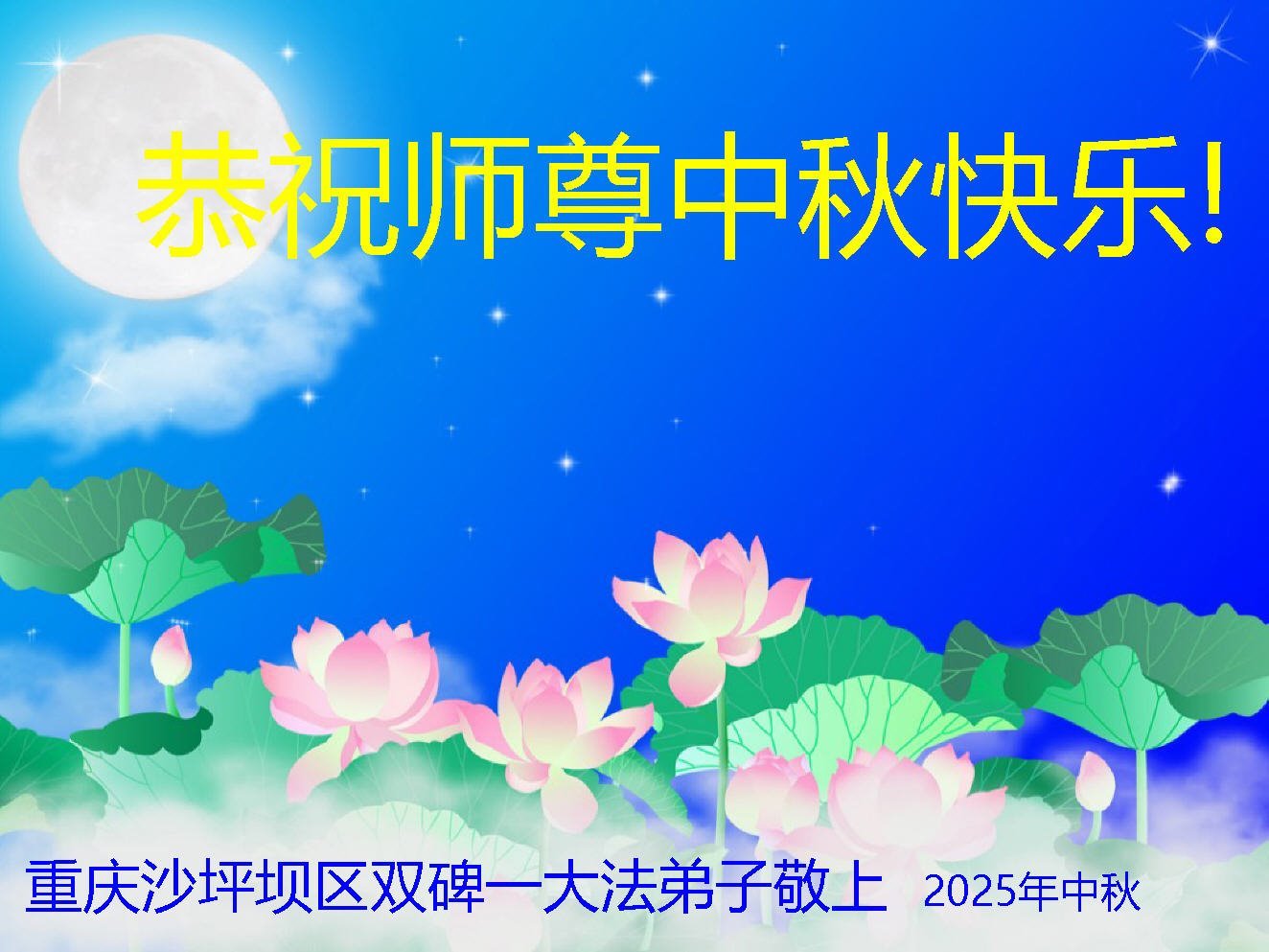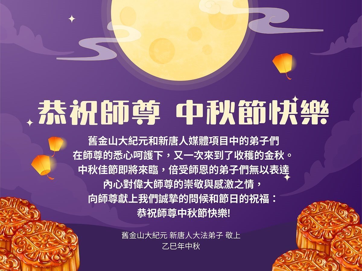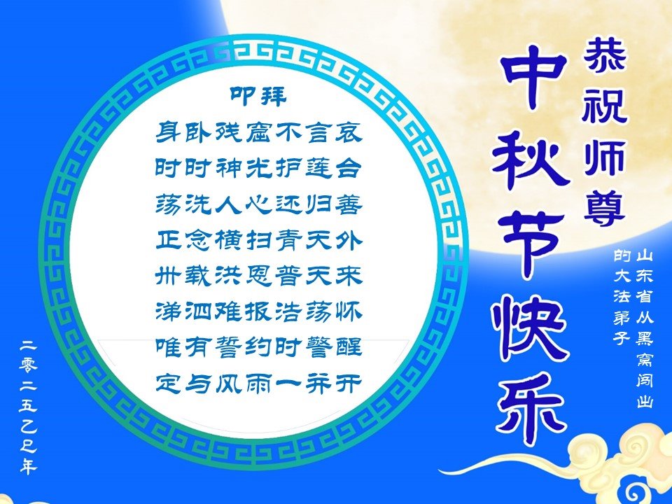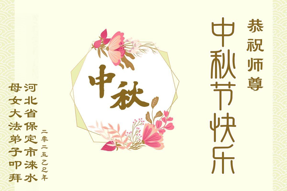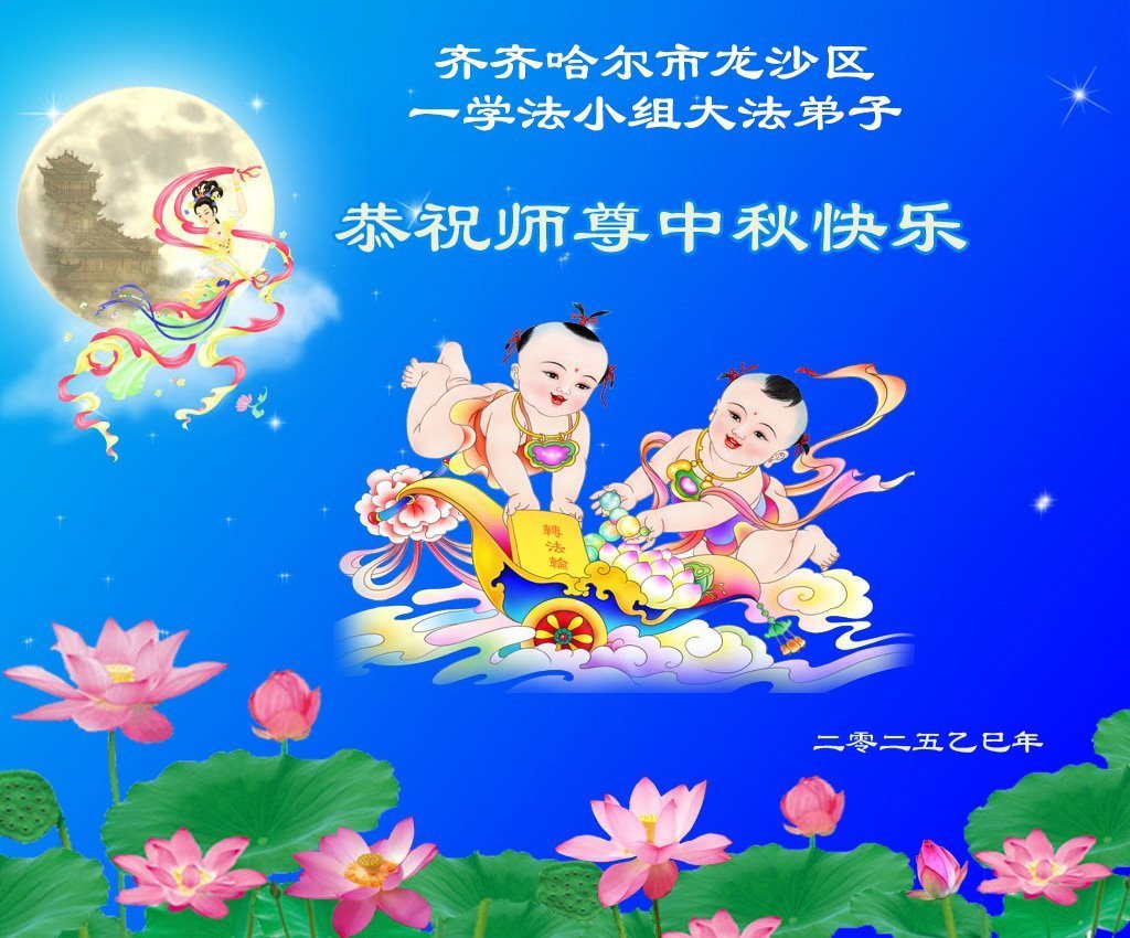 恭祝慈悲伟大的师父中秋节快乐!祝愿全体大法弟子在修炼中坚守誓言,助师救度众生,随师父一起回归真正的家园。(译文)
