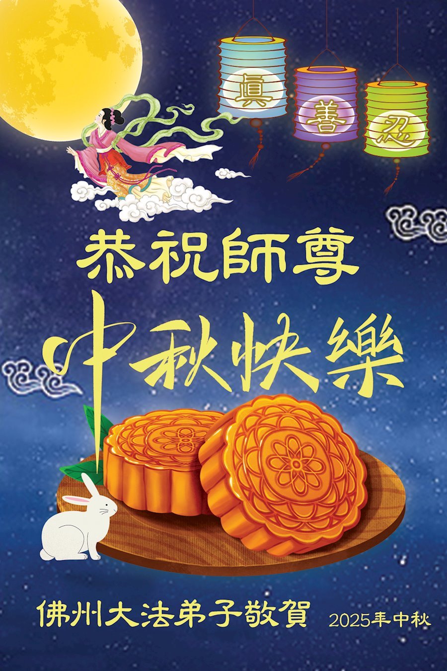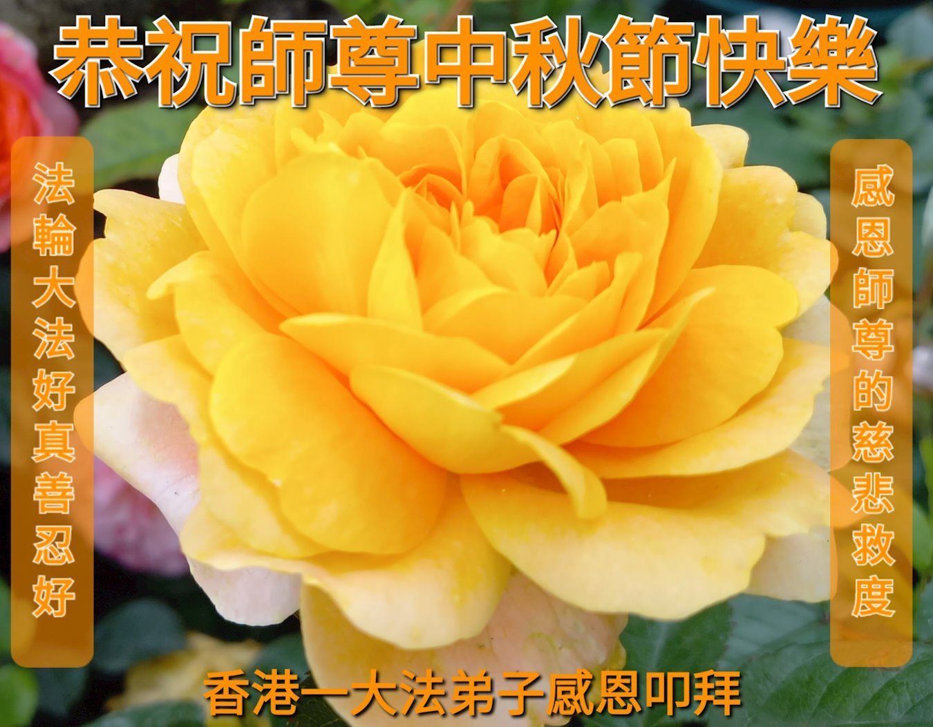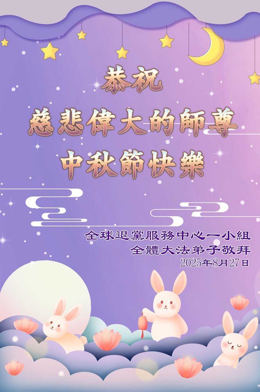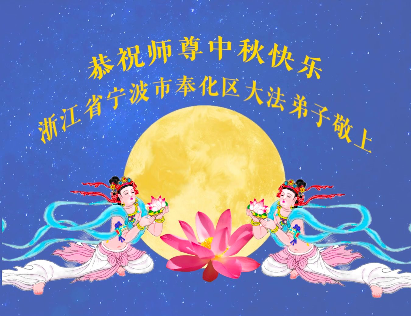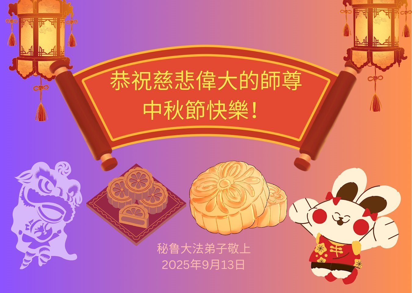 恭祝慈悲伟大的师父中秋节快乐!祝愿全体大法弟子在修炼中坚守誓言,助师救度众生,随师父一起回归真正的家园。(译文)