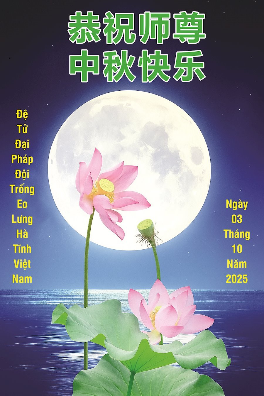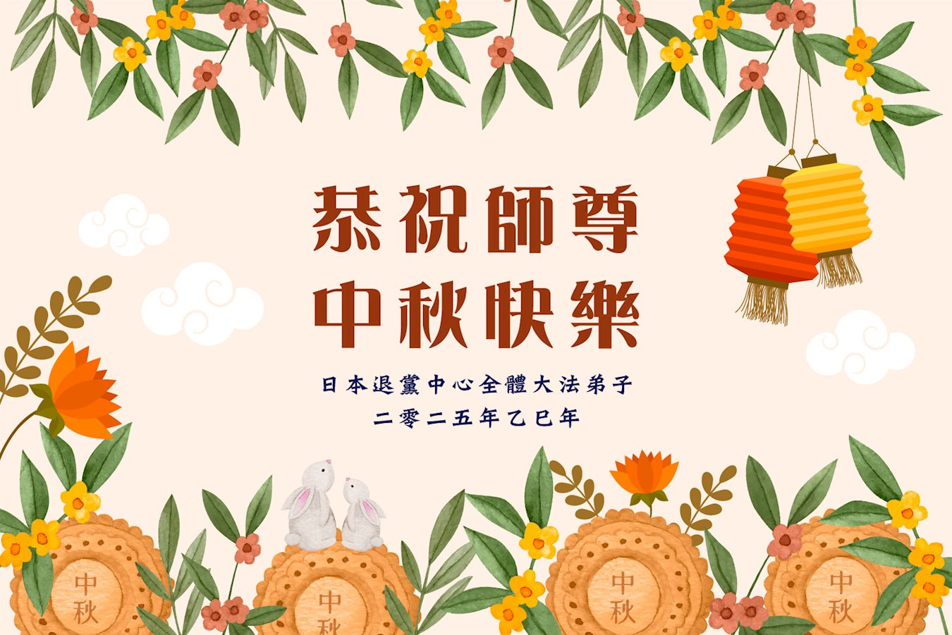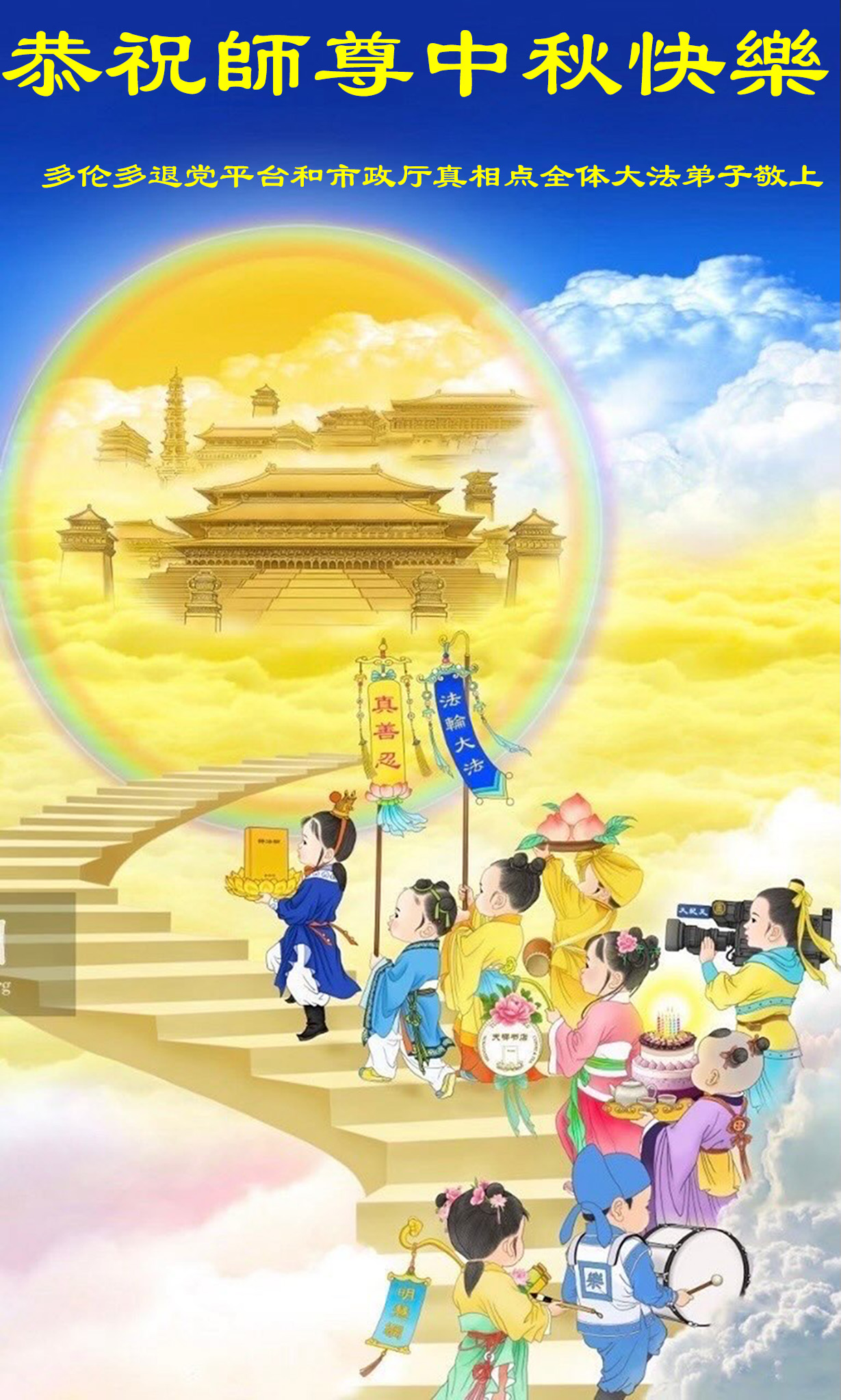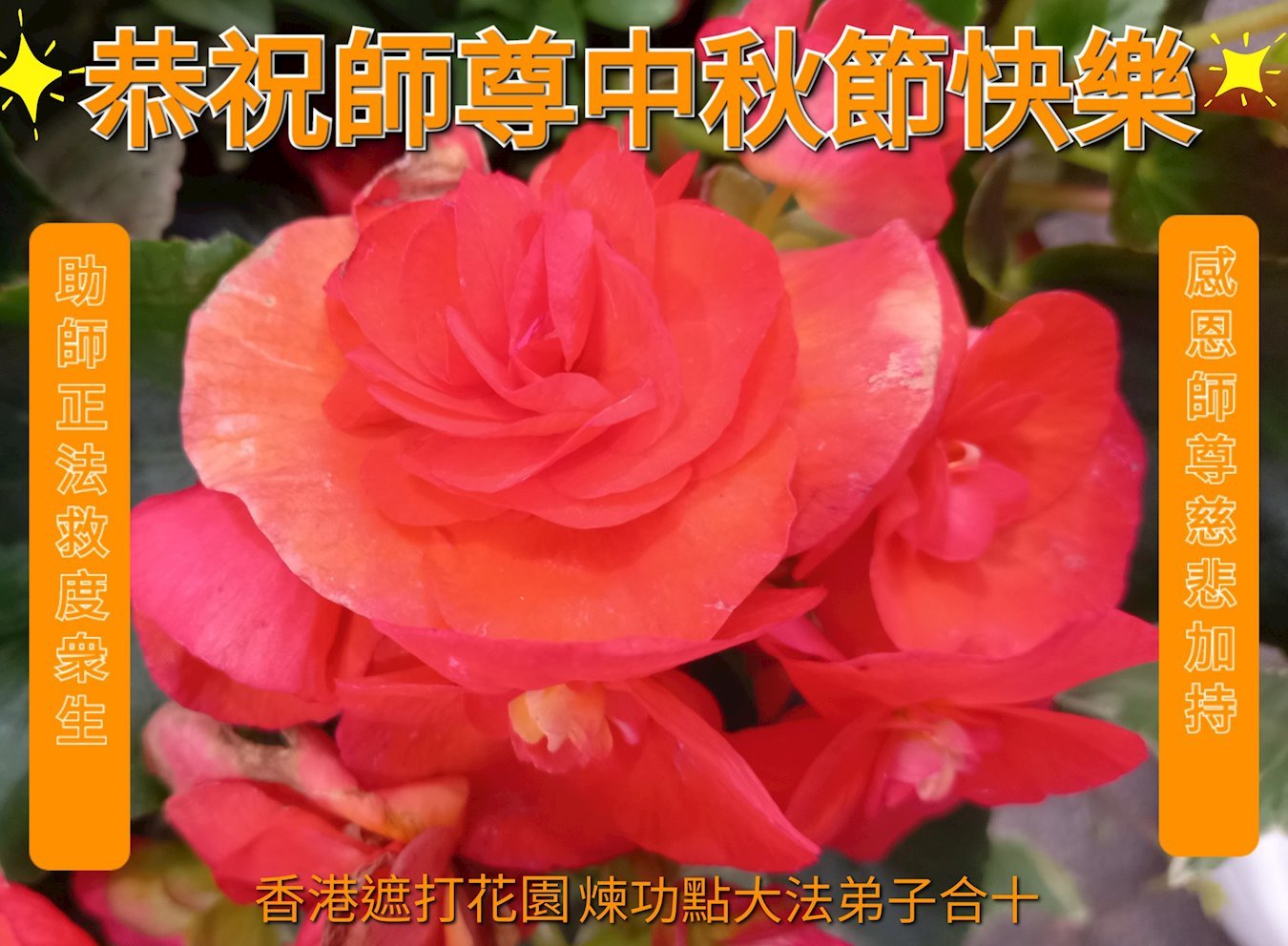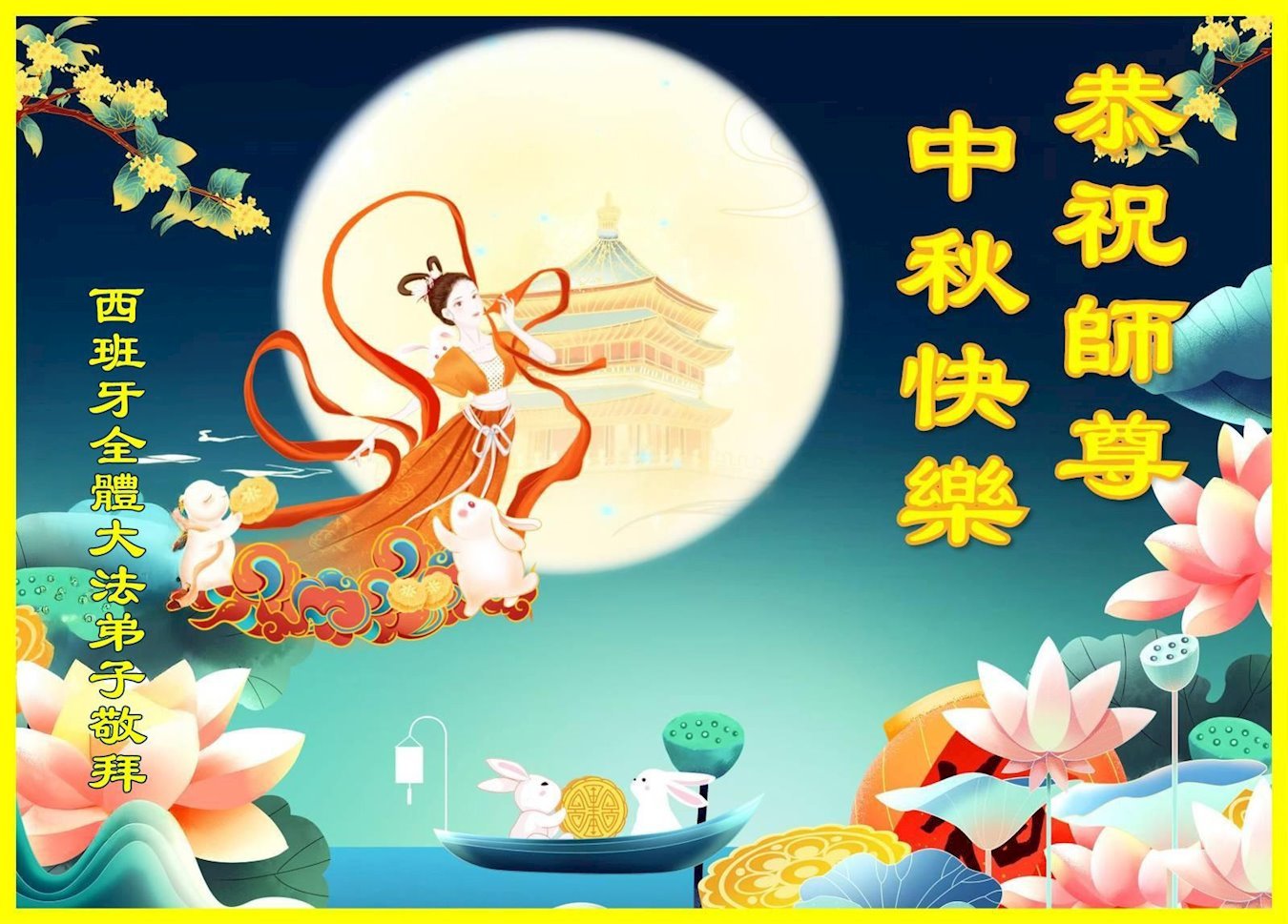 恭祝慈悲伟大的师父中秋节快乐!祝愿全体大法弟子在修炼中坚守誓言,助师救度众生,随师父一起回归真正的家园。(译文)