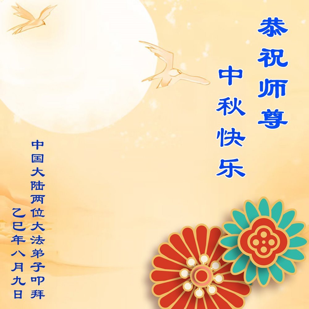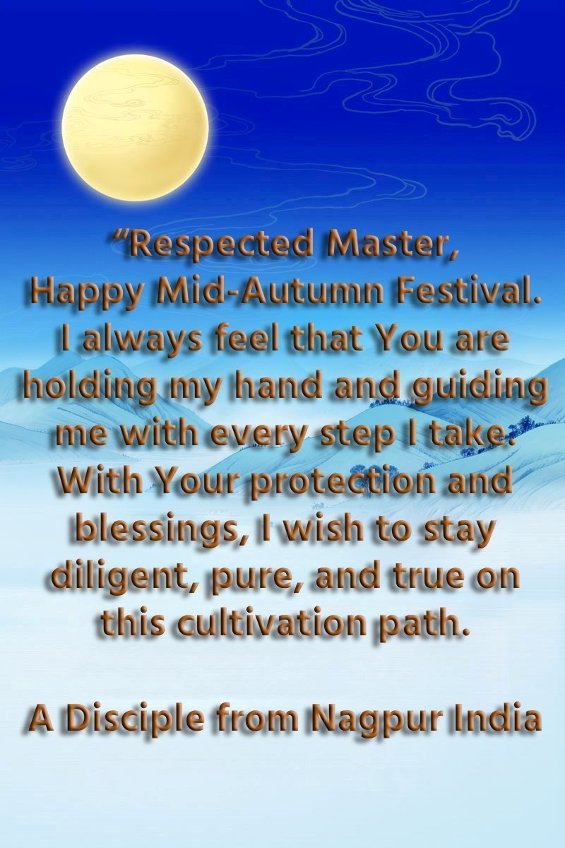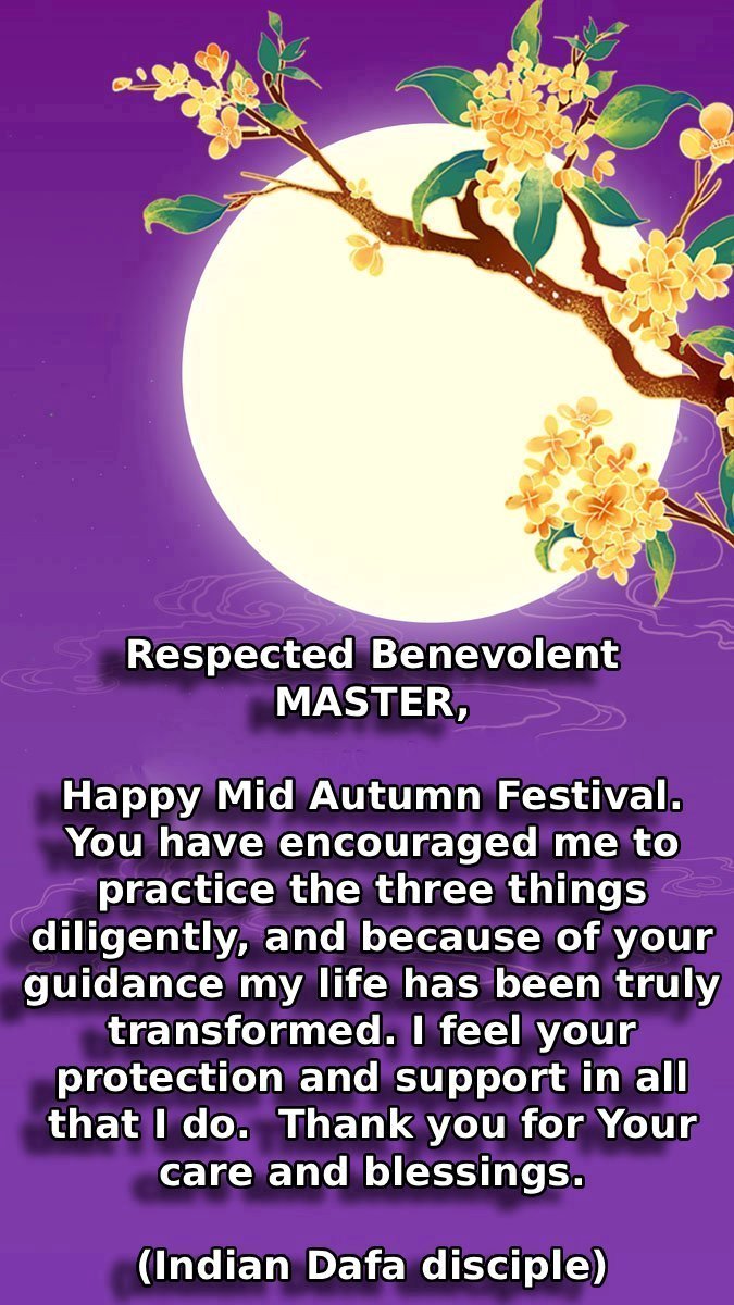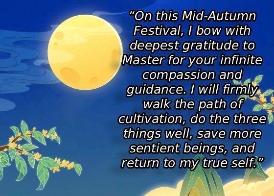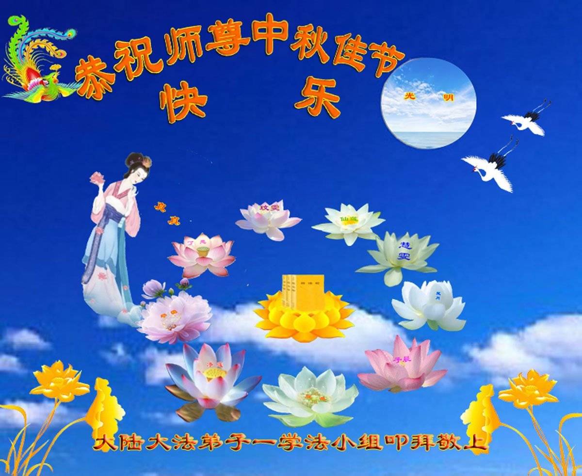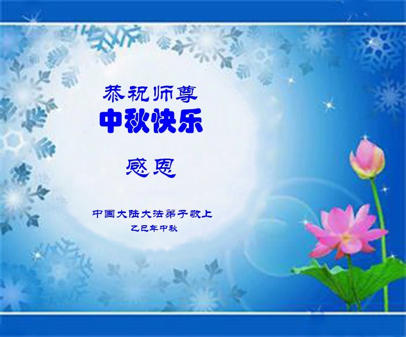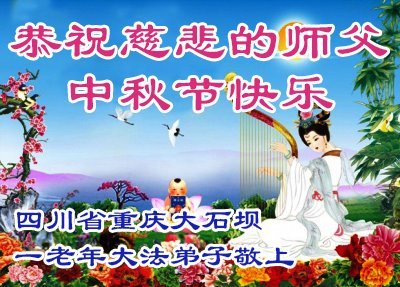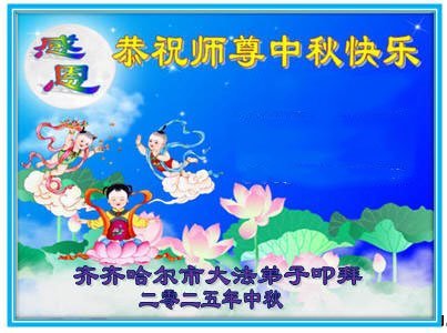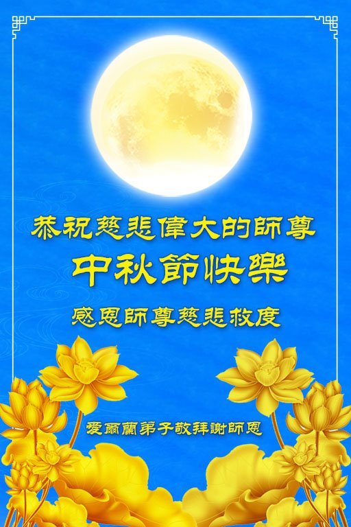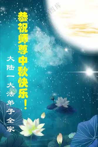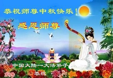 Dear and benevolent Master, I congratulate you on this Mid-Autumn Festival and wish that all Dafa disciples, including myself, remain true to our vows in our cultivation and in saving sentient beings, so that together with you, we may return to our true home。