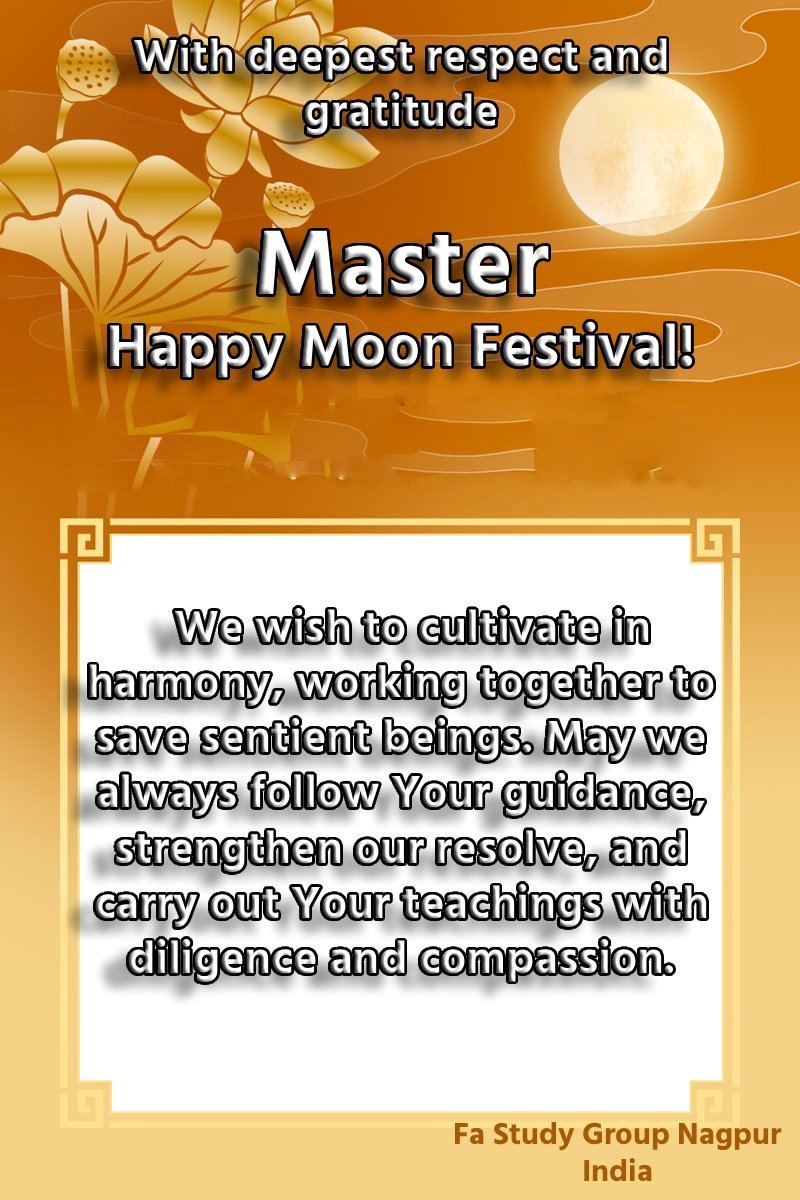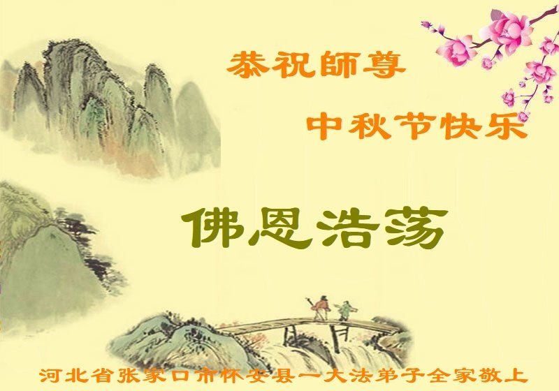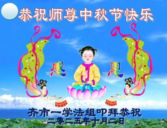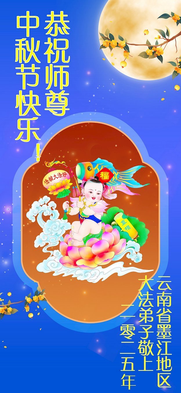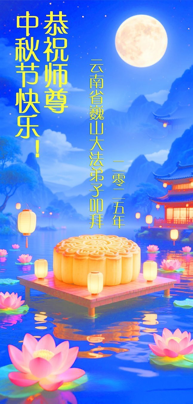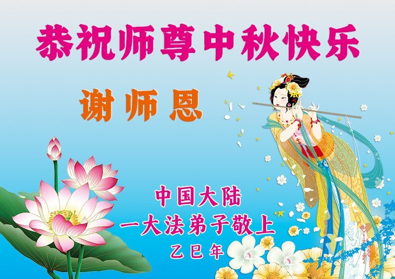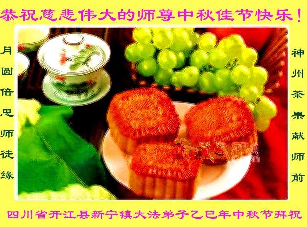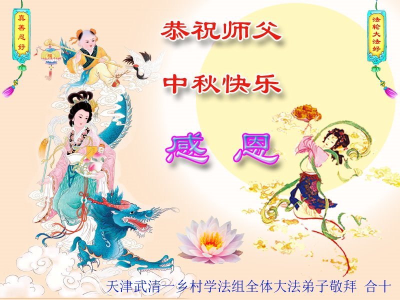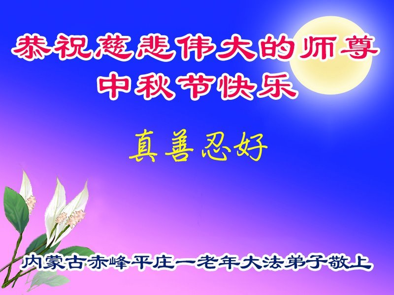 Dear and benevolent Master, I congratulate you on this Mid-Autumn Festival and wish that all Dafa disciples, including myself, remain true to our vows in our cultivation and in saving sentient beings, so that together with you, we may return to our true home。