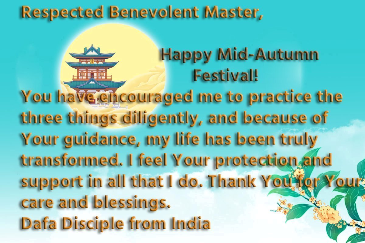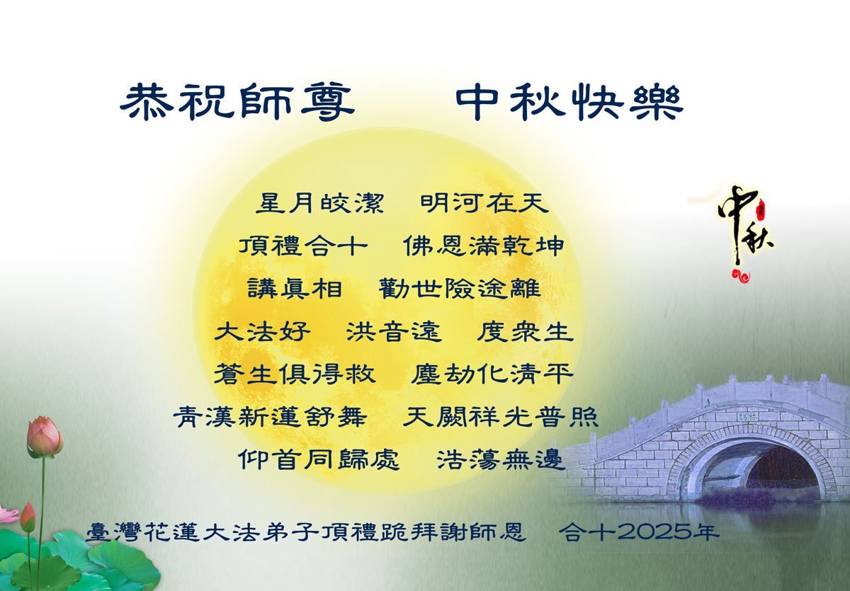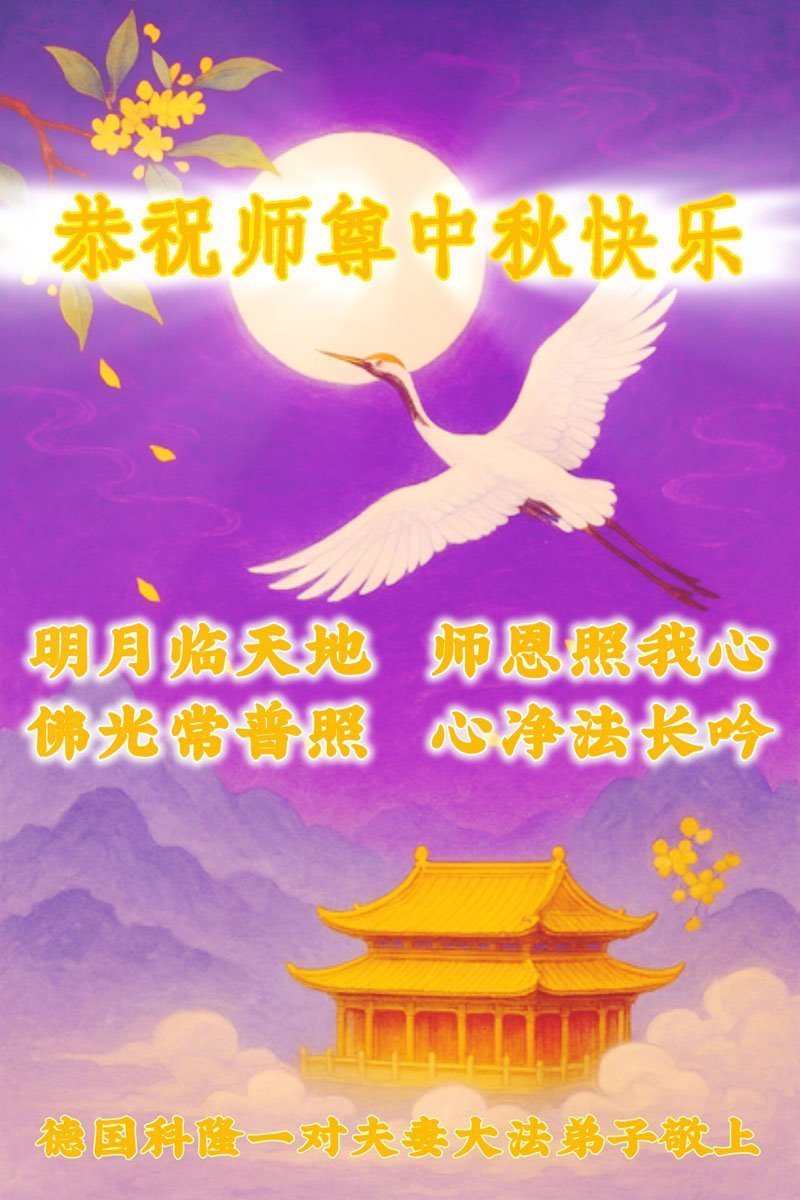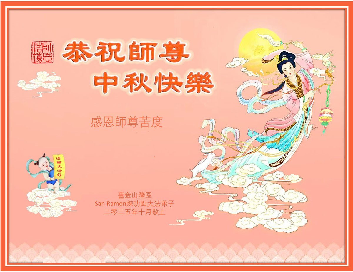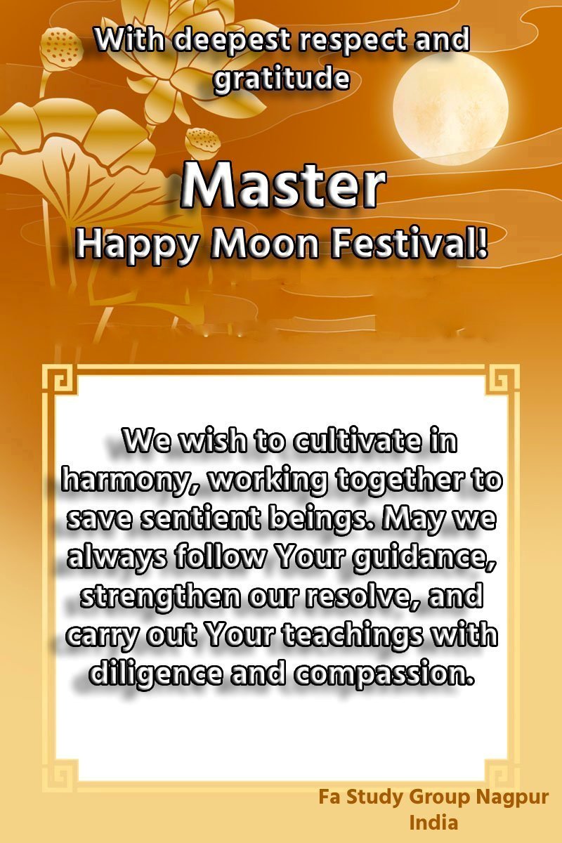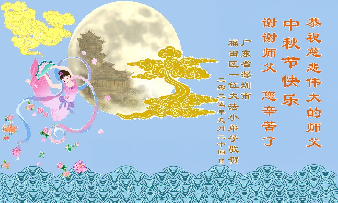 Dear and benevolent Master, I congratulate you on this Mid-Autumn Festival and wish that all Dafa disciples, including myself, remain true to our vows in our cultivation and in saving sentient beings, so that together with you, we may return to our true home。